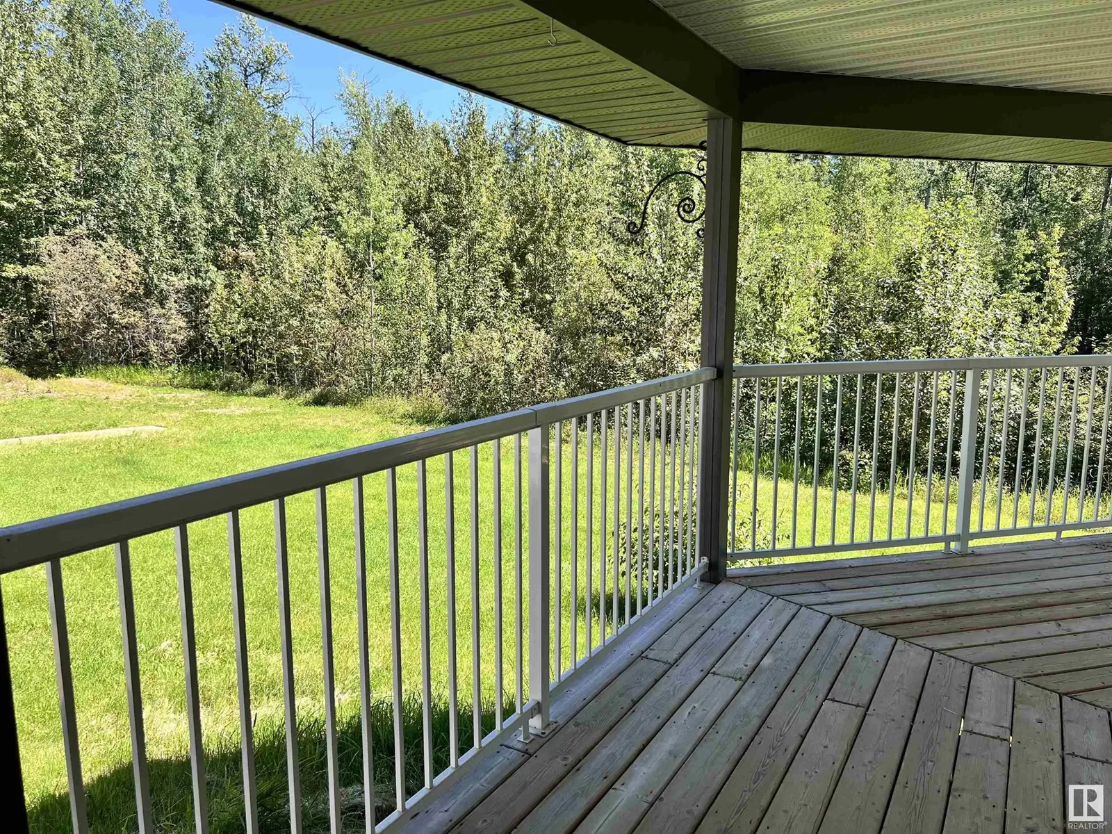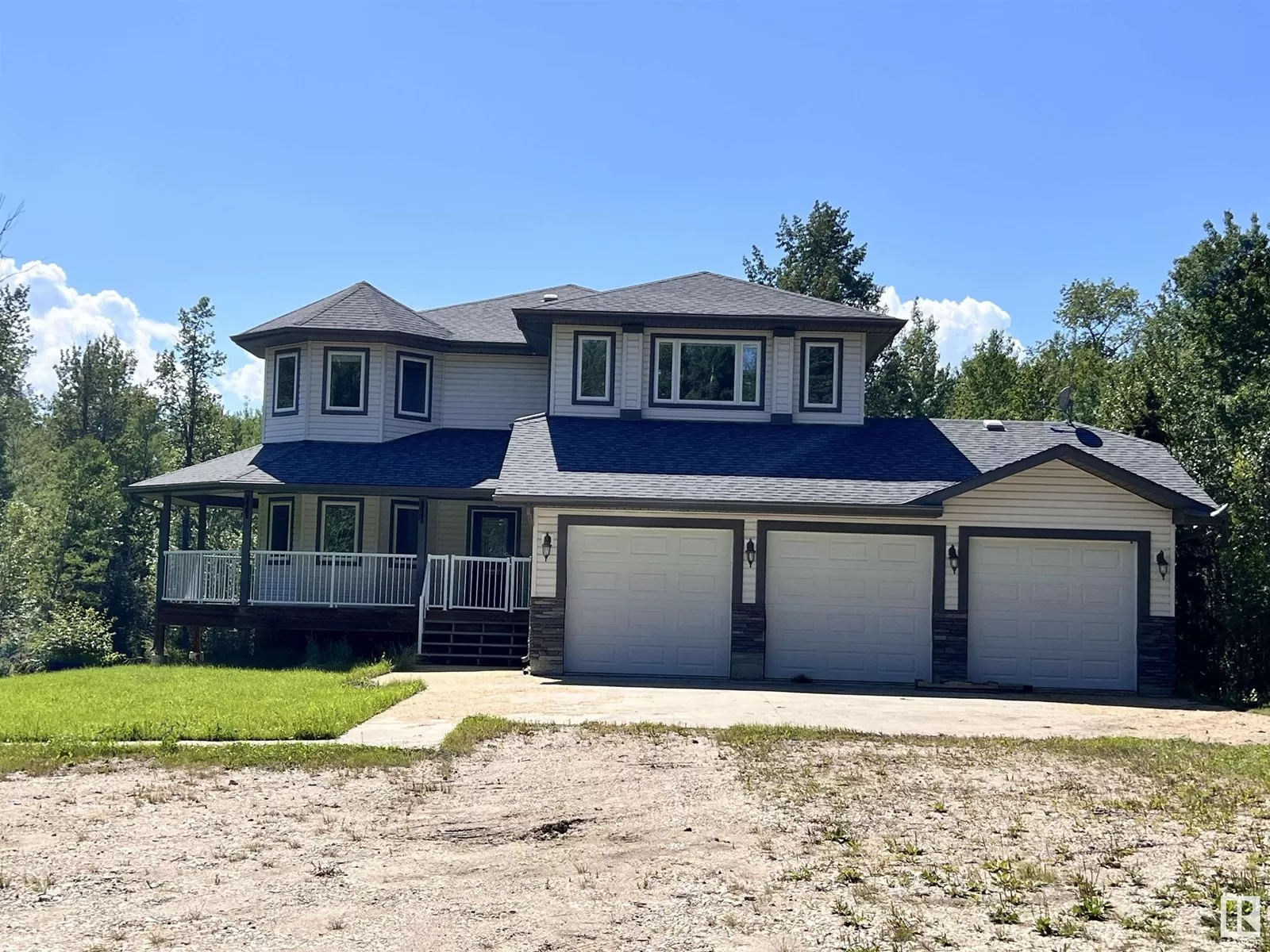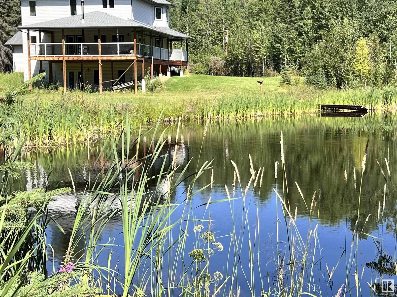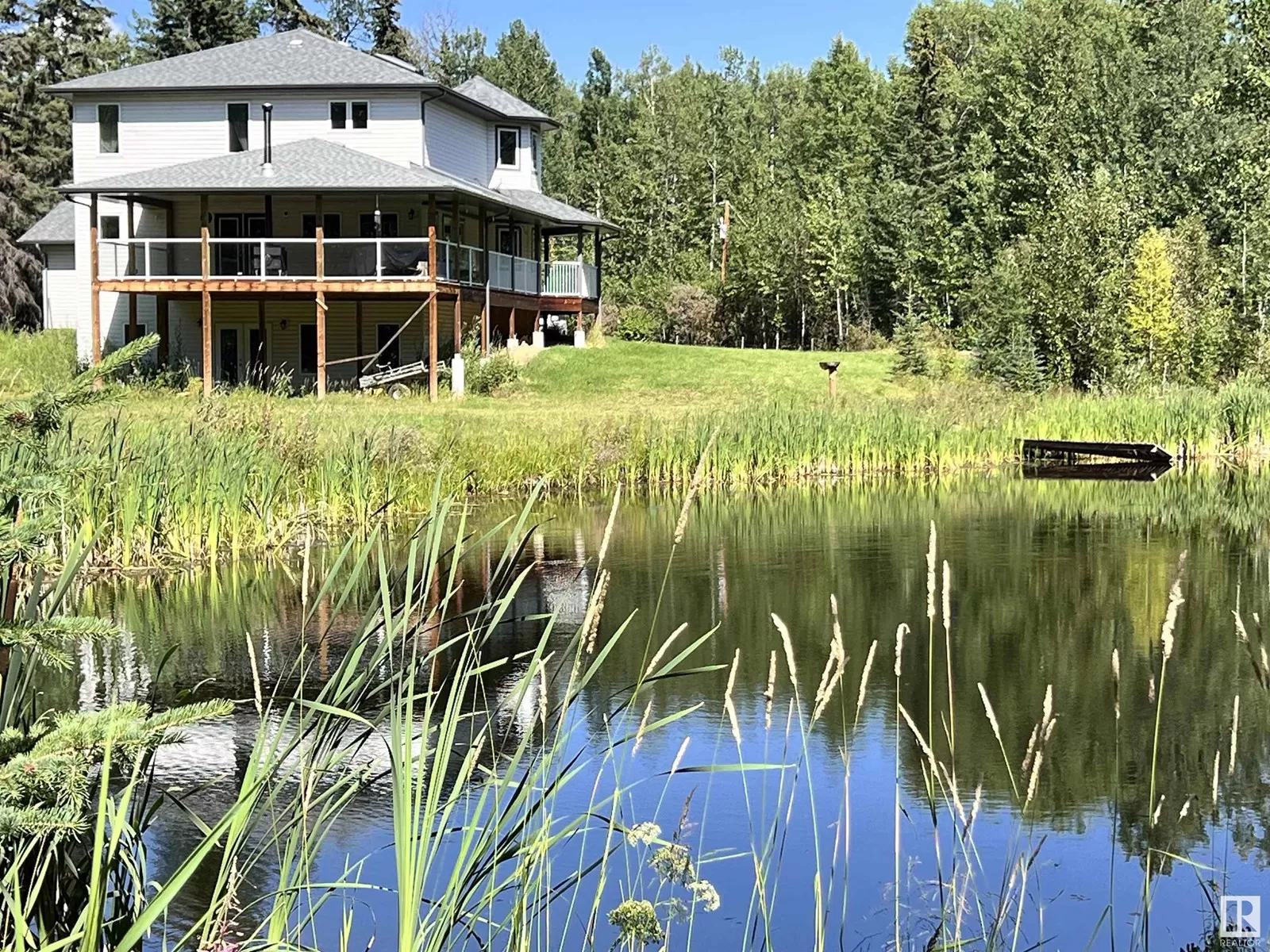 Nestled on 77.6 serene acres just 10 minutes from Drayton Valley, this 2,600 sq. ft. with Integrated Concrete Form (ICF) goes right to the ceiling. There is underfloor heat throughout the garage, baths, and two bedrooms, every space is designed for year-round warmth. The main floor features 9â ceilings, raised breakfast bar, oak kitchen with walk-through pantry and cherry hardwood flooring in the living and dining room. The 2-pc bath is connected to the laundry and front hall. Upstairs offers 3 large bedrooms, 4-pc main bath, and a spacious ensuite with walk-in closet and 4-pc ensuite bathroom. Bonus theatre room above the garage adds a unique touch. The walkout basement includes a 3-pc bath, painted floors, artist feature wall, and cold room. Step outside to a massive covered wraparound deck with woodstove, a private firepit area, and a licensed 20â deep fishpond. New roof finish, heat exchanger, and instant hot water complete this private retreat. A truly rare find for those seeking beauty and privacy. (id:27476)