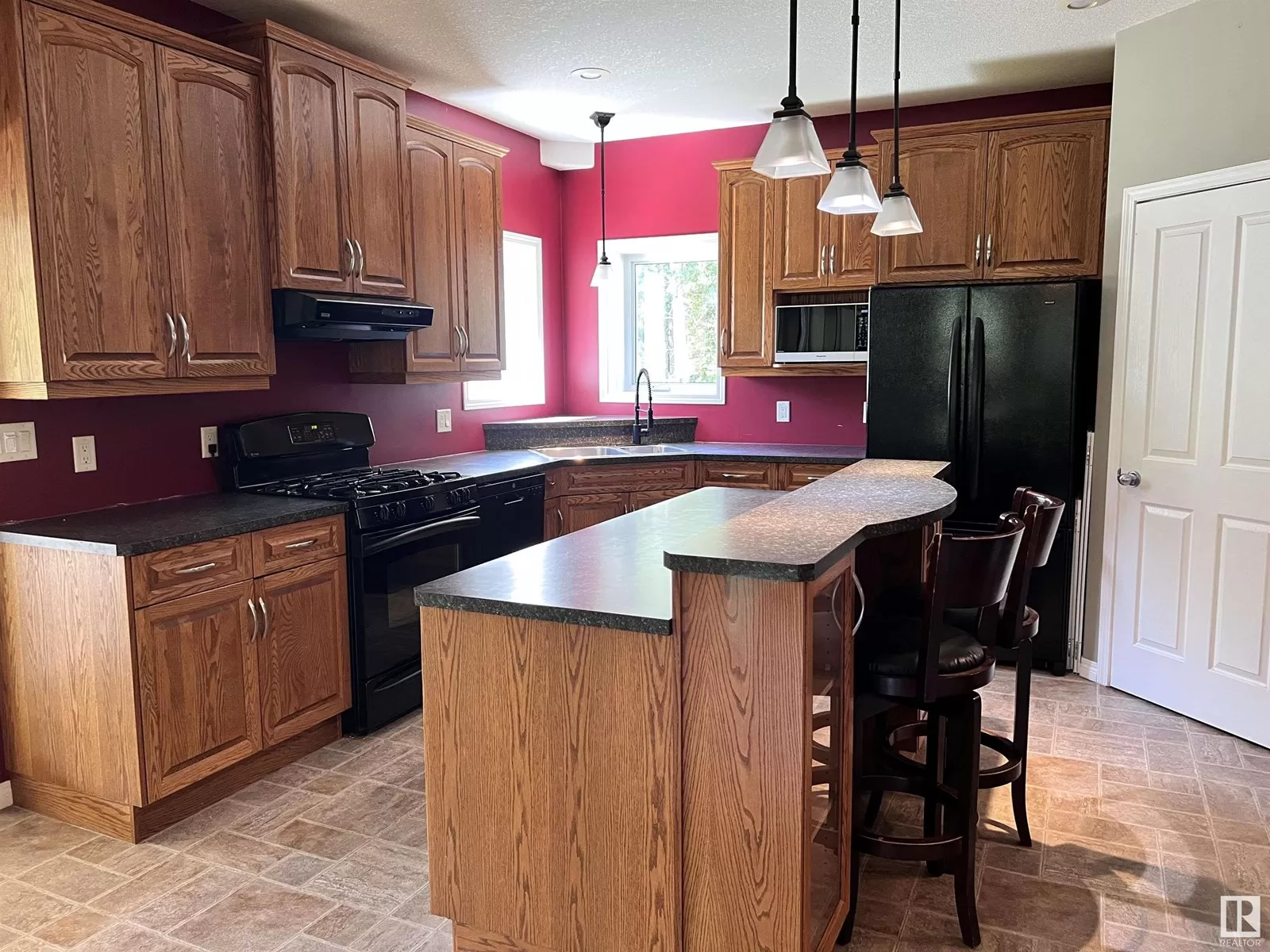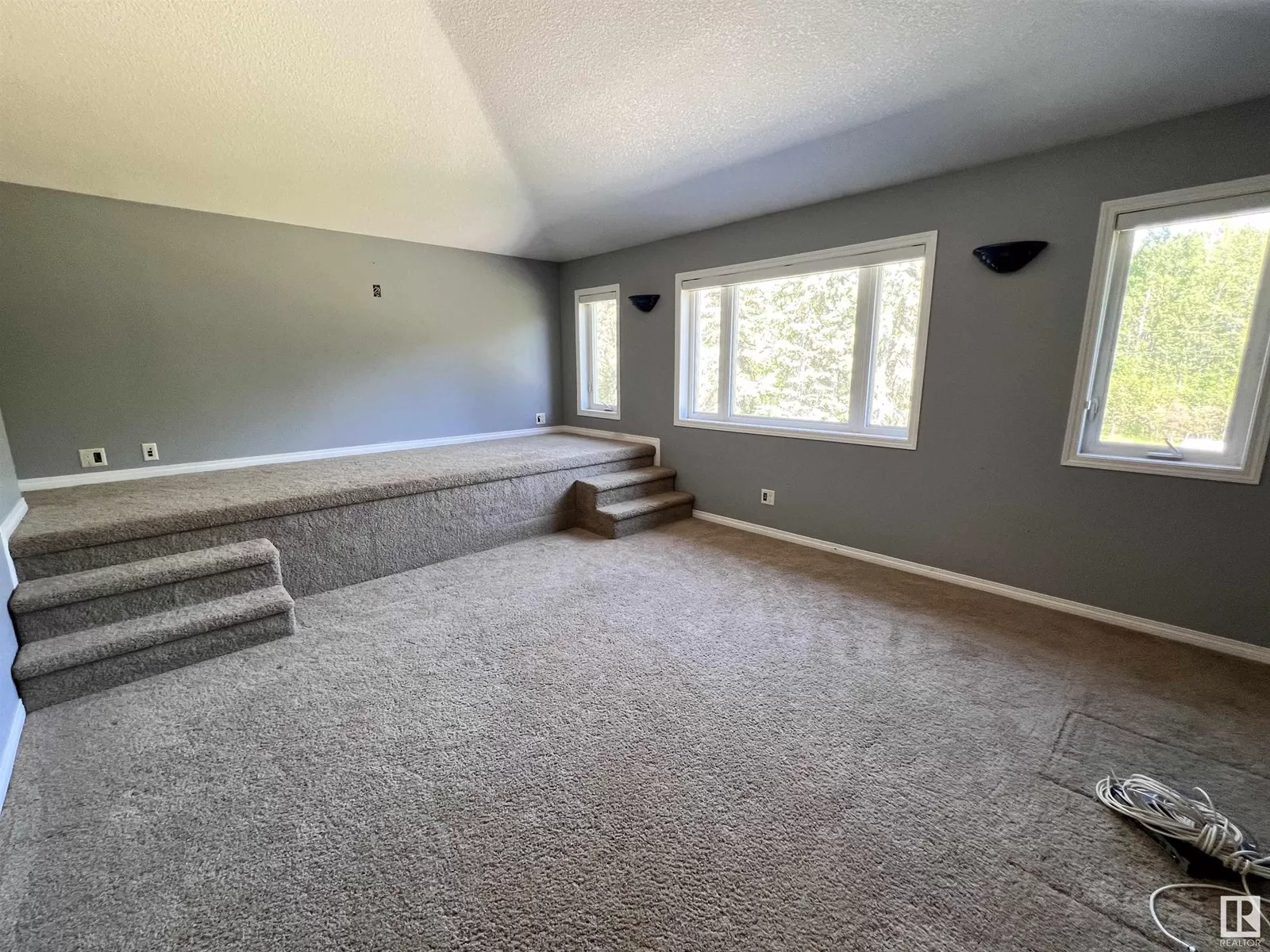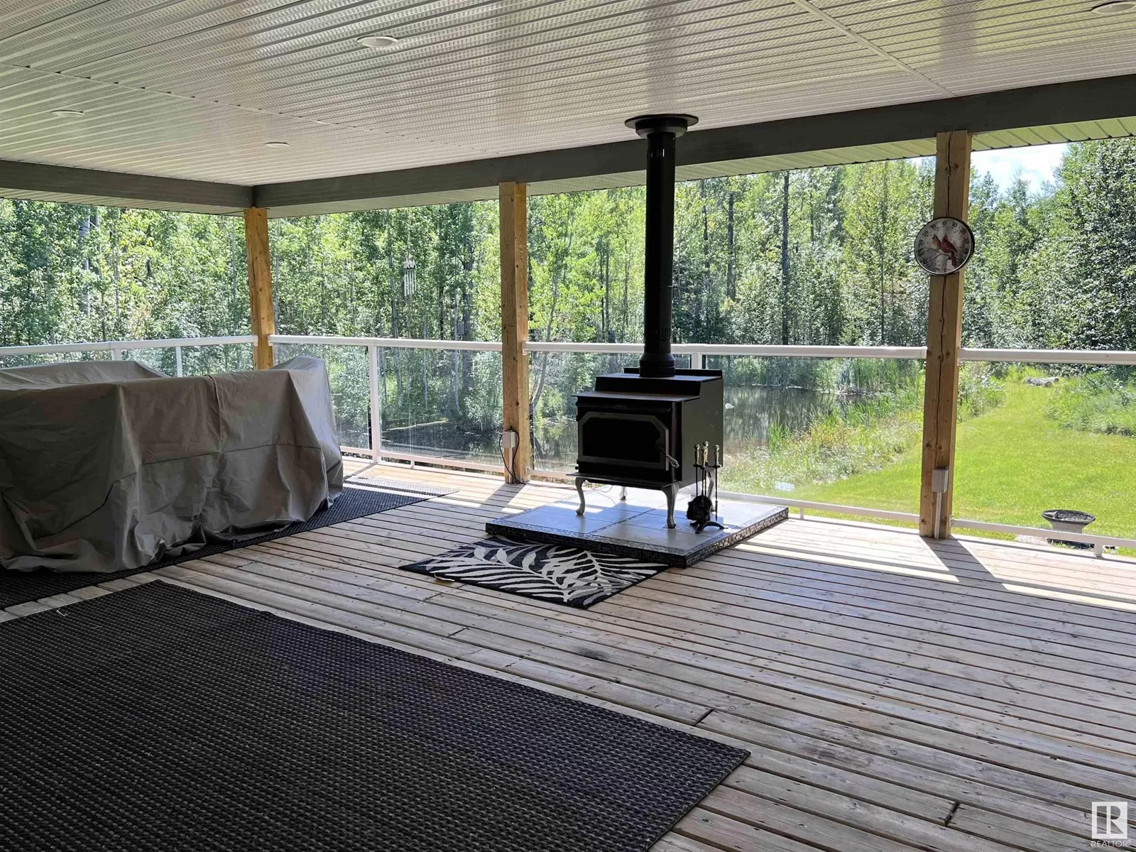Nestled on 77.6 serene acres just 10 minutes from Drayton Valley, this 2,600 sq. ft. with Integrated Concrete Form (ICF) goes right to the ceiling. There is underfloor heat throughout the garage, baths, and two bedrooms, every space is designed for year-round warmth. The main floor features 9â ceilings, raised breakfast bar, oak kitchen with walk-through pantry and cherry hardwood flooring in the living and dining room. The 2-pc bath is connected to the laundry and front hall. Upstairs offers 3 large bedrooms, 4-pc main bath, and a spacious ensuite with walk-in closet and 4-pc ensuite bathroom. Bonus theatre room above the garage adds a unique touch. The walkout basement includes a 3-pc bath, painted floors, artist feature wall, and cold room. Step outside to a massive covered wraparound deck with woodstove, a private firepit area, and a licensed 20â deep fishpond. New roof finish, heat exchanger, and instant hot water complete this private retreat. A truly rare find for those seeking beauty and privacy. (id:27476)