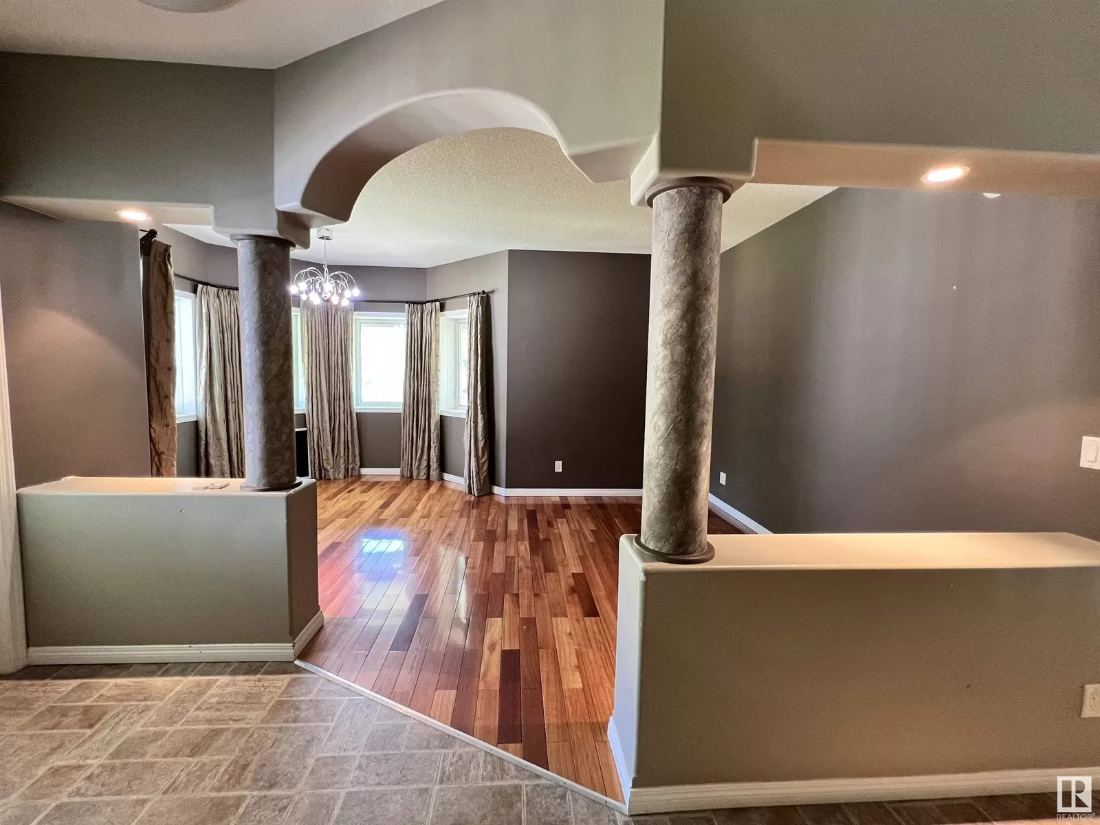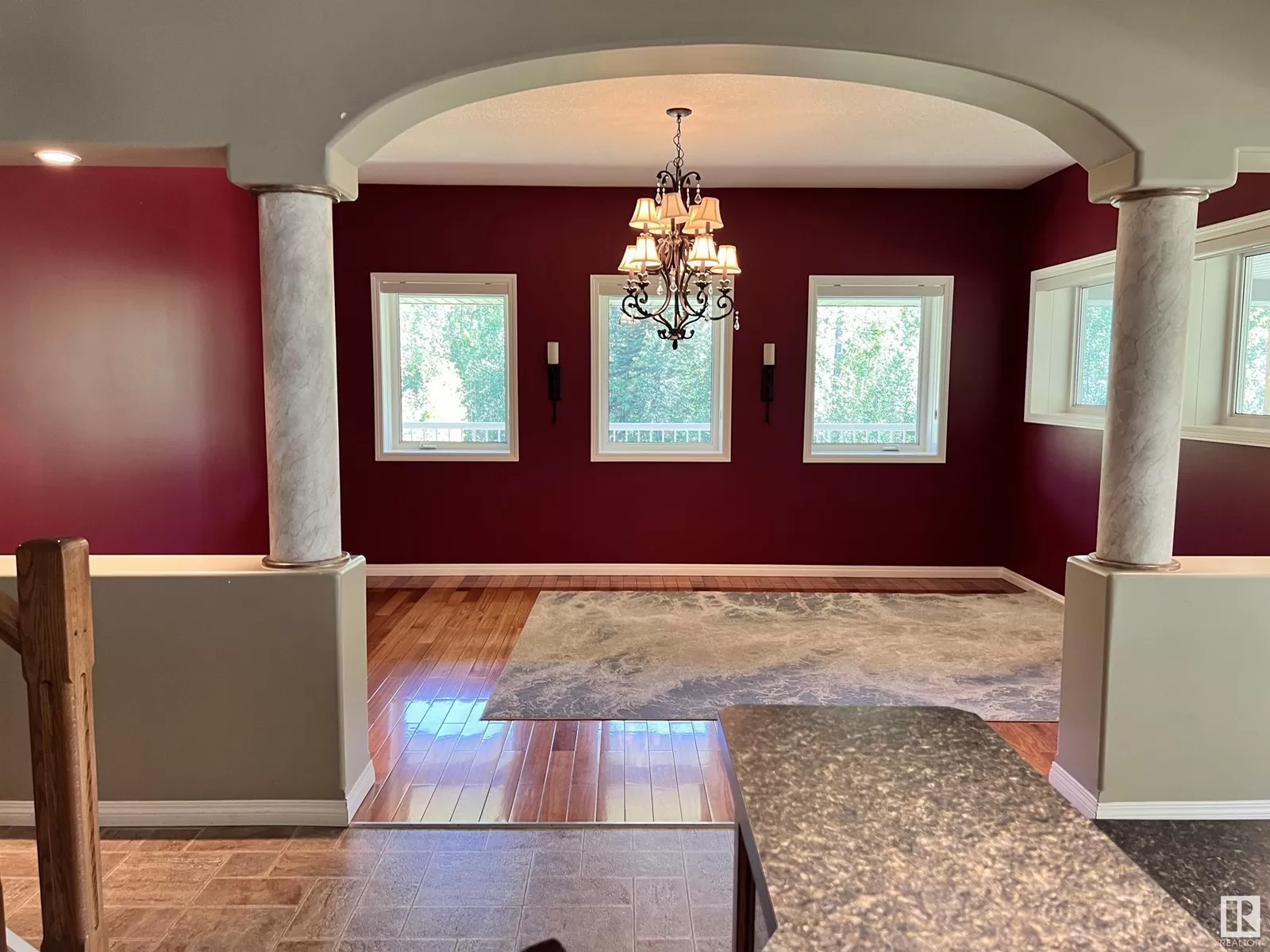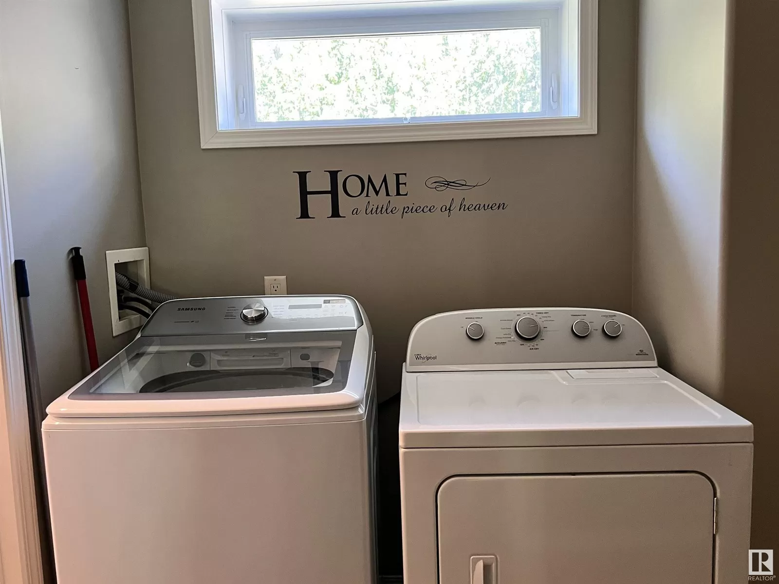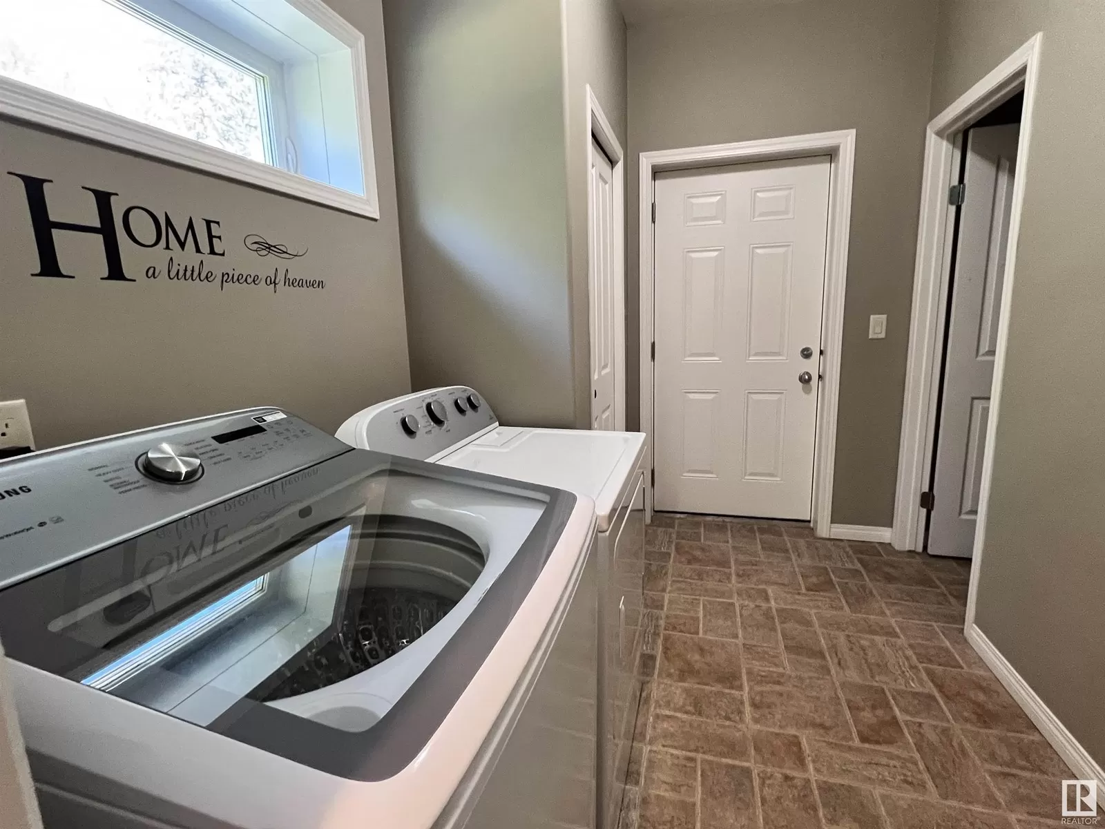 Nestled on 77.6 serene acres just 10 minutes from Drayton Valley, this 2,600 sq. ft. with Integrated Concrete Form (ICF) goes right to the ceiling. There is underfloor heat throughout the garage, baths, and two bedrooms, every space is designed for year-round warmth. The main floor features 9â ceilings, raised breakfast bar, oak kitchen with walk-through pantry and cherry hardwood flooring in the living and dining room. The 2-pc bath is connected to the laundry and front hall. Upstairs offers 3 large bedrooms, 4-pc main bath, and a spacious ensuite with walk-in closet and 4-pc ensuite bathroom. Bonus theatre room above the garage adds a unique touch. The walkout basement includes a 3-pc bath, painted floors, artist feature wall, and cold room. Step outside to a massive covered wraparound deck with woodstove, a private firepit area, and a licensed 20â deep fishpond. New roof finish, heat exchanger, and instant hot water complete this private retreat. A truly rare find for those seeking beauty and privacy. (id:27476)