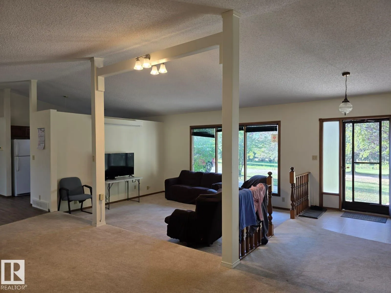 On pavement, 1 mile west of Drayton Valley. Full serviced parcel offers best of very private country acreage & light industrial-commercial-business development zoning (zoning is Rural Industrial). Property offers tree-lined, asphalt drive & parking area, gravelled parking & truck/RV power, 24x30 quonset waiting to be insulated for winter shop, & lots of yard. Building is well constructed, sits hi & dry on 4â heated crawl space, has served as both executive home residence, professional offices & industrial business surveillance suite. Offers 4 bedrooms, 2 baths, full kitchen, sunken living room, brick-lined wood fireplace & vaulted ceilings along with very large flex room for offices, hobbies, or additional bedrooms. Recent upgrades include re-roofing & high efficiency furnaces (2017) and new appliances & commercial vinyl plank flooring (2024). Vendor Vendor financing available to qualified buyers with 25% down. An ideal property for home based / professional / yard-shop based business with residence. (id:27476)