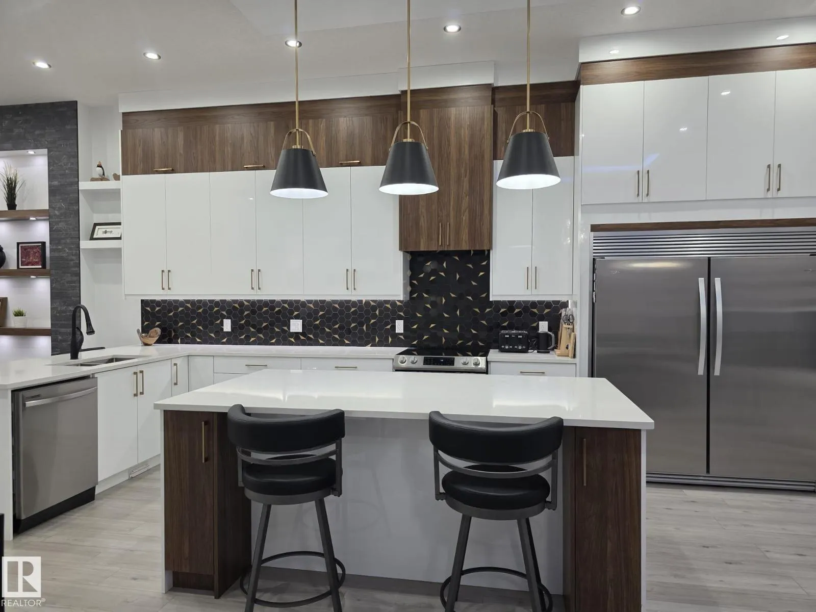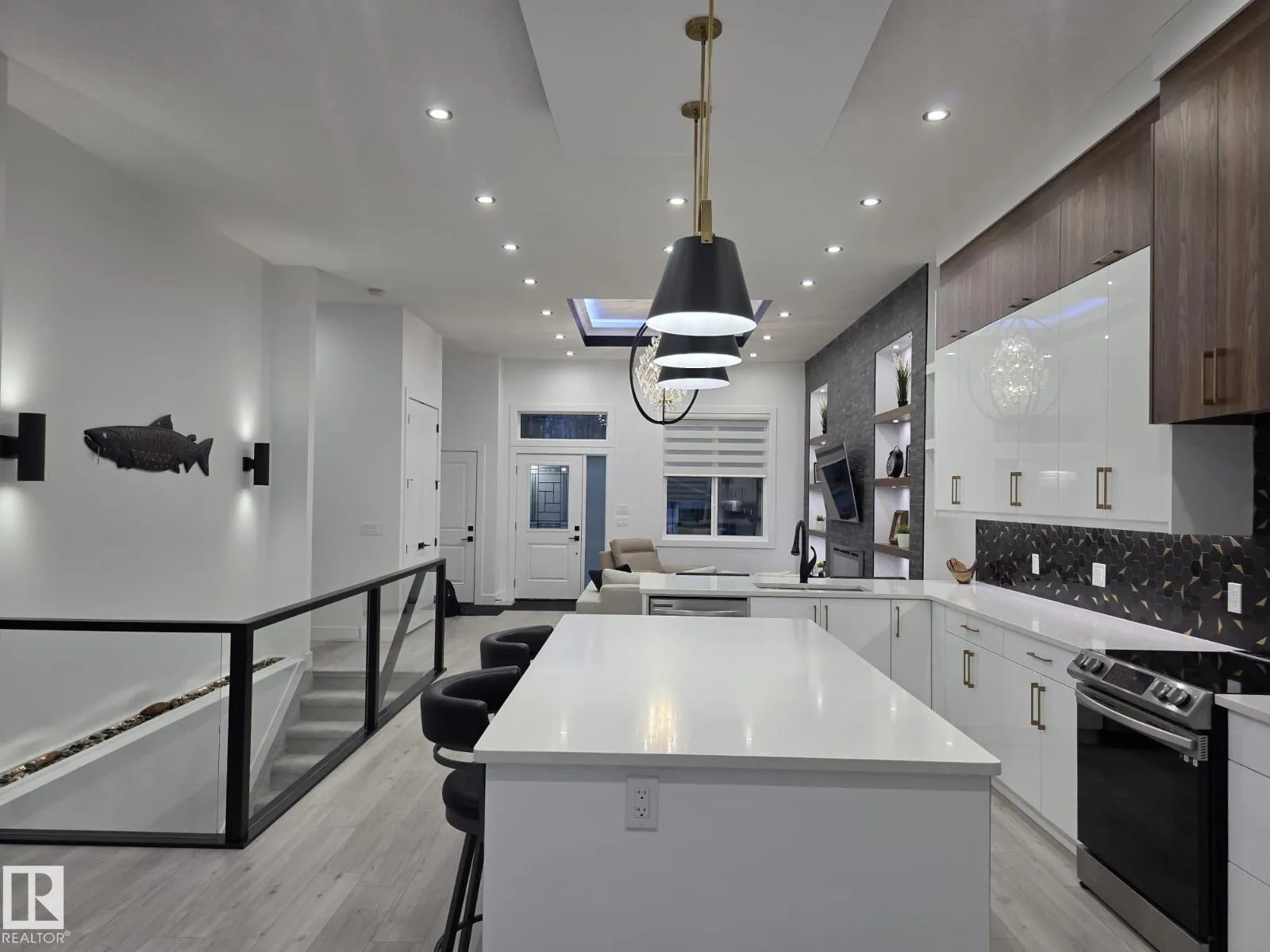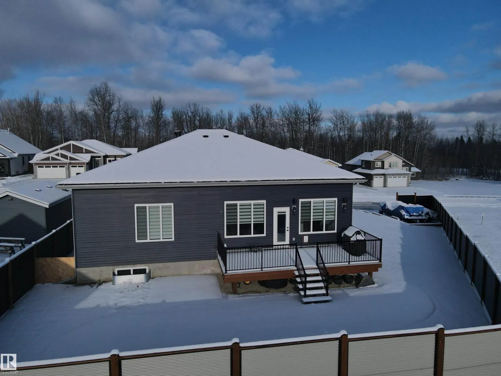 Welcome to this exceptional 5 bed, 4 bath bungalow in the desired River Ravine Estates, crafted for those who appreciate luxury comfort. Set on .27-acres w/ RV parking, this home offers over 1,800 sq ft on the main level, 11 ft ceilings & expansive windows create an inviting, light-filled atmosphere throughout the open living space. The striking kitchen boasts a large island, quartz surfaces & stainless steel appliances. A beautiful floor-to-ceiling stone fireplace anchors the living room. Main floor offers 3 baths, two of which are ensuites and main floor laundry. The finished basement adds the two additional bedrooms, a 3-piece bath (awaiting your completion), & an impressive family area w/ a wet bar. High-efficiency furnace, central AC, HRV system and triple-pane windows. Outdoors, enjoy a 24x10 vinyl deck with aluminum railing, professionally designed landscaping and concrete patios. A spacious triple garage completes this stunning property! (id:27476)