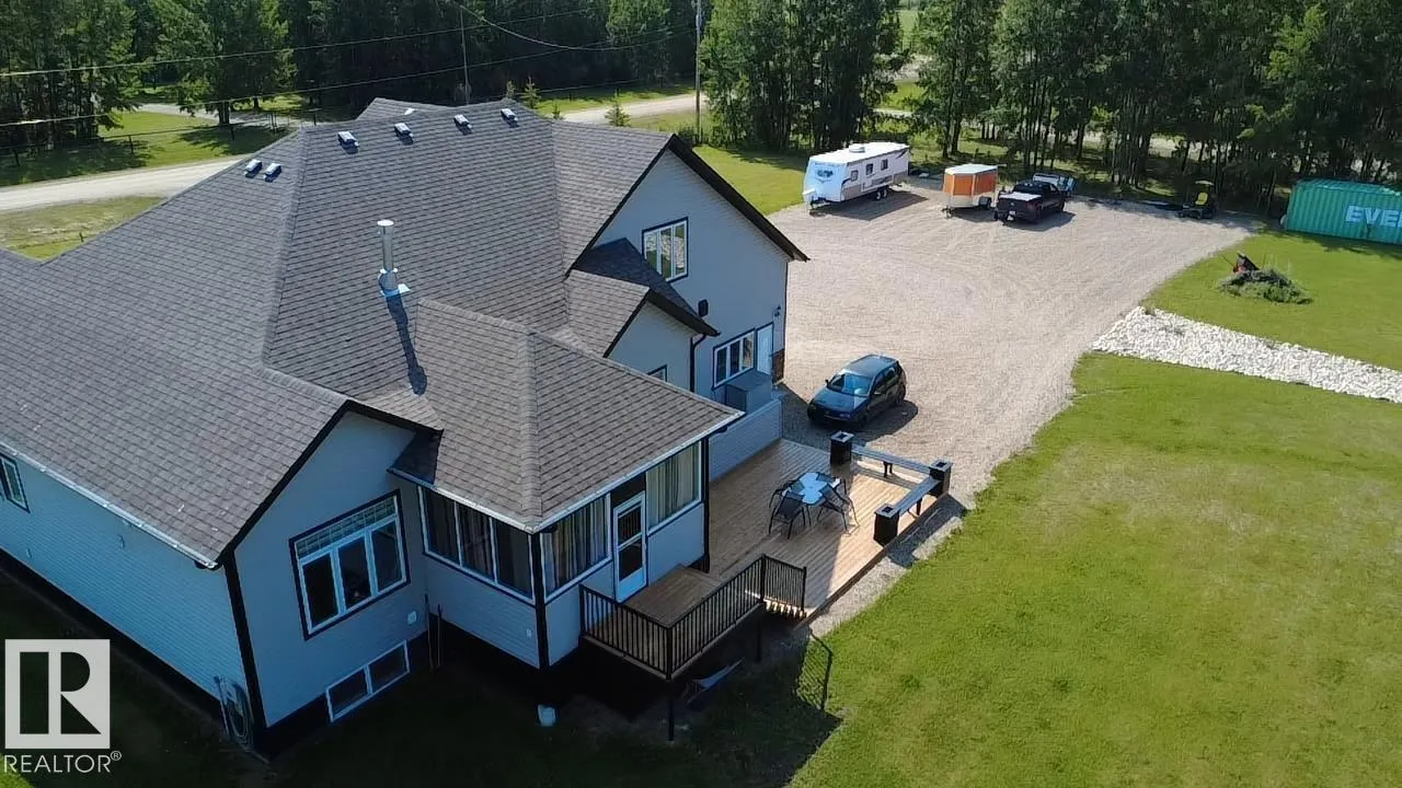 Exceptional 1.5 story home on 4.7 acres anchored by a massive custom pond and featuring a fully self contained secondary suite with separate entrance, full kitchen, bedroom with ensuite, and laundry, perfect for adult children, in-laws, guests, or optional rental income. The main level offers a high end kitchen, cozy sitting room, formal dining room, office, and expansive primary suite with spa style ensuite, jetted tub, walk in shower, dual sinks, and in-closet laundry. Upstairs features a spacious open living area with wet bar and pool table. A three season sunroom leads to a large deck overlooking the pond, while the driveway opens to a wide gravel area for vehicles, RVs, or toys, and the landscaped grass yard surrounds the home and pond. Just 10 minutes to Drayton Valley and 1 hour 15 minutes to Edmonton/Leduc. An attached triple car garage completes this remarkable property with space, comfort, and lifestyle versatility. (id:27476)