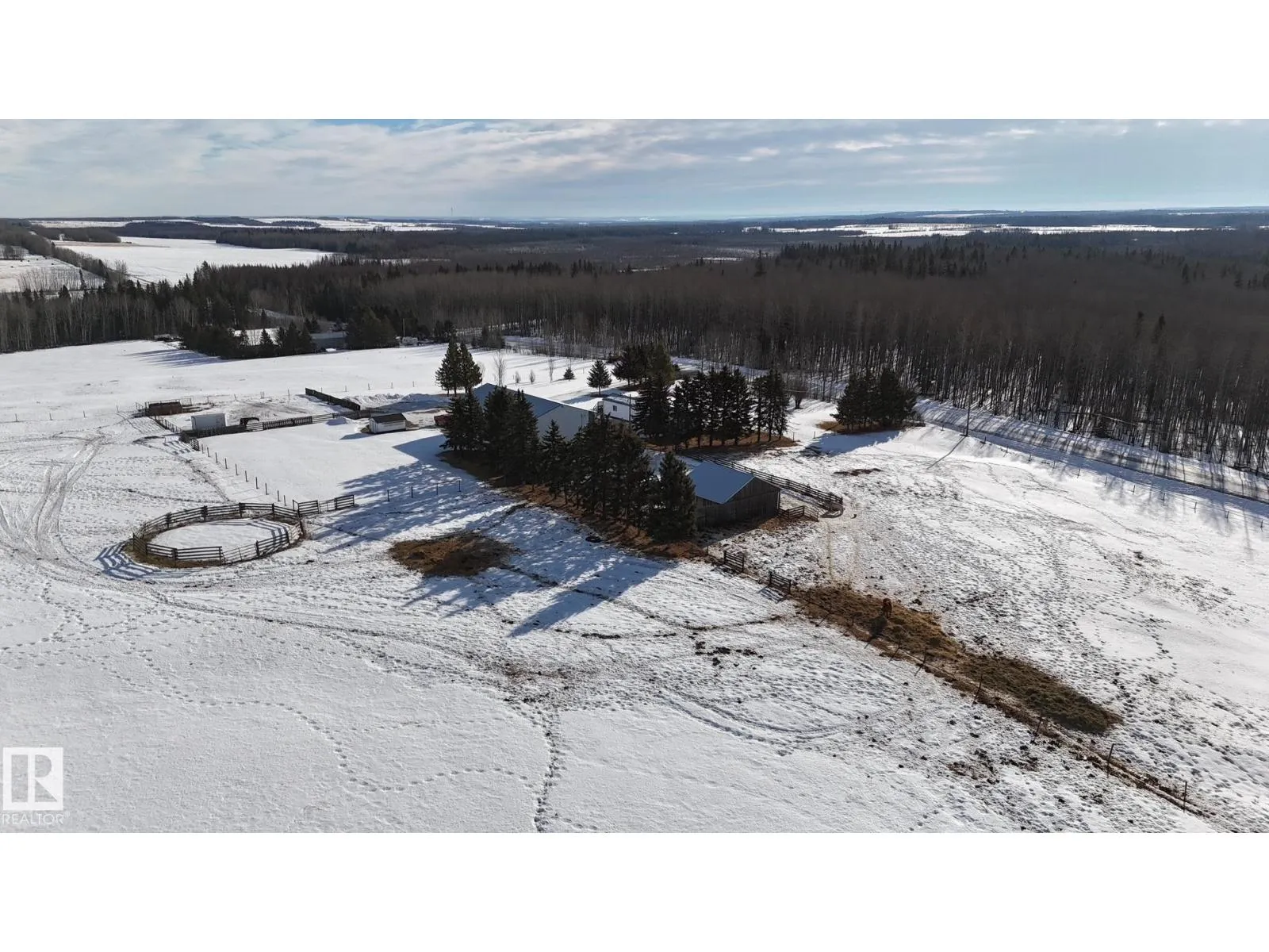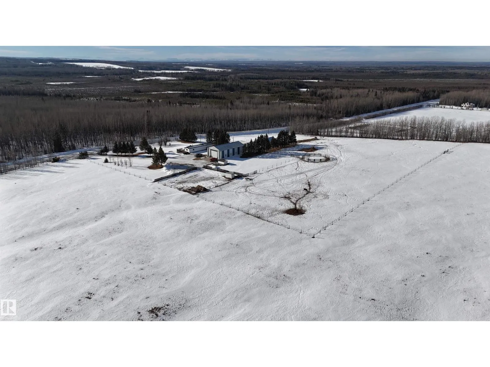Stunning home & shop perched at the top of the hill on 10 acres of breathtaking beauty, offering views for miles! This immaculate 3 bedroom, 1 bath home is extremely well kept & features a spacious front living area & inviting kitchen. The kitchen boasts a large island & 5 appliances, perfect for everyday living & entertaining. An 8x16 addition adds a generous boot room & extra storage. Step outside to a large wrap-around deck where you can relax, BBQ (BBQ included!), & soak in the million-dollar view. The massive 72x40 shop features a concrete floor & large apron, ideal for all your toys. Wired, partially insulated, with a floor drain, it shows like new! Ample graveled yard space allows easy movement of most vehicles. Also included are a barn, corrals, waterer, & extensive fencing & cross-fencing for any animal lover. Located in beautiful Brazeau County, this property shines inside & out! Updates over the years include most vinyl windows, shingles(2014), siding, skirting, HWT(2021), & so much more. (id:27476)