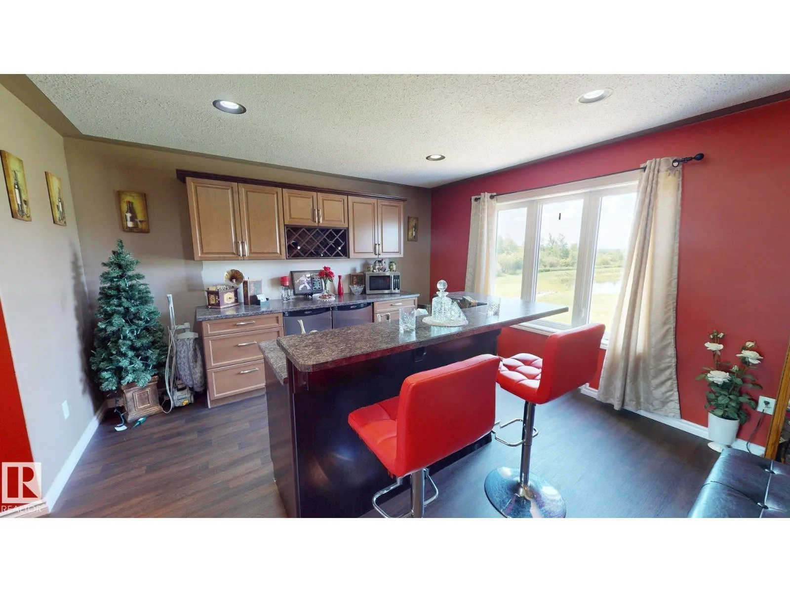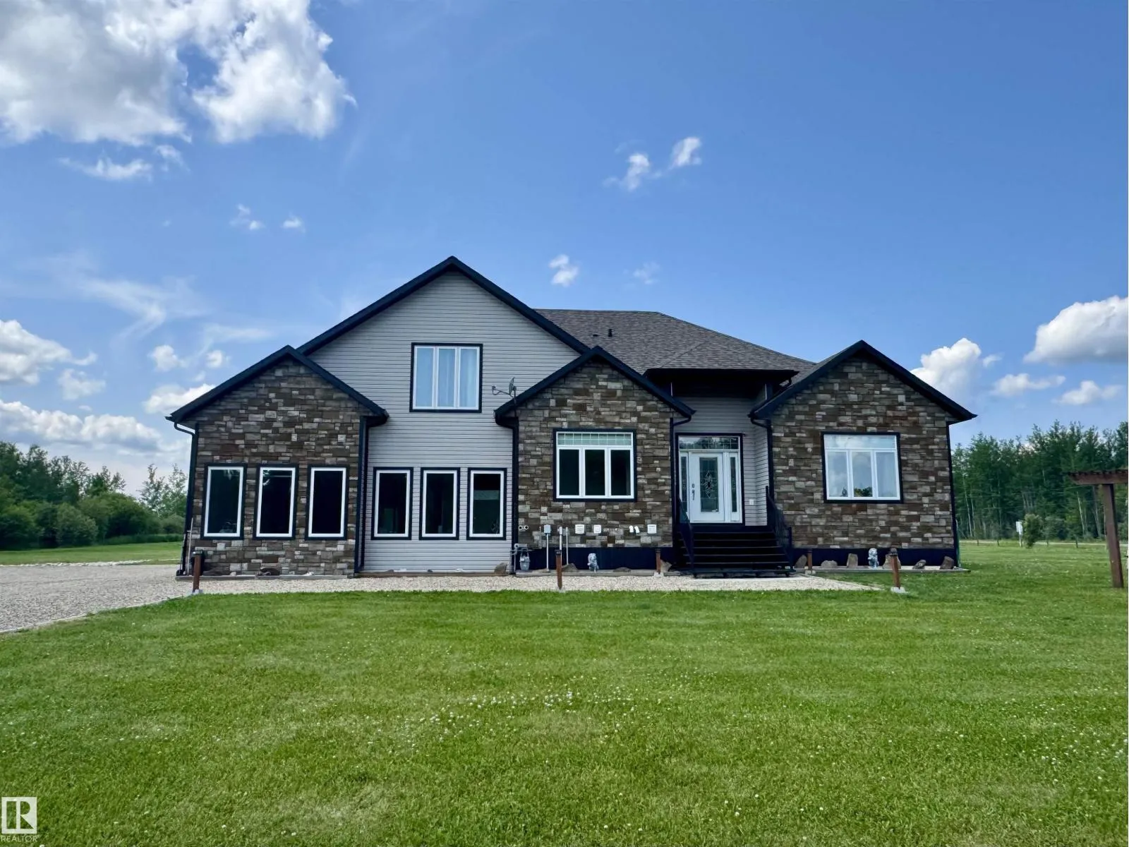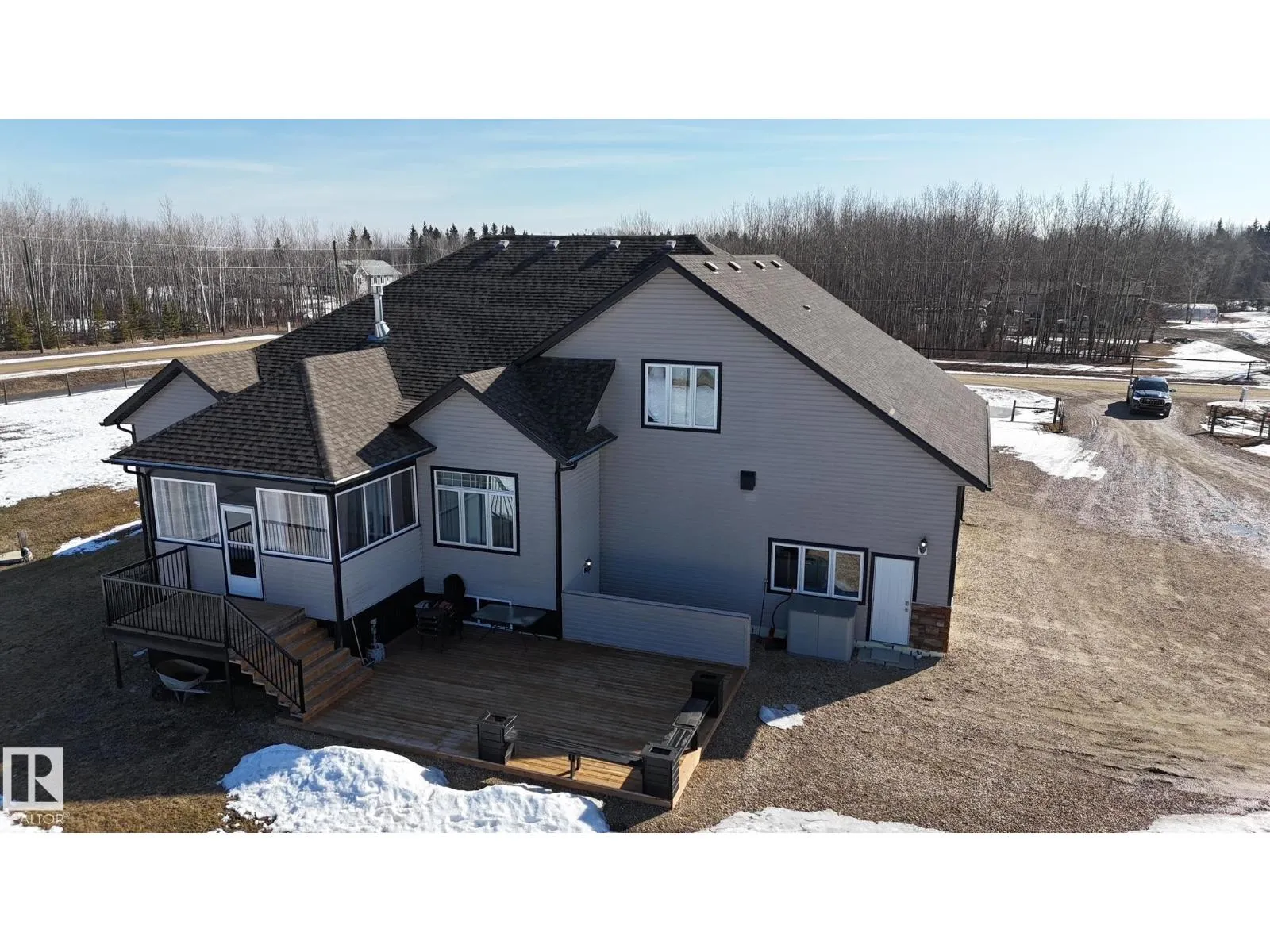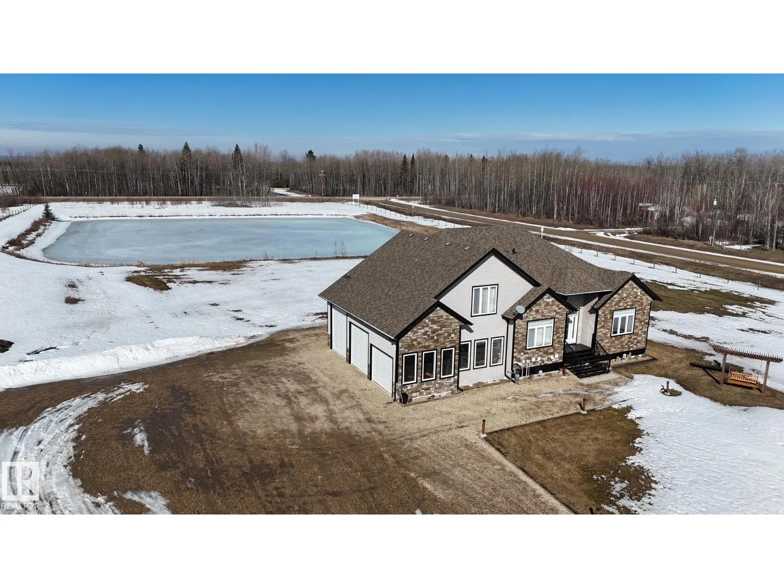 Experience refined country living on this breathtaking 4.7-acre estate, just minutes from Drayton Valley. Anchored by a stunning custom pond, this elegant 1.5-storey home blends timeless design with modern comfort. The main level showcases a beautifully appointed chefâs kitchen, formal dining space, inviting sitting room, private office, and a luxurious primary retreat complete with spa-inspired ensuite and in-closet laundry. Upstairs, an open-concept lounge with wet bar creates the perfect setting for upscale entertaining. A fully self-contained guest suite with private entrance, kitchen, ensuite, and laundry offers exceptional flexibility for extended family or income potential. Enjoy serene views from the sunroom and expansive deck, surrounded by manicured grounds. Complete with a triple attached garage and ample space for all your lifestyle needs, this is acreage living at its finest. (id:27476)