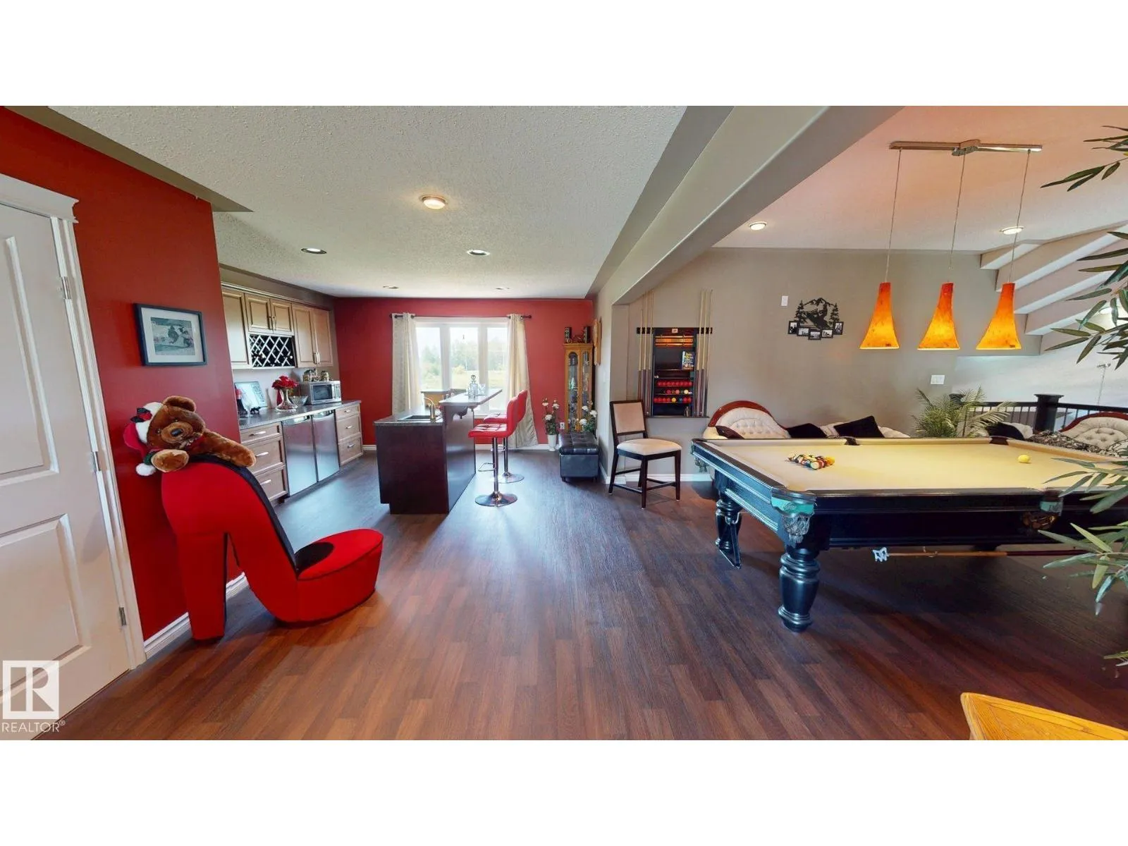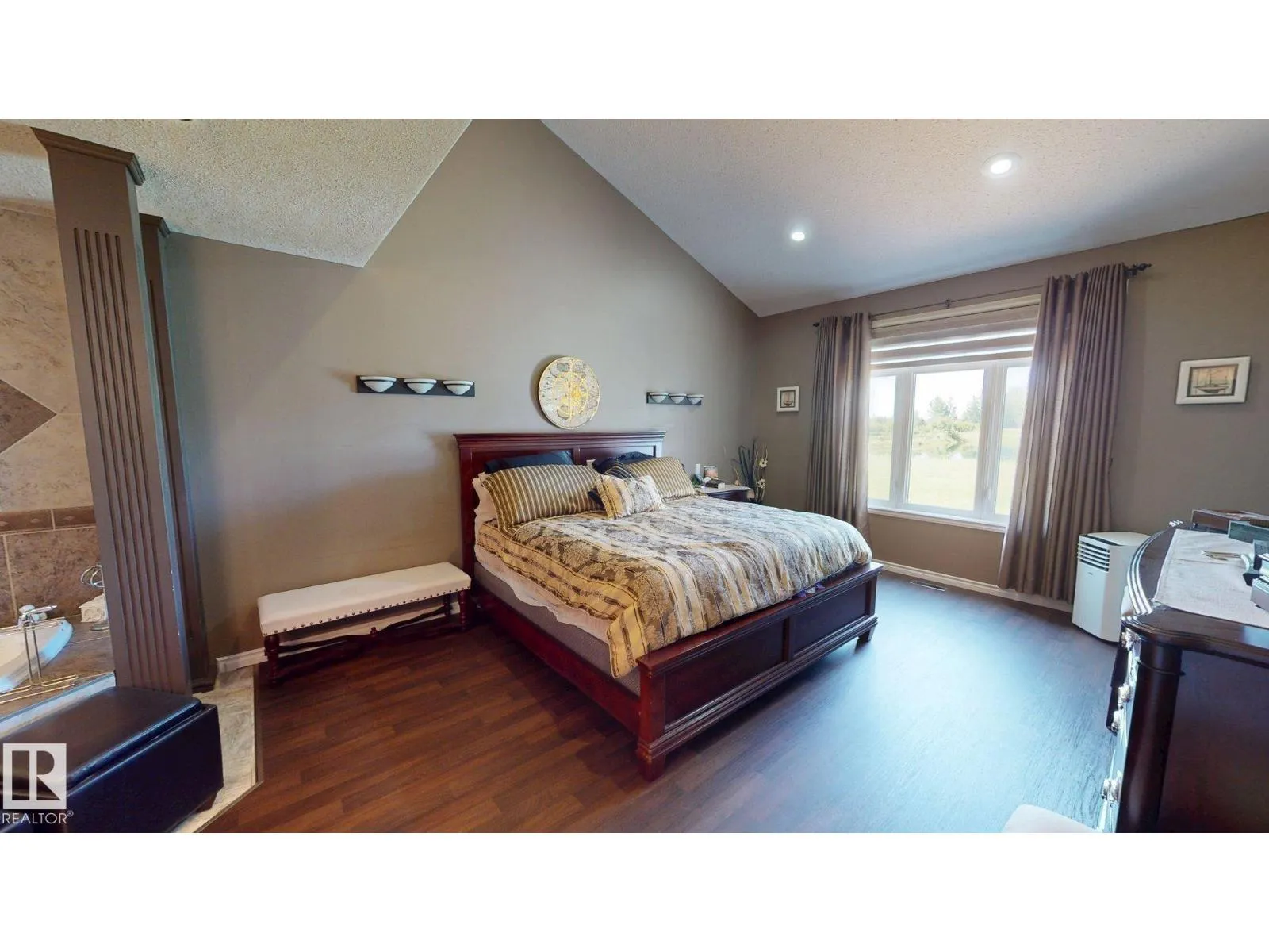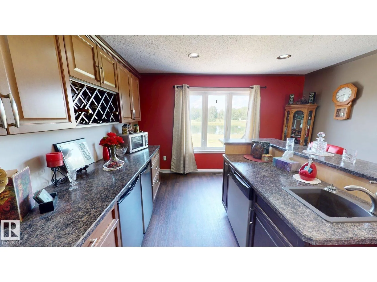Experience refined country living on this breathtaking 4.7-acre estate, just minutes from Drayton Valley. Anchored by a stunning custom pond, this elegant 1.5-storey home blends timeless design with modern comfort. The main level showcases a beautifully appointed chefâs kitchen, formal dining space, inviting sitting room, private office, and a luxurious primary retreat complete with spa-inspired ensuite and in-closet laundry. Upstairs, an open-concept lounge with wet bar creates the perfect setting for upscale entertaining. A fully self-contained guest suite with private entrance, kitchen, ensuite, and laundry offers exceptional flexibility for extended family or income potential. Enjoy serene views from the sunroom and expansive deck, surrounded by manicured grounds. Complete with a triple attached garage and ample space for all your lifestyle needs, this is acreage living at its finest. (id:27476)