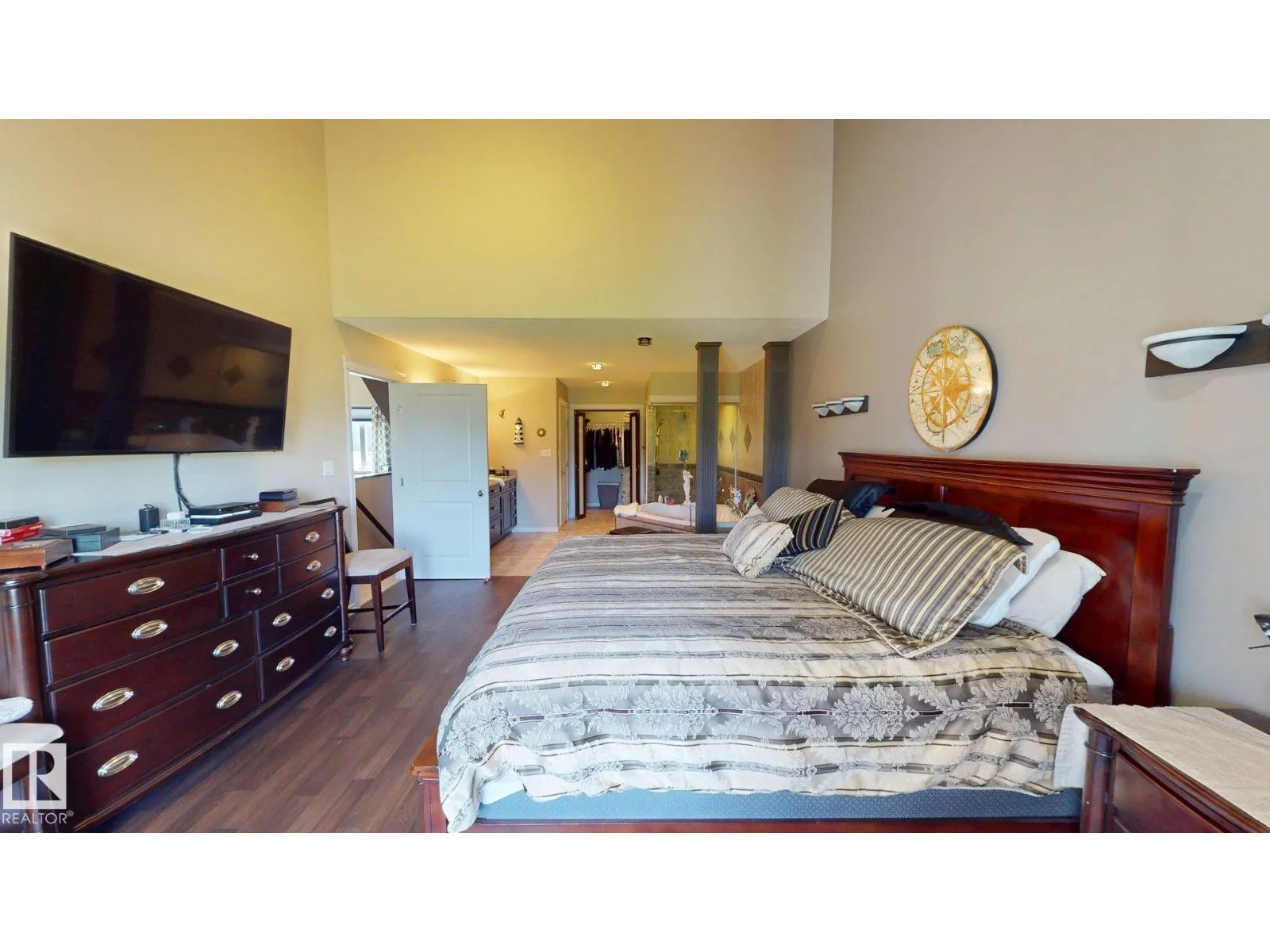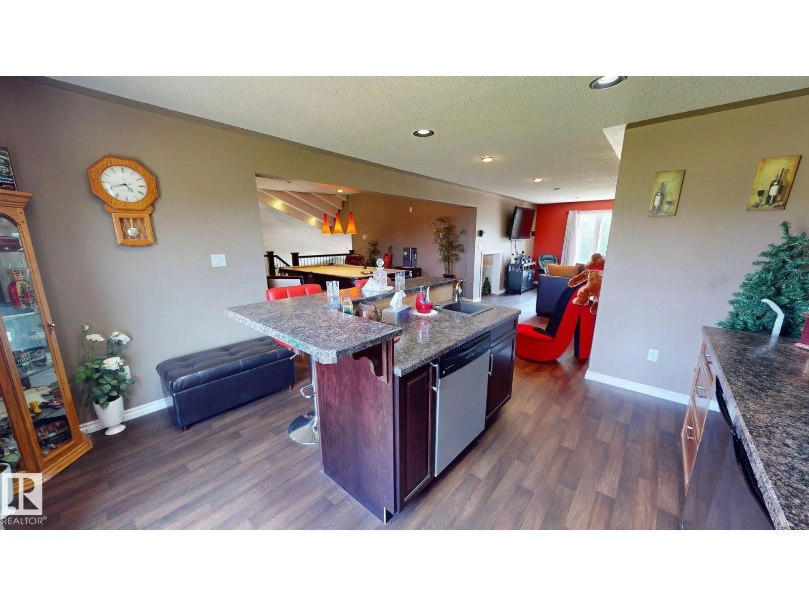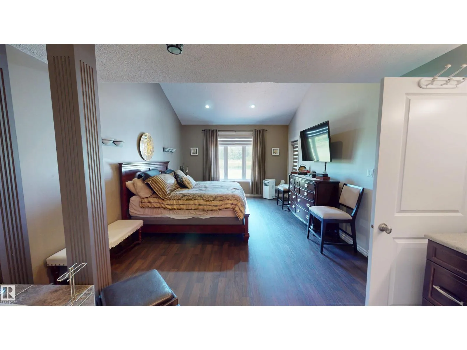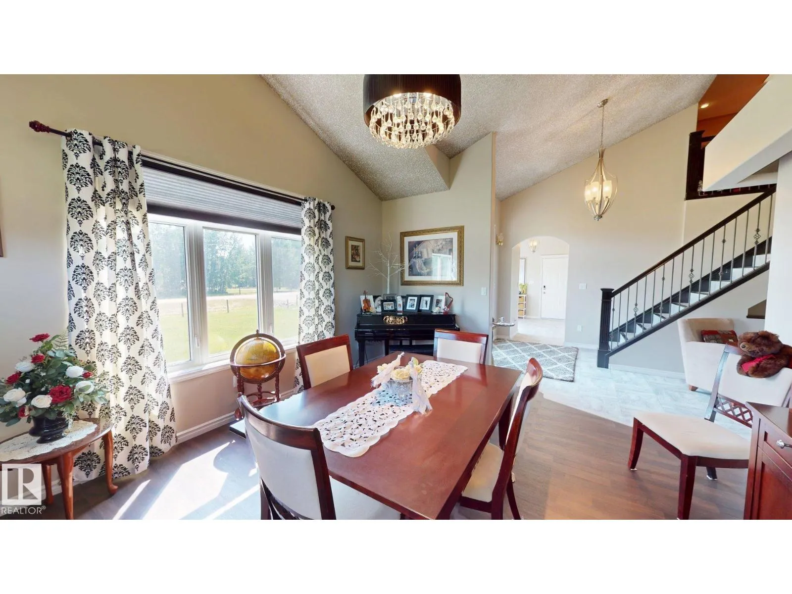 Experience refined country living on this breathtaking 4.7-acre estate, just minutes from Drayton Valley. Anchored by a stunning custom pond, this elegant 1.5-storey home blends timeless design with modern comfort. The main level showcases a beautifully appointed chefâs kitchen, formal dining space, inviting sitting room, private office, and a luxurious primary retreat complete with spa-inspired ensuite and in-closet laundry. Upstairs, an open-concept lounge with wet bar creates the perfect setting for upscale entertaining. A fully self-contained guest suite with private entrance, kitchen, ensuite, and laundry offers exceptional flexibility for extended family or income potential. Enjoy serene views from the sunroom and expansive deck, surrounded by manicured grounds. Complete with a triple attached garage and ample space for all your lifestyle needs, this is acreage living at its finest. (id:27476)