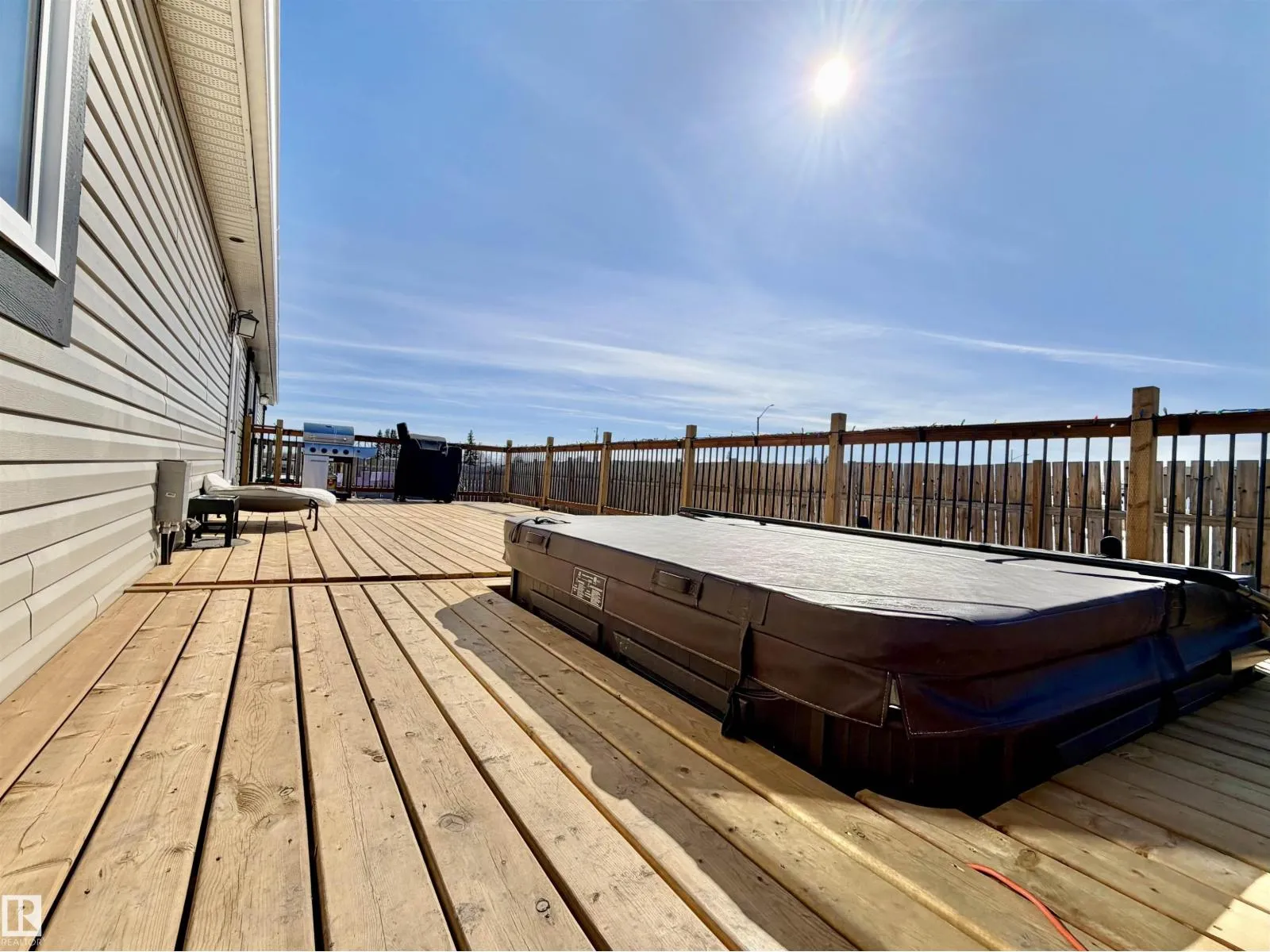 Step into luxury, space, and standout outdoor living! This rare 20â wide mobile home is anything but ordinary. Offering 4 bedrooms (a true rarity in this category), this home delivers both space and functionality for families or those needing extra room for comfort. Inside, youâll find two 4-piece bathrooms, including a private ensuite complete with a relaxing soaker tub and a generous walk-in closet in the primary bedroom. Added comfort comes with central A/C, keeping the home cool. The heart of the home is the bright, open kitchen, designed to impress with a large central island with modern flare. Just off the kitchen, oversized patio doors lead you to the show-stopping feature of this property: a massive, newly finished deck with a built-in hot tub. This incredible outdoor space is made for relaxing, hosting, and enjoying every season. The exterior continues to shine with a fully fenced yard, a beautifully landscaped fire pit area for cozy evenings, and a large shed providing ample storage. (id:27476)