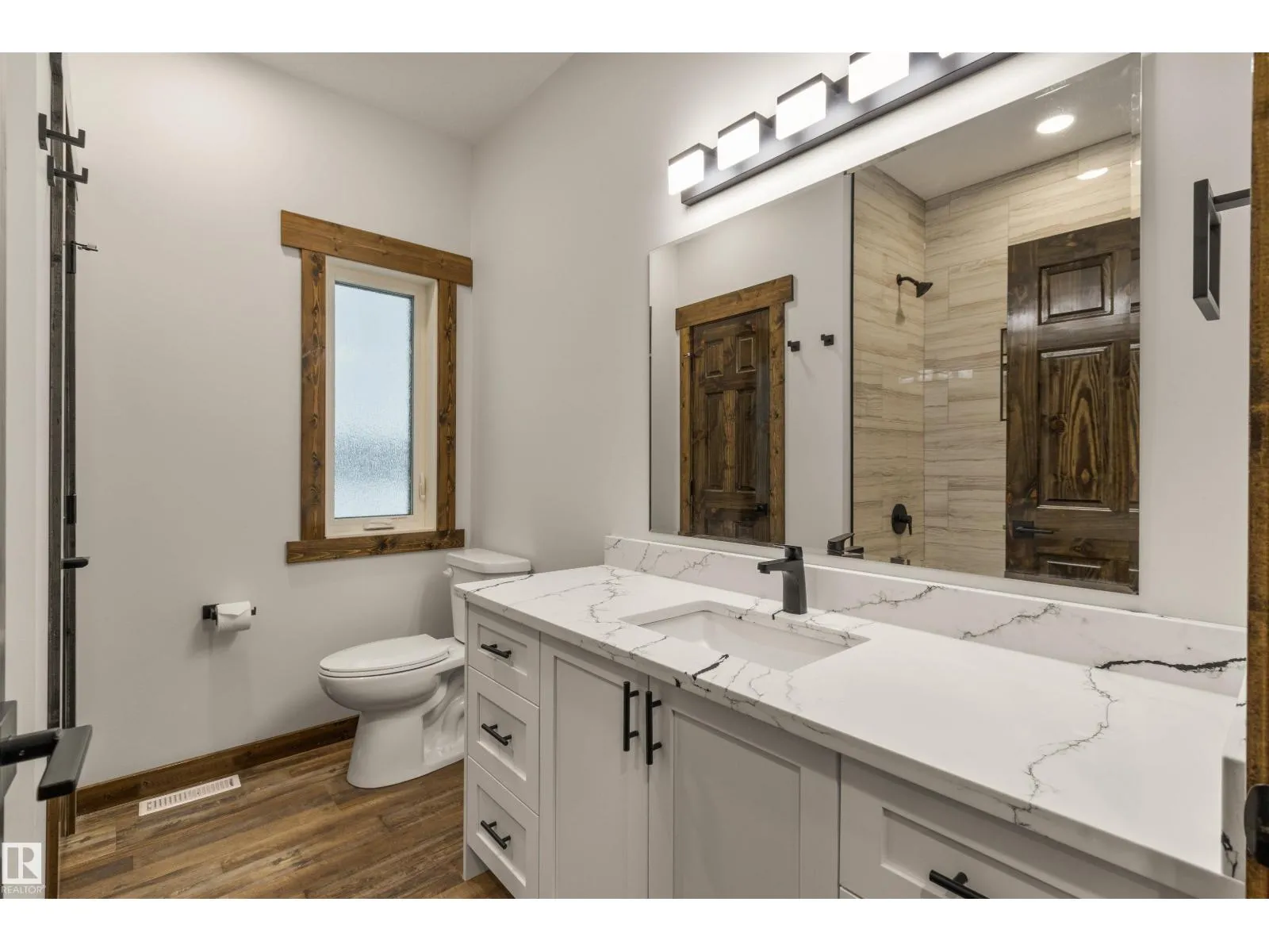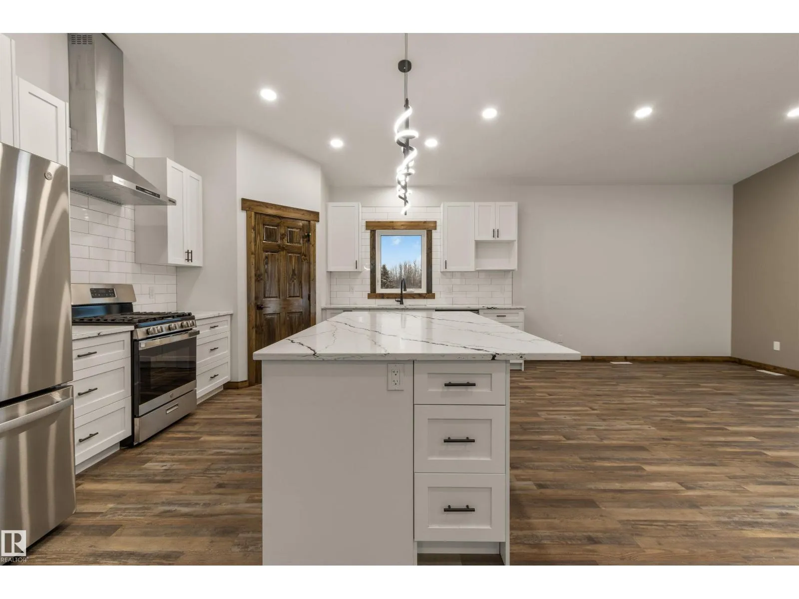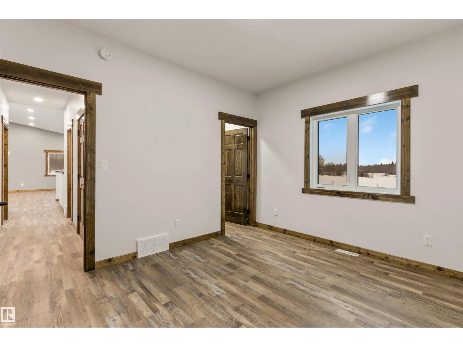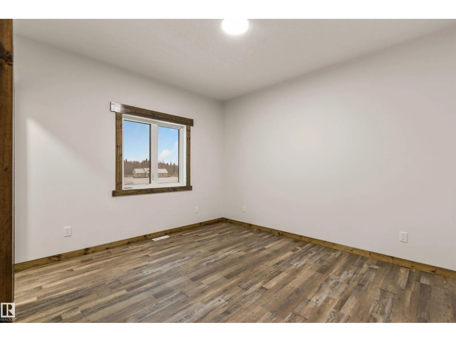 Acreage living with only a few mins drive to town. This 2024 built home sits on 4.4 acres in The Ranch Country Estates 10 mins North West of Drayton Valley. In this bi-level, you step into a large entrance with plenty of room for everyone to get inside whether its with the dog and groceries or kids kicking off boots. The dark wood trim and doors give you the rich moody feel and contrasts wonderfully with the bright kitchen and bathrooms that feature white cabinetry and quartz counters. Multiple walk in closets, in floor heat in basement, incredible storage throughout and you top it off with a south facing 30ft X 14ft covered deck to end your day. This home won't disappoint. (id:27476)