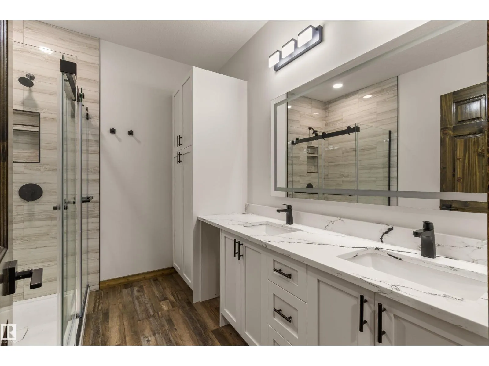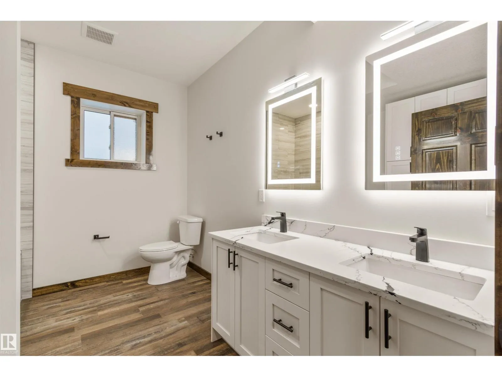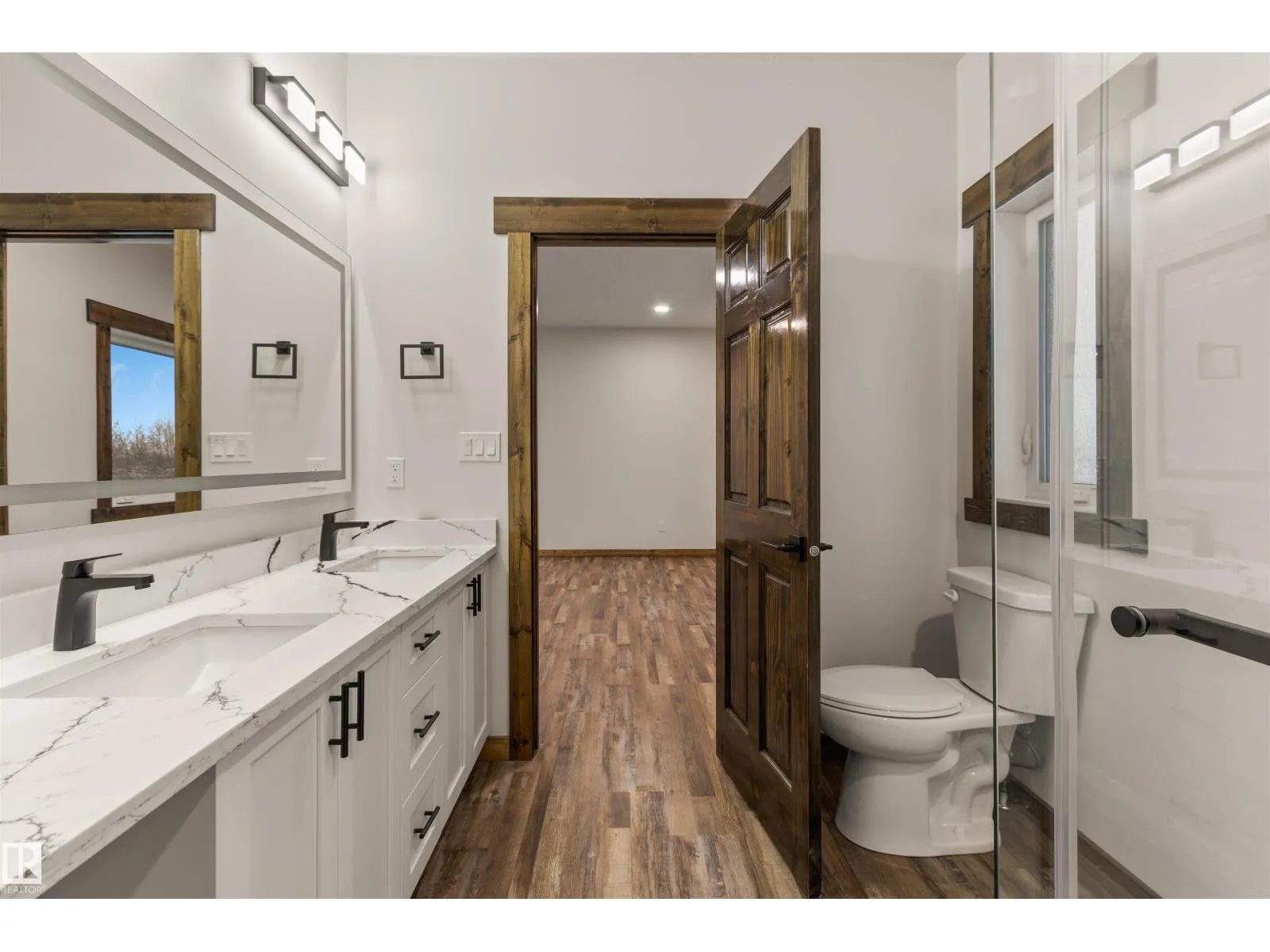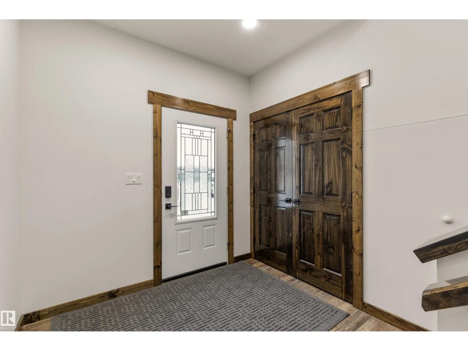 Acreage living with only a few mins drive to town. This 2024 built home sits on 4.4 acres in The Ranch Country Estates 10 mins North West of Drayton Valley. In this bi-level, you step into a large entrance with plenty of room for everyone to get inside whether its with the dog and groceries or kids kicking off boots. The dark wood trim and doors give you the rich moody feel and contrasts wonderfully with the bright kitchen and bathrooms that feature white cabinetry and quartz counters. Multiple walk in closets, in floor heat in basement, incredible storage throughout and you top it off with a south facing 30ft X 14ft covered deck to end your day. This home won't disappoint. (id:27476)