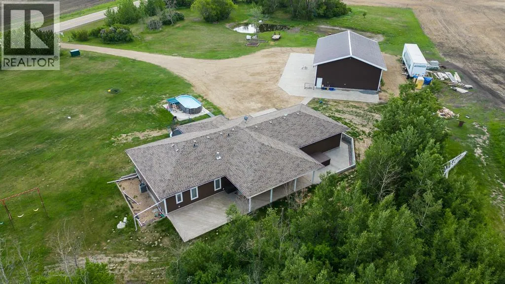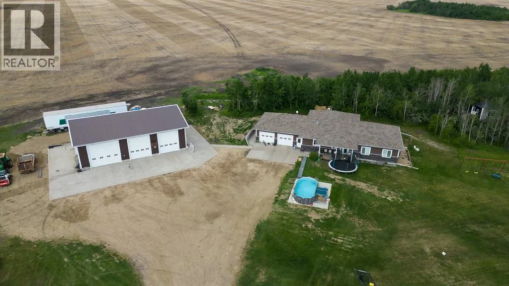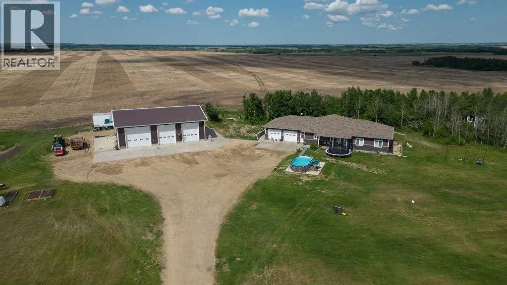 Outstanding acreage living in this immaculate sprawling bungalow located only 15 minutes from Camrose! Talk about checking all the boxes! This 1972 square foot home is fully finished with an oversized attached double garage, sits on just over 9 acres of land, with highway access, and boasts a 40 x 60 fully finished work shop with 3 bay doors! You and the family are going to absolutely adore this beautiful home from the moment you walk in the front door with its spacious entry that leads right into the large living room with gas fireplace that looks upon your mammoth patio with natural gas hooked up for your BBQ. In the dining area youâll find lots of room for a large dining table and a built in desk which also currently houses the security system. A 10 foot long island with breakfast bar centers the kitchen that showcases a large corner pantry and a wealth of cabinets, drawers and counter space that will make large dinners a breeze. Off of the kitchen, is main floor laundry and a two piece bath. On the other side of the kitchen is access to the heated double garage which features a large mud room for all the kidâs jackets, bags and hockey gear! On the main floor youâll also find the massive primary bedroom that holds a 3 piece en-suite and walk-in closet. Along with the primary bedroom, there are two generously sized bedrooms and a 4 piece bath. As you head into the fully finished basement youâll love the gigantic family room and the two enormous bedrooms! The basement also boasts a 3 piece bathroom, great storage area and a utility room you can actually maneuver in! That is only the house, we canât forget about the heated 40 x 60 shop with its 3 bay doors with space for all the toys and a convenient loft for storage. This shop also holds the two large cisterns for the home so you never have to worry about the well freezing up. In the front yard, youâll enjoy all the green space, a small dugout and multipurpose concrete pad with in-floor heat, which is al so in the house, that has been used to hold a swimming pool in the summer and a small skating rink in the winter. With a large tree house in the back, a private hot tub set up behind the home and all the space to activities; this is the perfect family home for you to live, work and play! (id:27476)
