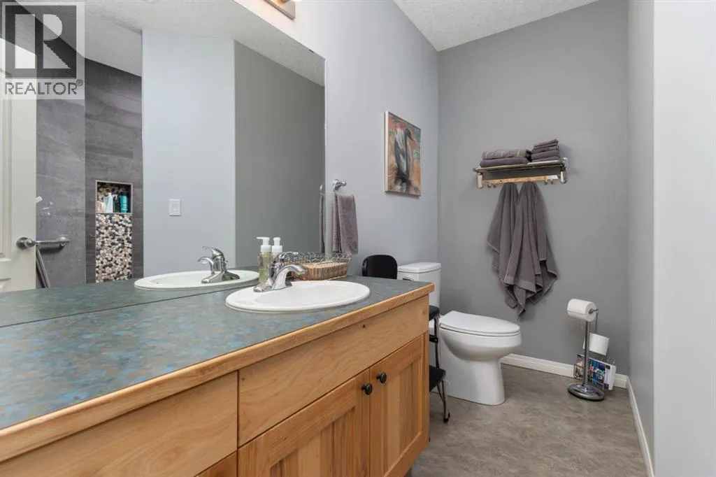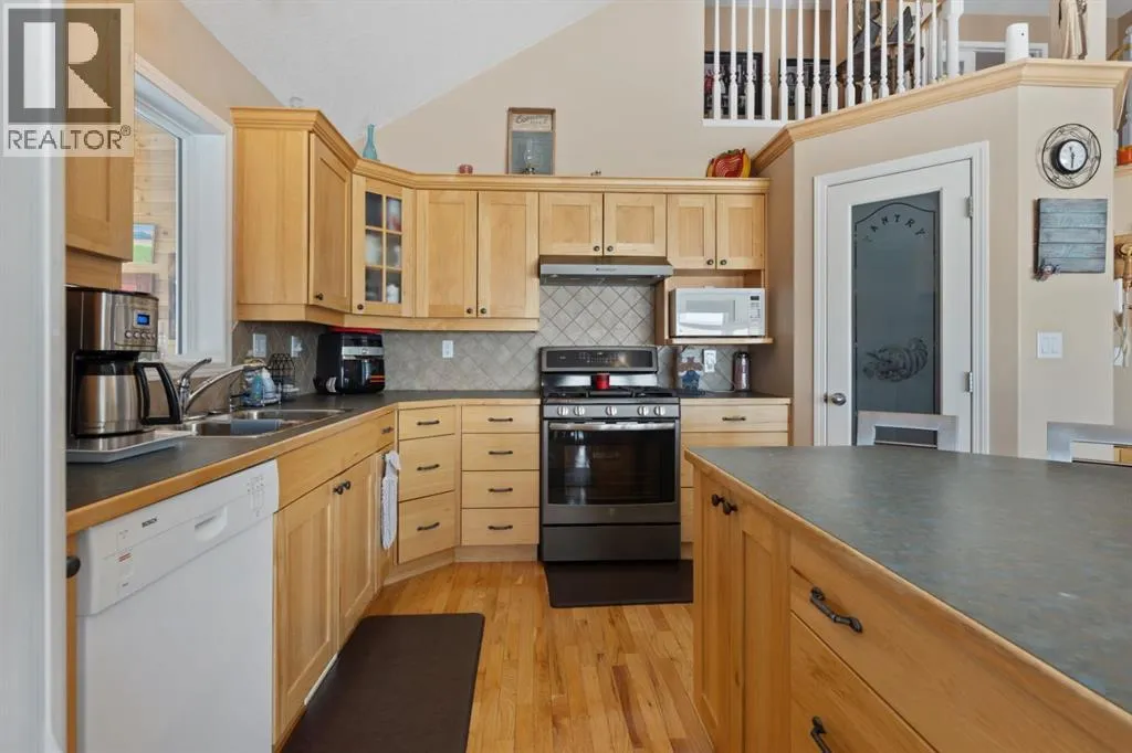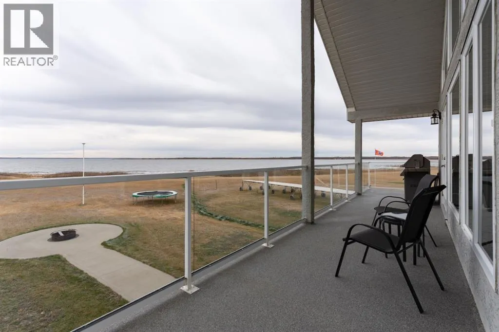 Welcome to your dream escape at Braseth Beach - an exclusive gated lakefront community on the north shore of Buffalo Lake. Tucked into a beautifully landscaped lot with flat walkout access right to the shoreline, this one-and-a-half-storey luxury home is built for year-round comfort, connection, and relaxation. Inside, you'll find a warm and inviting open-concept main floor with a stunning wall of south-facing windows that frame panoramic lake views. The classic brick-faced fireplace adds charm and coziness, while the eat-in kitchen with center island and corner pantry makes entertaining effortless. The spacious primary suite is a lakeside sanctuary - complete with high ceilings, walk-in closet, updated ensuite with jetted soaker tub, and garden doors opening to your private deck. Imagine waking up to tranquil water views every day. A second tucked-away bedroom with a nearby full bath offers great privacy for guests or family. Upstairs, the open loft adds even more flexibility - a perfect spot for a quiet reading corner, home office, or bonus space for visitors. The fully finished walkout basement includes two additional bedrooms, a theatre room, large living space, tons of storage, and a cold room - plenty of room for family, hobbies, or hosting. The lower bathroom features a custom shower with a beautiful tile surround and bench-type seating, adding both style and convenience. Step outside and walk straight onto your own beachfront paradise. Enjoy the spacious upper deck, perfect for taking in the breathtaking lake views, while the covered patio below offers a shaded retreat. An enclosed seasonal room provides an ideal escape from the elements when needed. This property also includes a heated, oversized detached garage with room for two vehicles, a shop area, and custom workbench - perfect for your tools and toys. Braseth Beach is a true hidden gem, offering a secure, community-oriented feel with amenities like a guest RV park, playground, and boat launch. Just 1 5 minutes to Bashaw for all your essentials. Buffalo Lake offers four seasons of fun - boating, swimming, fishing, skating, snowshoeing, and so much more - making it the perfect place to enjoy every month of the year. Meticulously maintained and truly loved, this home shows undeniable pride of ownership - ready to be passed on to someone who will cherish it just as much. Lakefront homes here are rarely available, because once you're here, you won't want to leave. (id:27476)