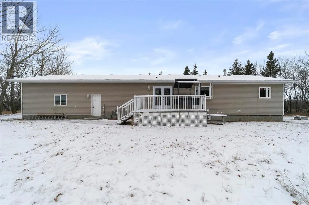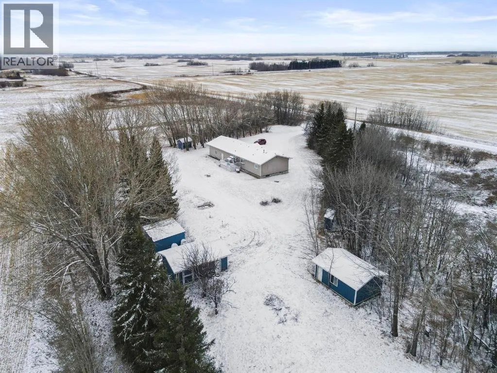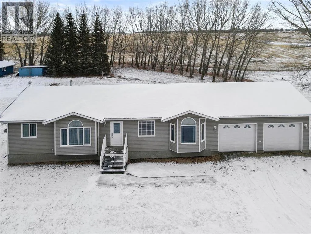 Nestled just north of Camrose and east of Hay Lakes, this beautifully maintained acreage sits just off the highway and offers an exceptional blend of comfort, functionality, and country charm. The property is fully equipped with a perimeter fence, a dug-out, a drilled well, plus a secondary well that remains useable. Ideal for livestock or hobby farming, it features corrals, a horse shelter, and a heated 16' x 24' shop/garage complete with hot and cold water. An RV parking area with its own septic dump and power adds extra convenience. The grounds are well kept, providing a peaceful setting for the warm, inviting 5 bedroom bungalow home. Inside, youâll find an open-concept layout highlighted by maple cabinets, a large walk-in pantry, vaulted ceilings, and a bright bay window in the primary bedroom, which also includes a luxurious 5-piece ensuite with a soaker tub. Main-floor laundry option adds everyday ease. The fully finished basement boasts a high-efficiency furnace, a boiler with heat-on-demand for the underfloor system, ceiling tiles, pot lights, a family room with a wet bar, recreation and games rooms, a laundry/utility room, a cold room, two spacious bedrooms, and a 3-piece bath with a 5-foot walk-in showerâperfect for comfortable rural living with every modern amenity. (id:27476)