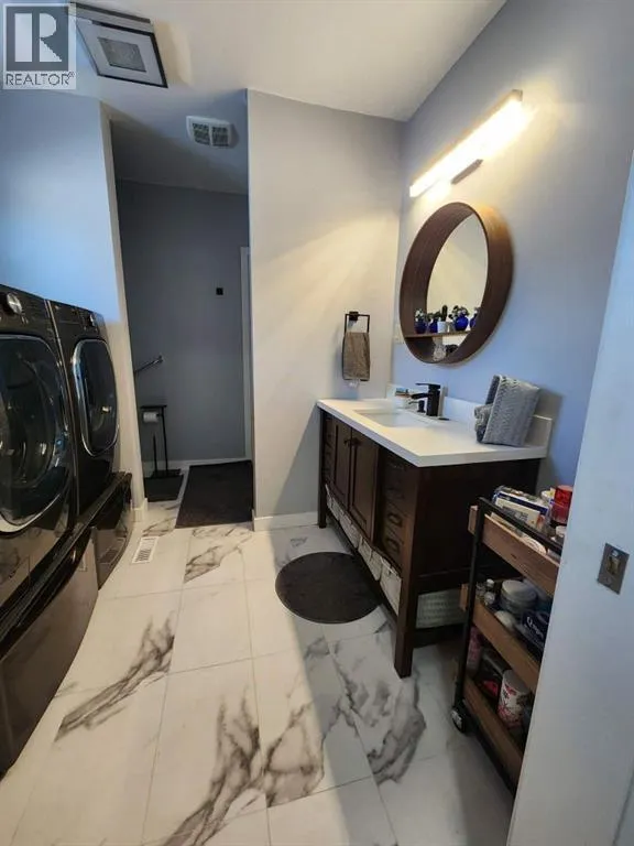 Welcome to this cozy farmhouse with tin roof perfectly situated between Camrose and New Norway. The yard welcomes you with a large amount of fruit trees, raspberry bushes and garden boxes for your summer feast. A double natural gas heated garage with 220 amp power is steps away to this quaint home. It has 2 bedrooms up with newly renovated main floor laundry and 3 piece bathroom, central AC, new furnace and matching laminate throughout. The unfinished basement has opportunity for a bedroom, start of a 3 piece bathroom and plenty of room for storage. This home has had numerous recent updates including windows, Hot water tank, cement pad, and new Septic tank and field. This home would be a great space for a hobby farm or to house a few small animals. (id:27476)