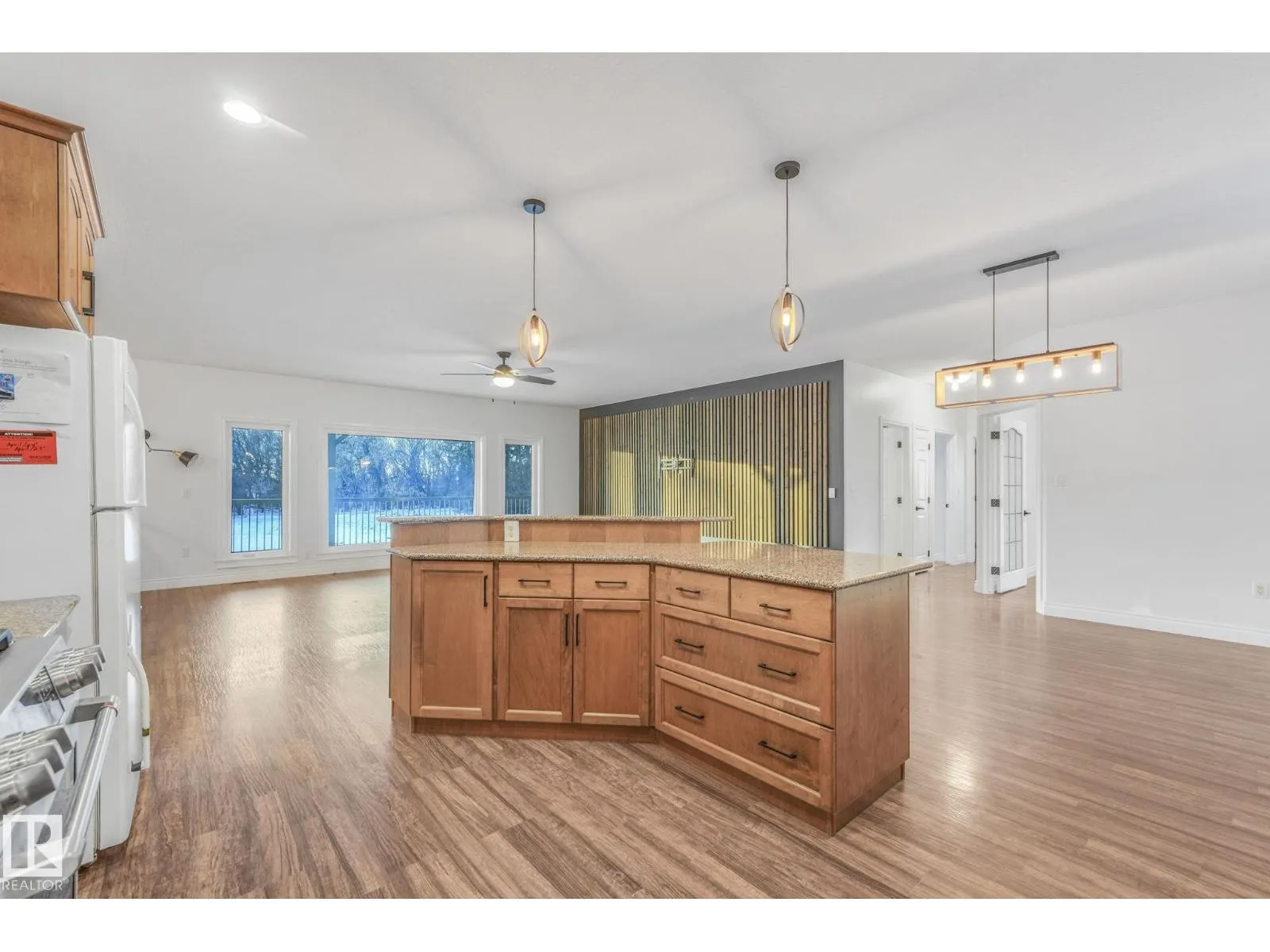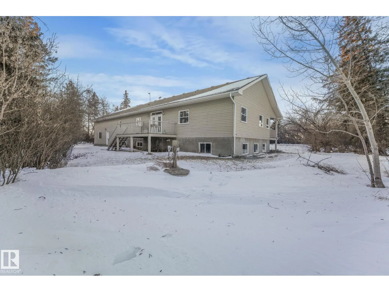 Imagine being tucked away, on this stunning Private 3.9-acre property surrounded by mature trees and offering the perfect blend of comfort, functionality, and tranquility. This 1856 sq/ft bungalow boasts an open floor plan with a spacious kitchen, walk-in pantry, office, main-floor laundry, 3 piece bath, bedroom, and a primary suite with a 4-piece ensuite. The finished basement adds three additional bedrooms, a 3-piece bath, family room/rec area and den. East & West facing decks completes the Main floor. Outdoor features are just as impressive with two shops (36x38) and (24x24). The larger has in-floor heating, full bathroom, and a kitchen area. Recent Upgrades includes Heat and boiler hook-ups for the shop, Iron filter system, Reverse osmosis filter, Culligan water Dispenser, Newer Roof, Triple Pane Windows throughout the main, Heated mirrors in the main floor bathroom, Bluetooth speaker in mirror in Primary bathroom. Whether you're looking to live, work or unwind, the Possibilities are Endless (id:27476)