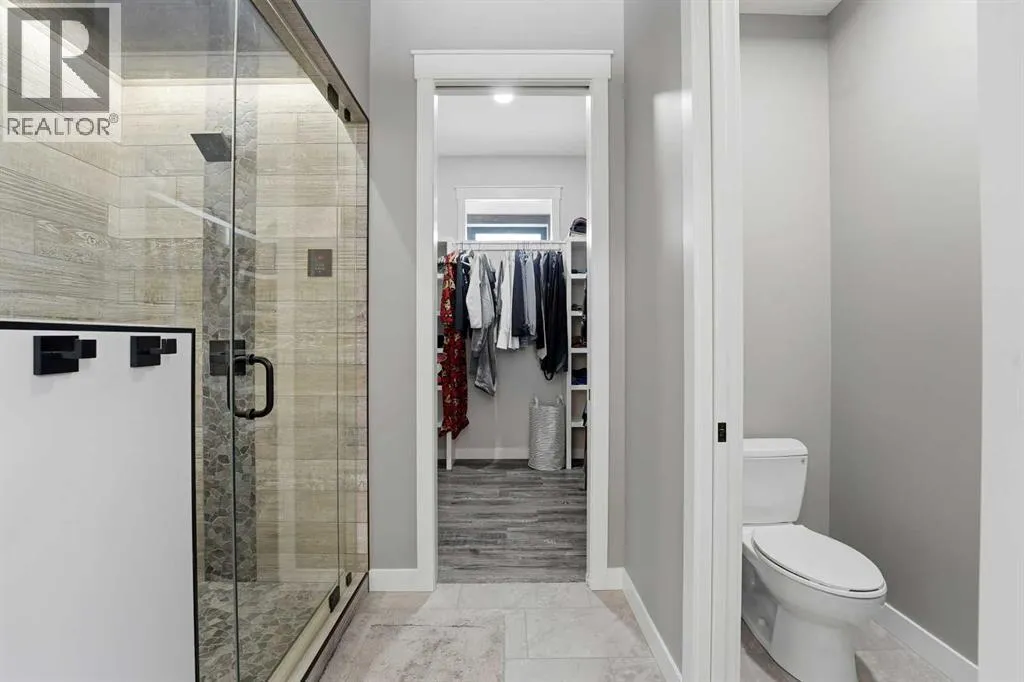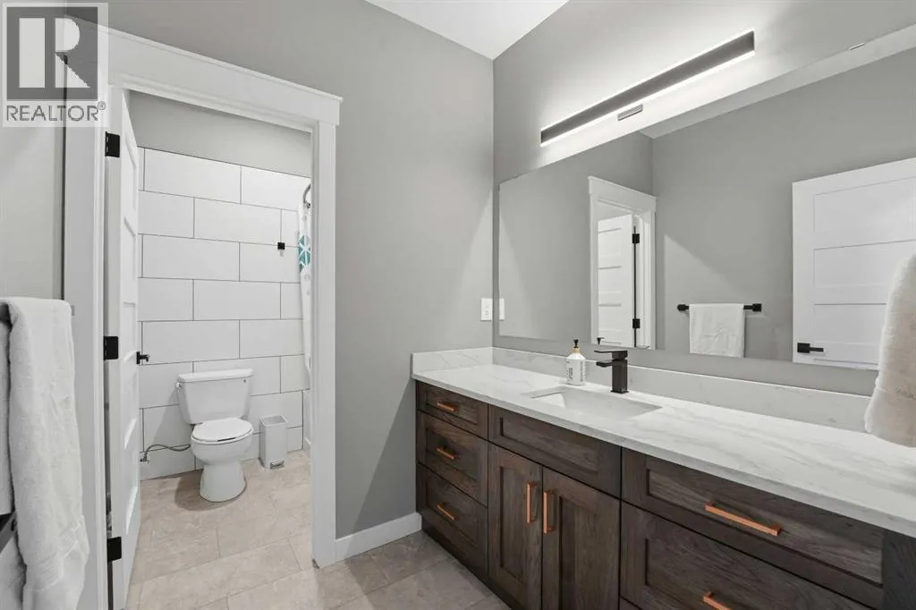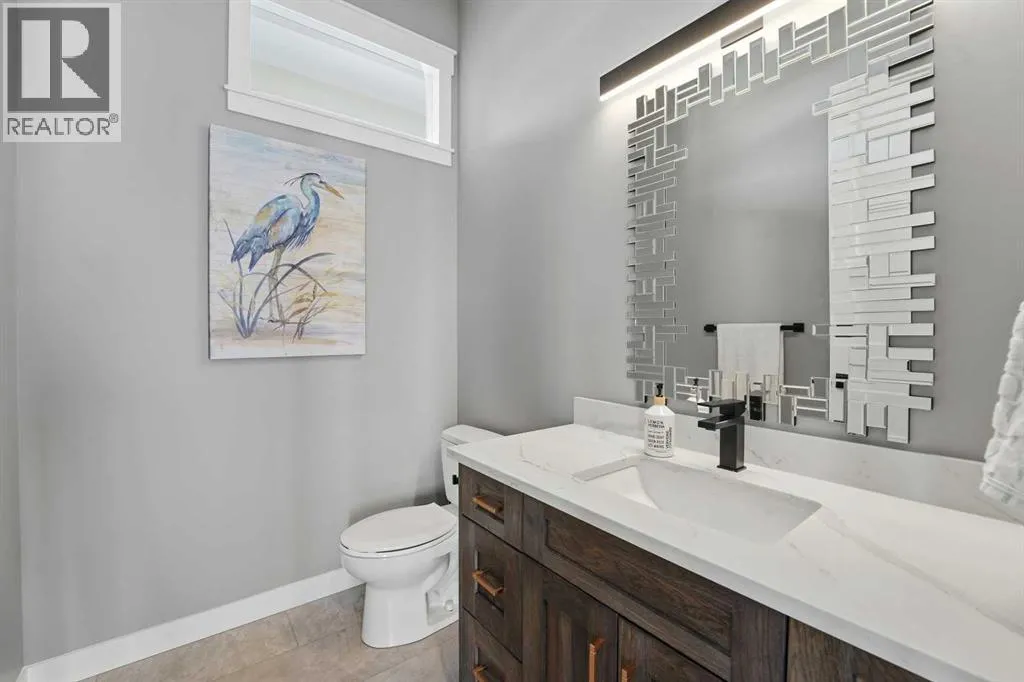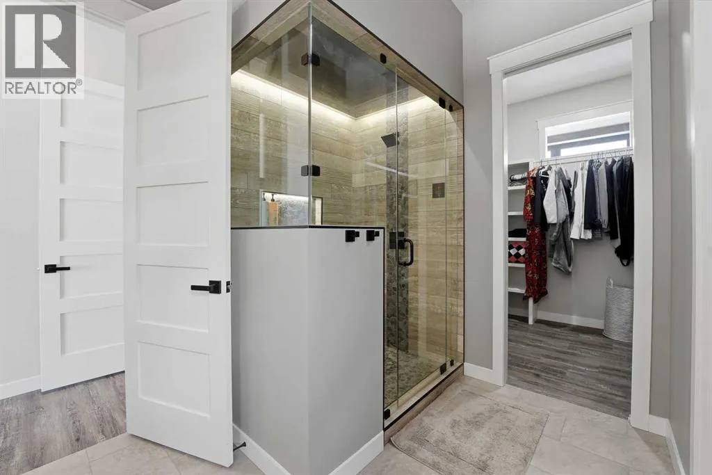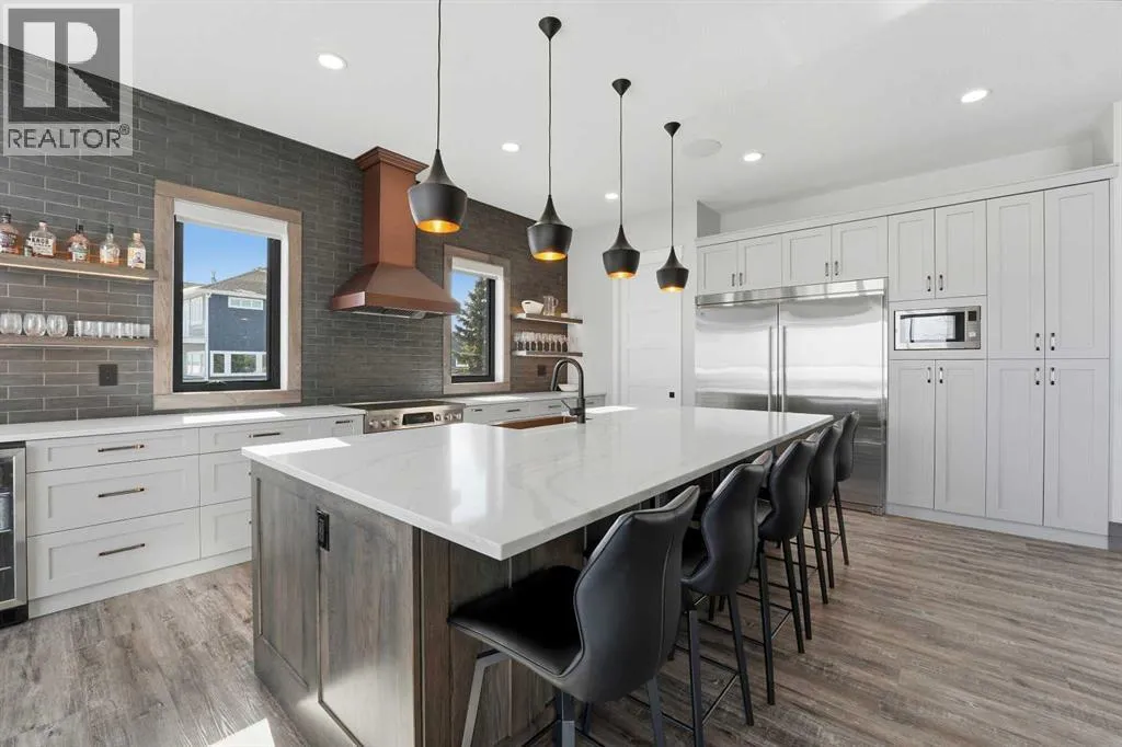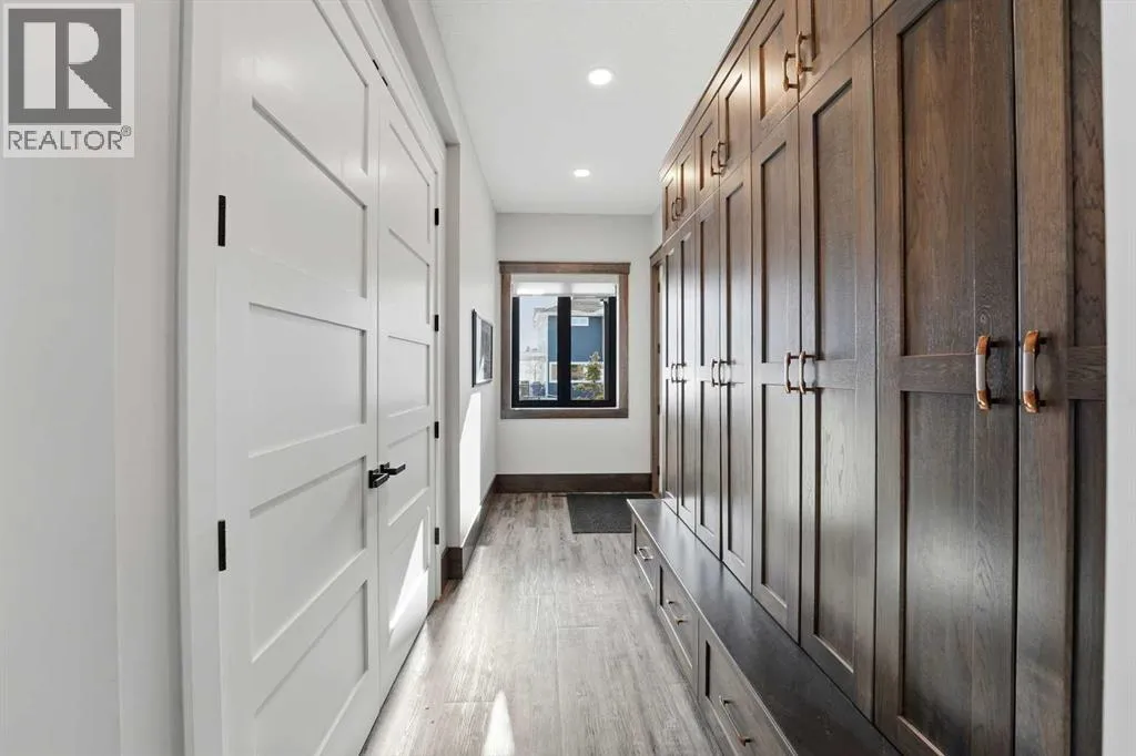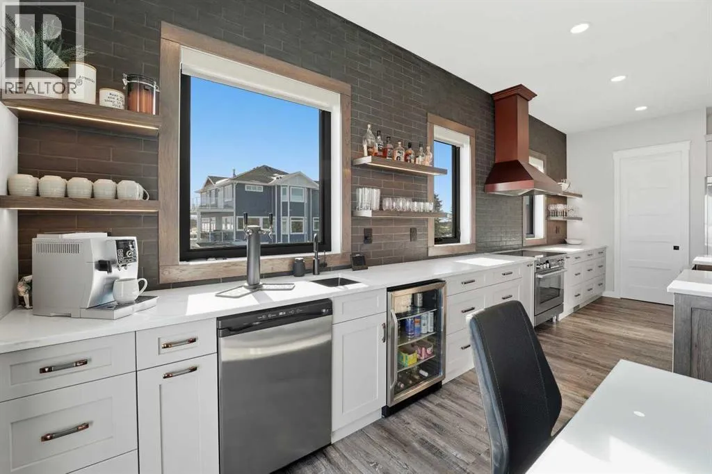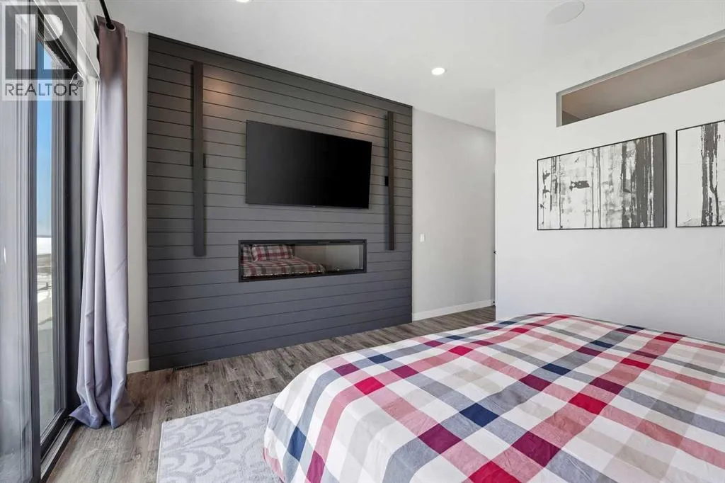 Be prepared to be impressed by this luxury lakefront home in Pelican View Estates offering nearly 3,400 sq ft of finished living space! From the moment you arrive, the curb appeal stands out with composite siding, stone accents, and an oversized stamped concrete driveway, along with additional paved parking beside the garage ideal for an RV or guests. Inside, the main living area features 10â ceilings, luxury vinyl plank flooring, upgraded thick hickory trim, and expansive lake views through the large triple-pane windows. The kitchen is a true showpiece with white cabinetry, expansive quartz countertops, and an upgraded stainless steel appliance package including a 36â induction cooktop, side-by-side fridge/freezer, beverage fridge, and a kegerator that can also be used for carbonated drinks, while the oversized island adds even more space with a huge quartz counter and stylish hickory cabinetry. The dining area is surrounded by windows with lake views, and the living room showcases a striking 12â ceiling with fir finished beams. Just off the entrance is a mudroom with hickory lockers and garage access. The primary bedroom offers lake views through the sliding doors to the deck, and a feature shiplap wall with an electric fireplace, along with an ensuite featuring dual sinks, a custom tiled steam shower, and access to a spacious walk-in closet. A 2-piece bathroom completes the main level. The walkout basement opens to a large family and games area with a wood stove and access to the outside stamped concrete patio. There is also two bedrooms, an office with included Murphy bed (or can be a third bedroom if desired), a 4-piece bathroom, laundry room, a cold storage room, and a dedicated home theatre with an included projector and screen. The theatre room also features a vault-style metal door, allowing the area to double as secure storage or a safe room, plus an additional 4-piece bathroom and storage room. The attached garage is heated, finished with Trusscore panels which are waterproof, includes hot and cold water taps, 8â overhead doors, and measures over 36â wide by 28â deep. The outdoor living is exceptional with a full-width deck accessible from the dining area and primary bedroom, finished with Duradek, frameless glass railing, a covered section with a built-in heater and a powered screen to enclose it, while below the deck is a stamped concrete walkout patio extending to a fire pit area and a low-maintenance artificial turf yard. Both the upper covered deck and lower patio feature tongue-and-groove pine ceilings. The home also includes permanent perimeter lighting. Another standout feature is the $80,000 Control4 system offering remote control of lighting, blinds, security cameras, HVAC and more. Pelican View Estates provides community trails, a shared dock with the option to own a boat slip (negotiable on this sale, with slips valued around $7,500), and raking of the beach making it one of the nicest beaches in central Alberta just steps from your back door! (id:27476)
