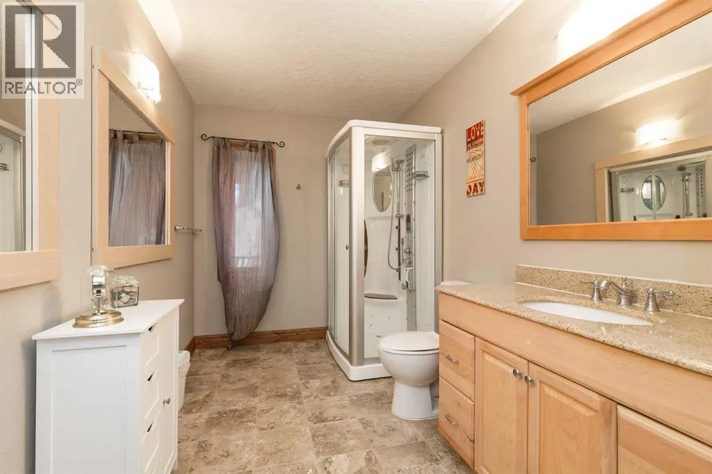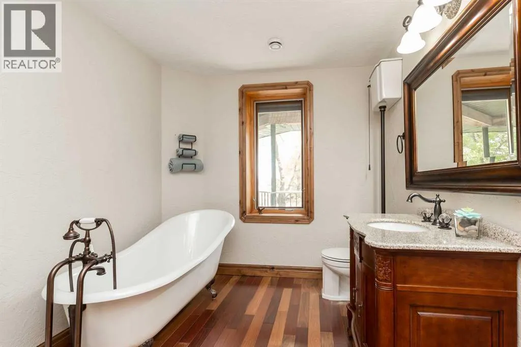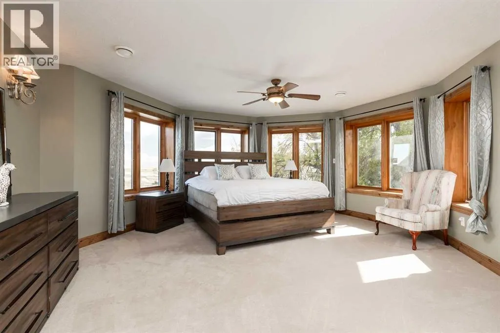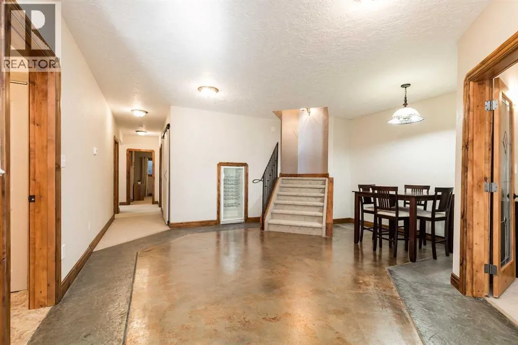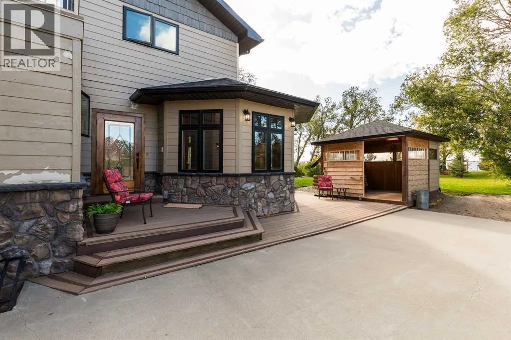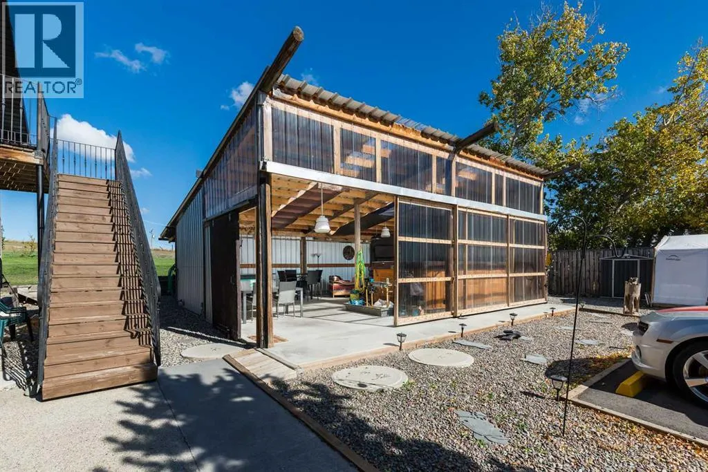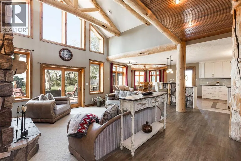 This is a property you simply have to see to believe â thereâs almost too much to describe! With over 4,000 sq. ft. of beautifully finished living space, plus a fully equipped in-law suite over the garage and a charming bunkhouse with its own bathroom, fireplace, and furnishings, this home feels like something straight out of *Yellowstone*. The craftsmanship, log beams, and rustic design blend seamlessly with the **breathtaking mountain views**, making this one of the most stunning properties in southern Alberta.Inside, every detail has been thoughtfully designed and meticulously maintained. Enjoy a fitness room with quality gym equipment (included), a games room with pool table, and a movie room complete with furnishings and entertainment system â all ready for your family and guests to enjoy.Step outside to your expansive wrap-around deck, crafted from durable composite decking and overlooking the manicured grounds. The outdoor living space is perfect for entertaining, featuring a swim spa, built-in cooktop and grill, and comfortable outdoor furniture â all set against a backdrop of open sky and natural beauty.The property is irrigated and features a pond, with a lake located just in front of the property as part of the neighboring parcel. A brand-new shop with two oversized bay doors and a 4-post lift offers endless possibilities for business, hobby, or storage.Everything here has been exceptionally maintained â from the **roof and siding to the **landscaping and paved driveway. The home is also equipped for peace of mind with a backup generator, available for purchase with the property.This truly is a once-in-a-lifetime opportunity to own a spectacular estate that combines luxury, functionality, and the natural beauty of southern Alberta â all at an incredible price. (id:27476)
