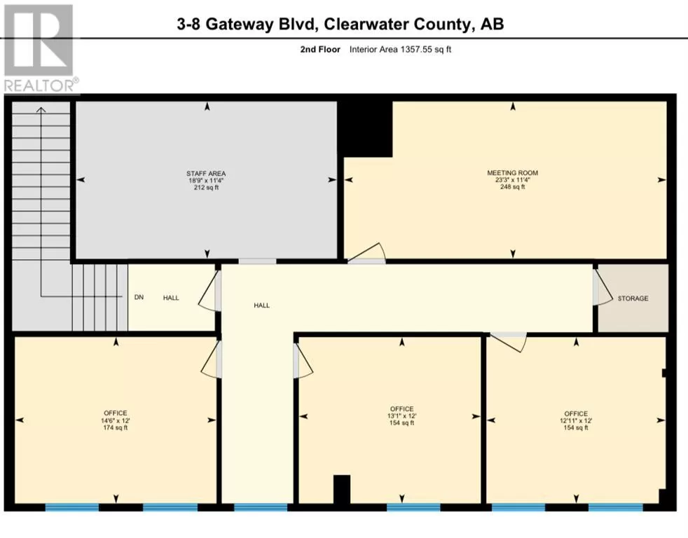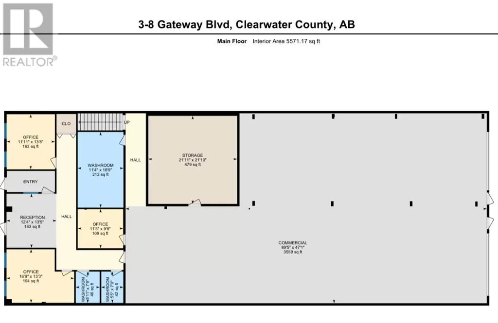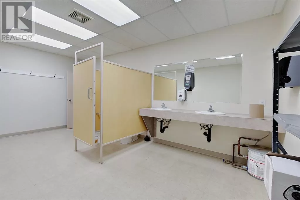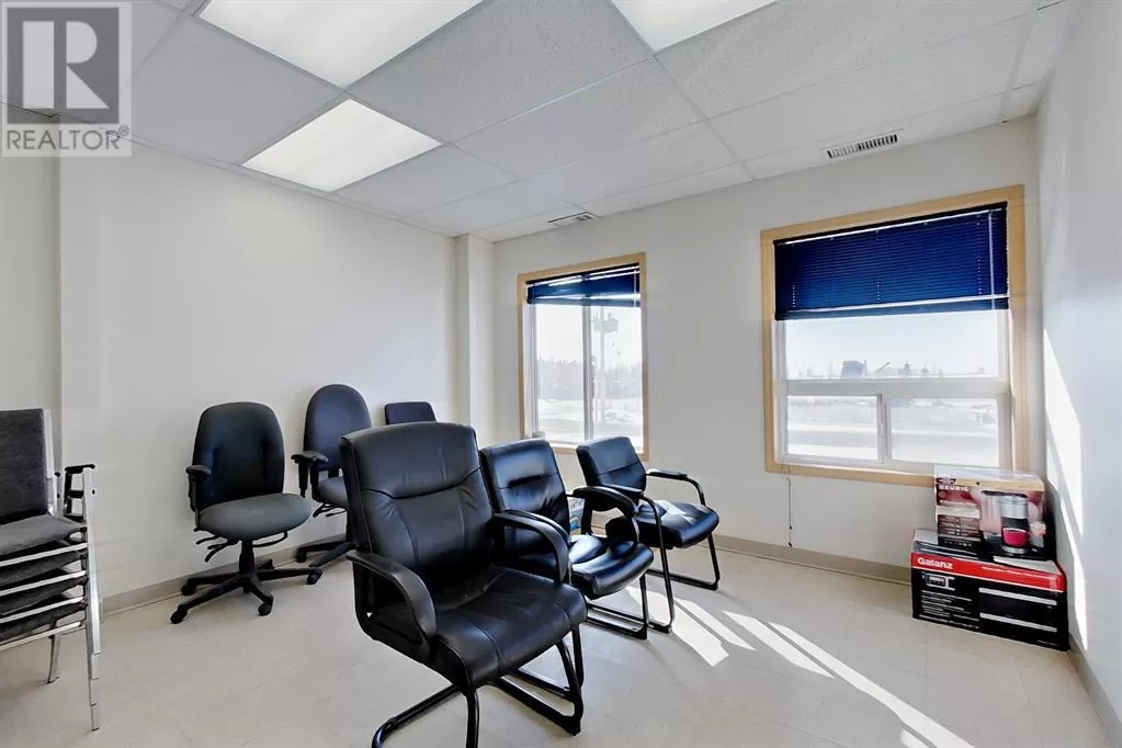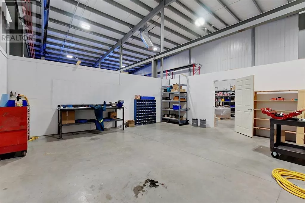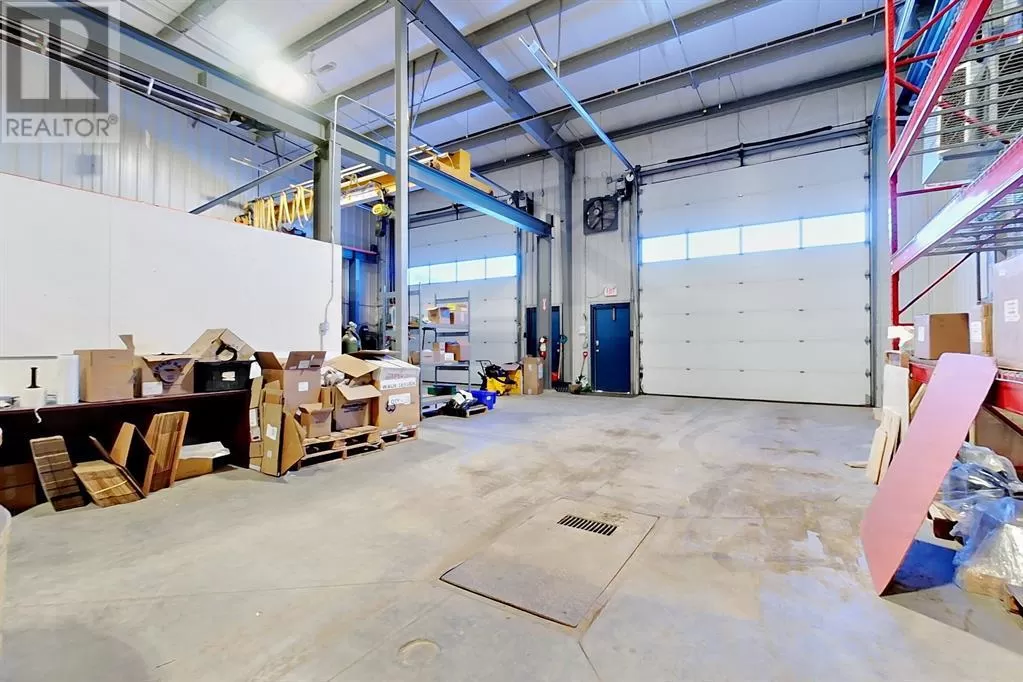 Industrial condo located in Gateway Industrial Park, just east of Rocky Mountain House. Just off Highway 11 with easy access and good visibility. End-unit with ample parking, outdoor has a side-gated storage space, at rear- bay is two 16X14 ft overhead doors, plus an approminate 20ft concrete apron. The shop has radiant heat ( one on the east and one on the west walls of shop). Extras include Makeup Air and metal clad walls in warehouse and forced air furnace with AC for the front office area and upper mezzanine. The developed mezzanine includes a large lunch room, conference room, and 3 offices. The main- floor office area includes a reception area, 2 offices, and 2 bathrooms. The main- shop area also includes a bathroom and shop change room. Main- floor footprint is 5,571SF ( with the shop being 4,695SF) plus the developed mezzanine being 1,357SF. HVAC for upstairs replaced 2022. Crane inspected in April 2025. (id:27476)