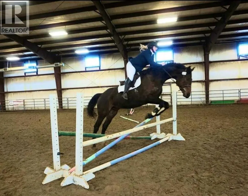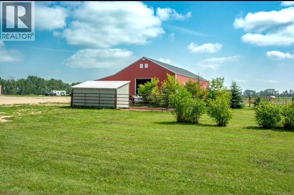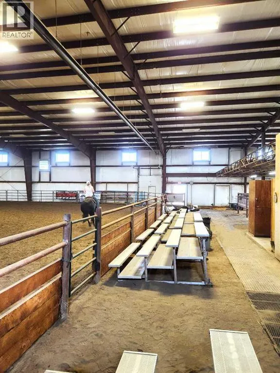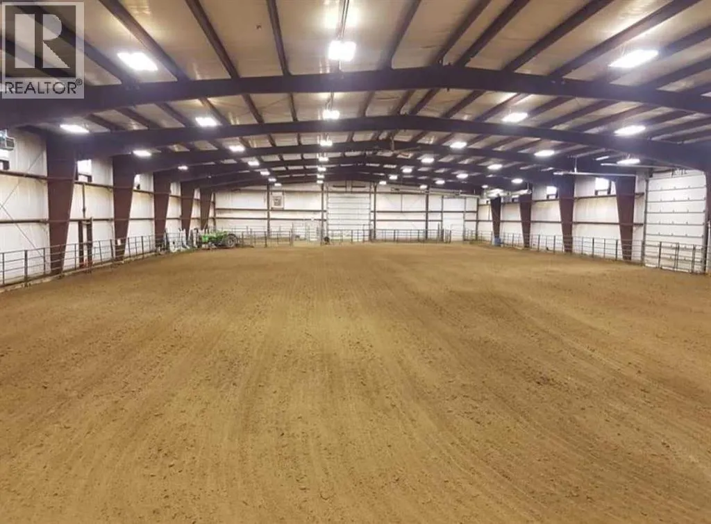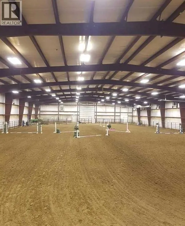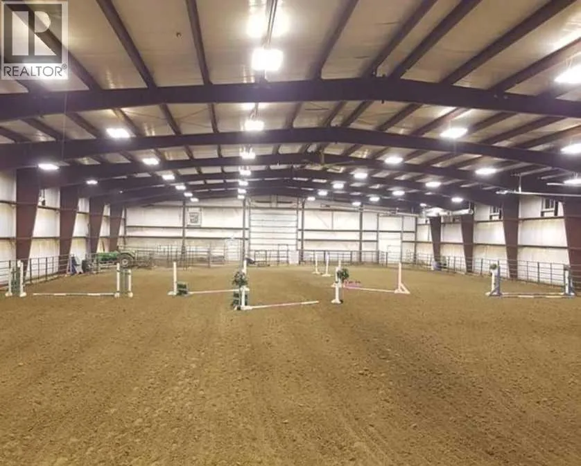 An exceptional Equestrian or Commercial facility on 138 acres, with 104 acres of productive hay land. Ideally located off paved Hwy 11 High Load Corridor & RR 5-4, just 32 mins W of Red Deer & Hwy 2, and 12 mins E of Rocky Mountain House.The 25,000 sq ft (100Ã250Ã20) engineered steel Arena, built in 2015, is heated, insulated, and event-ready, featuring large overhead doors, a temp-controlled wash bay, private tack room, staging areas, radiant heat, HRVs & industrial fans. Currently hosting income-producing eventsâreining, jumping, 4H,Gymkhana, ranch roping, clinics & boarding. Supported by 15 pens, 10 paddocks & 5 auto-waterers. The In-Floor heated Viewing Lounge has a kitchen & 2 accessible Bthrms.2022 Barn (84Ã36) with 12 stalls, enjoy auto-waterers, radiant heat & attached 14ft lean-to; 80Ã40 Hay/Equipment shed (2022) plus 8 pipe pens. Fully fenced & cross-fenced with 2 wells & 2 septic systems.Includes a 2013 Modular Home (1,520 sq ft, 4 bdrm) but can be excluded for a reduced price if you want to build your DREAM HOME. Beautifully landscaped with over 1,000 trees, mountain views & paved access on 2 sides. Twinning of Hwy 11 (2025) will strategically boost the value of this investment! Turnkey operation or private retreat option. See MLS A2193375 (Commercial Land & Buildings Only). (id:27476)