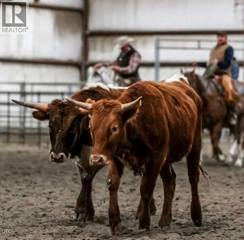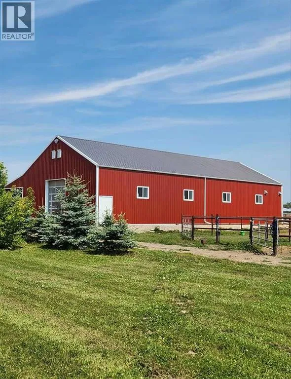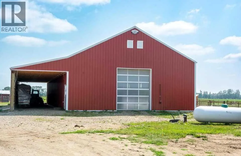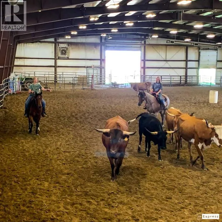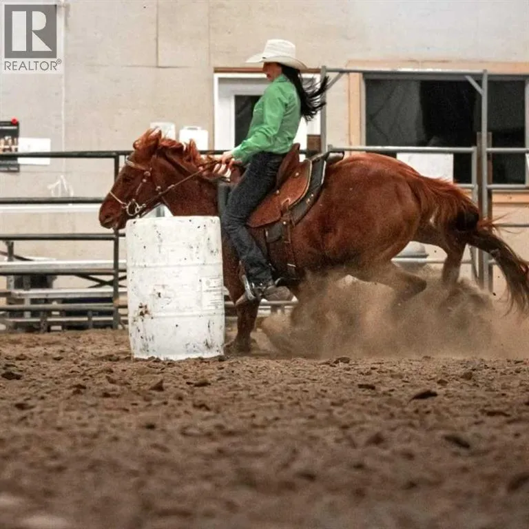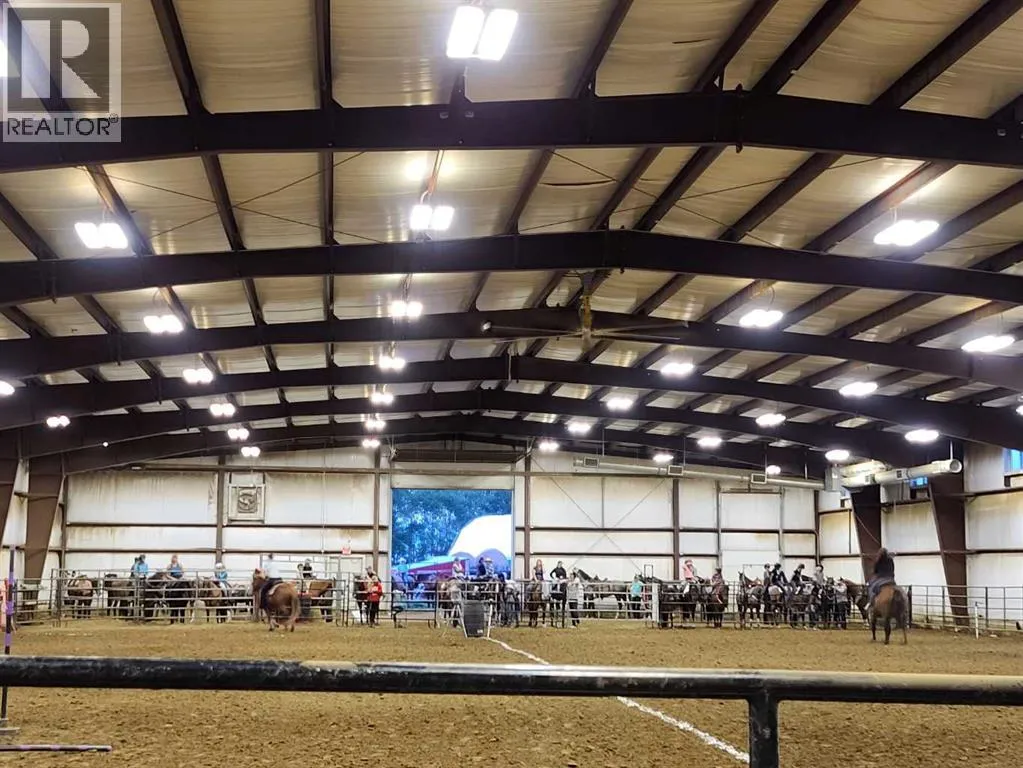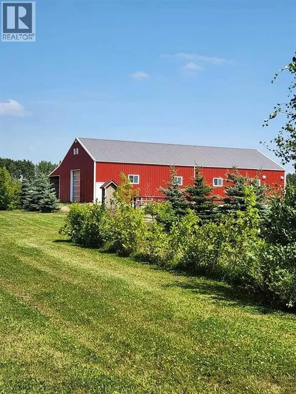 An exceptional Equestrian or Commercial facility on 138 acres, with 104 acres of productive hay land. Ideally located off paved Hwy 11 High Load Corridor & RR 5-4, just 32 mins W of Red Deer & Hwy 2, and 12 mins E of Rocky Mountain House.The 25,000 sq ft (100Ã250Ã20) engineered steel Arena, built in 2015, is heated, insulated, and event-ready, featuring large overhead doors, a temp-controlled wash bay, private tack room, staging areas, radiant heat, HRVs & industrial fans. Currently hosting income-producing eventsâreining, jumping, 4H,Gymkhana, ranch roping, clinics & boarding. Supported by 15 pens, 10 paddocks & 5 auto-waterers. The In-Floor heated Viewing Lounge has a kitchen & 2 accessible Bthrms.2022 Barn (84Ã36) with 12 stalls, enjoy auto-waterers, radiant heat & attached 14ft lean-to; 80Ã40 Hay/Equipment shed (2022) plus 8 pipe pens. Fully fenced & cross-fenced with 2 wells & 2 septic systems.Includes a 2013 Modular Home (1,520 sq ft, 4 bdrm) but can be excluded for a reduced price if you want to build your DREAM HOME. Beautifully landscaped with over 1,000 trees, mountain views & paved access on 2 sides. Twinning of Hwy 11 (2025) will strategically boost the value of this investment! Turnkey operation or private retreat option. See MLS A2193375 (Commercial Land & Buildings Only). (id:27476)
