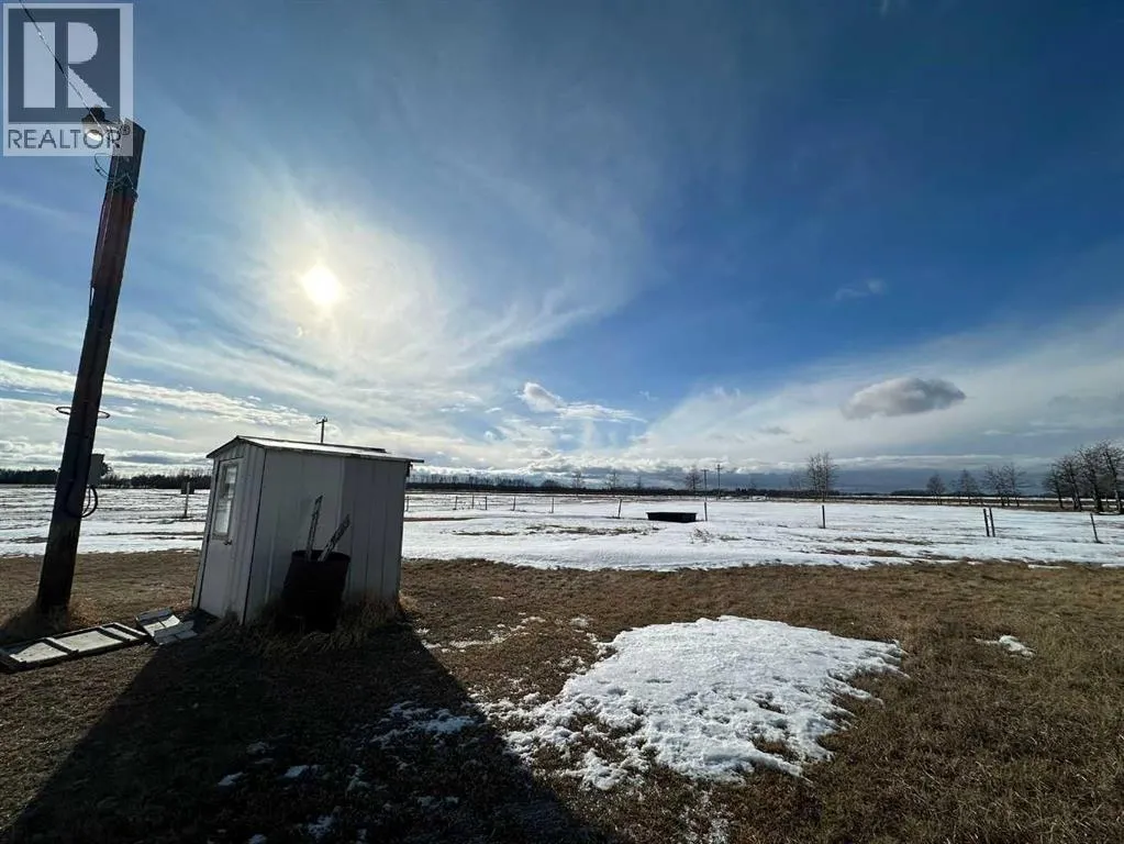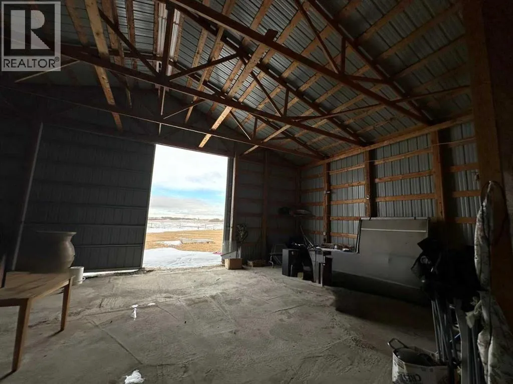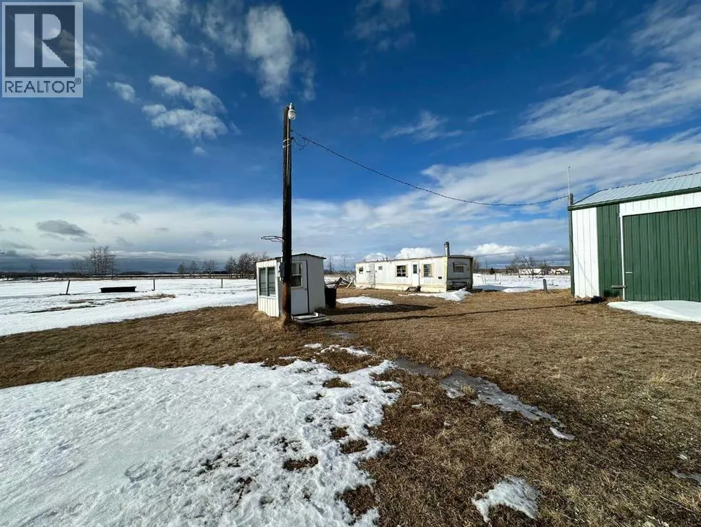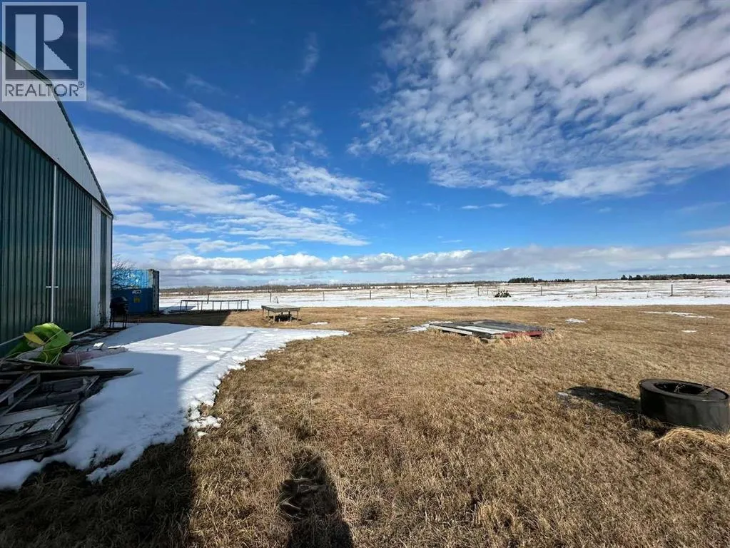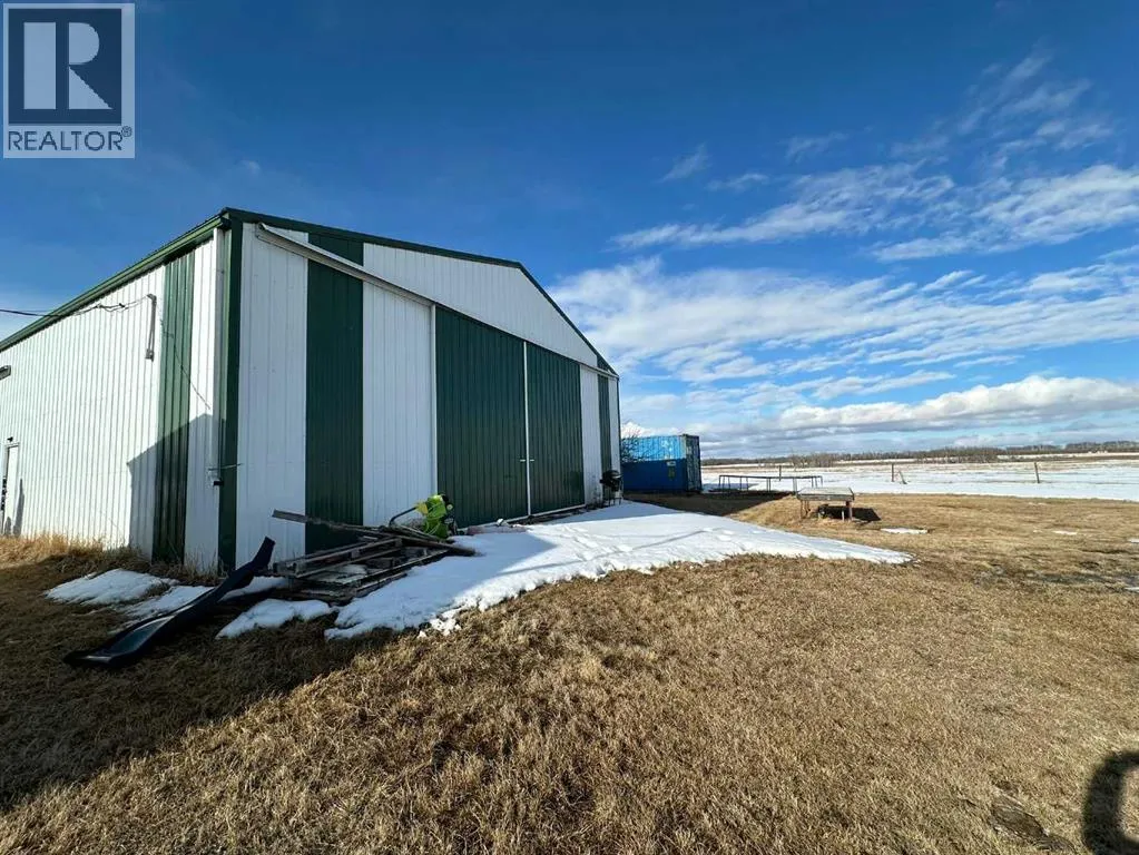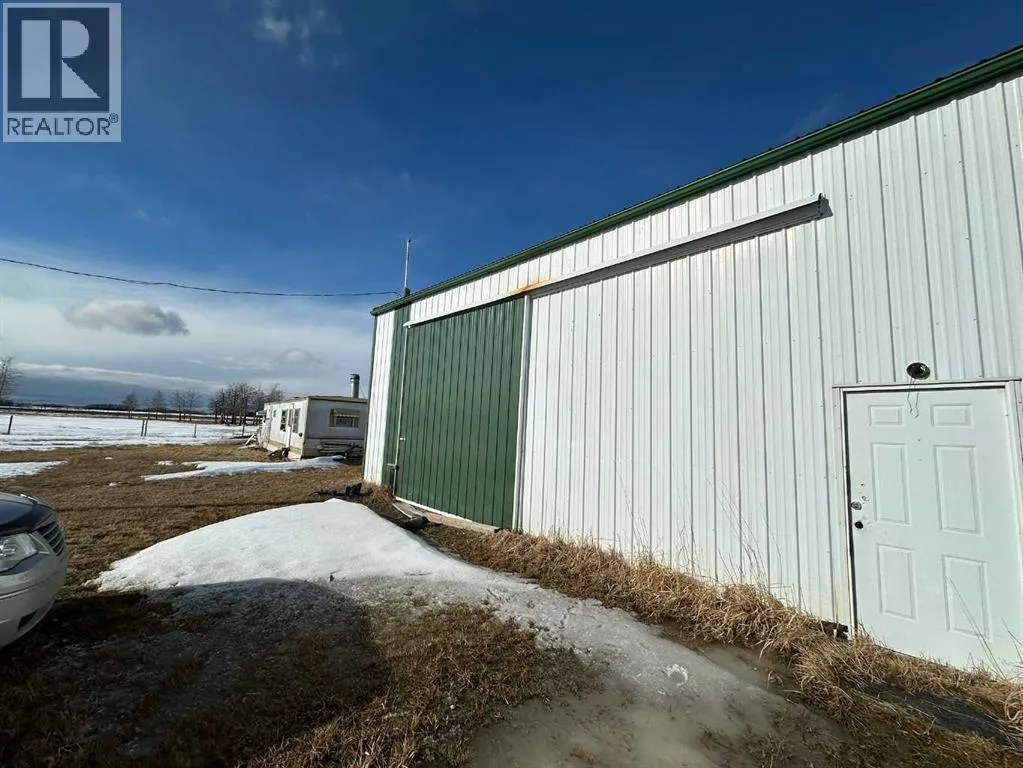Located along Highway 11 with excellent visibility, this 154-acre mixed farming property offers significant future commercial development potential. The land features a combination of open fields and mature trees, along with a single-wide mobile home and an additional serviced site. A large, newer metal shop is also on the property, divided into two sections: the east side measures 24x40 with a 14 ft high by 19.6 ft wide overhead door, while the west side is 36x40 with a 12 ft high by 11.6 ft wide door. The shop includes cement floors, 220 power, and a 2-piece bathroom. This property also generates solid annual income with \$7,000 from oil revenue, \$5000 from a land lease, and \$2000 from a gas lease. A rare opportunity in a prime location with strong investment potential. (id:27476)