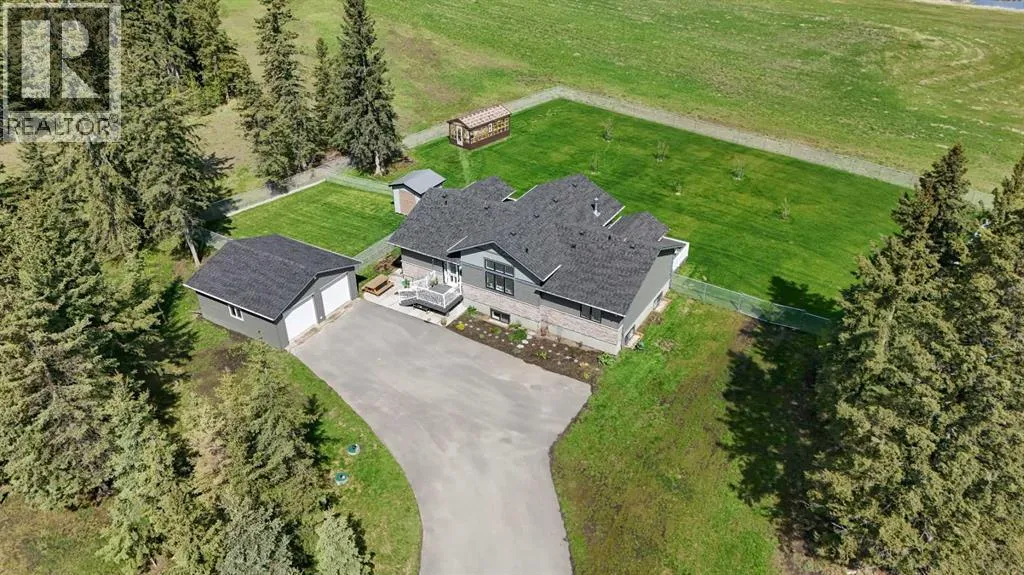 A peaceful place to call homeâjust 9 minutes from Rocky Mountain House. Built in 2023, this lovely property sits on nearly a full acre of land (0.94 acres), offering space, privacy, and comfort in a quiet setting.Inside, youâll find 3 bedrooms and 2 bathrooms, with an open floor plan and high ceilings that give the home a bright, airy feel. The fully fenced backyard is perfect for pets and kids and includes a dog run for added convenience.Thereâs plenty of room for hobbies and storage with a 2-car detached garage, greenhouse, and shed. The home also features a reverse osmosis system, water softener, and chlorine remover, so you can enjoy fresh, clean water every day.A home inspection was completed in 2024, and the new home warranty is still in placeâeverything feels fresh and well cared for. The basement offers high ceilings and lots of storage space, giving you room to grow or create the space you need.This property is ready for you to move in and make it your ownâa peaceful retreat with all the comforts of a newer home. (id:27476)
