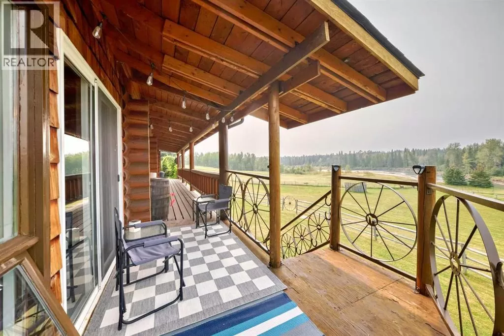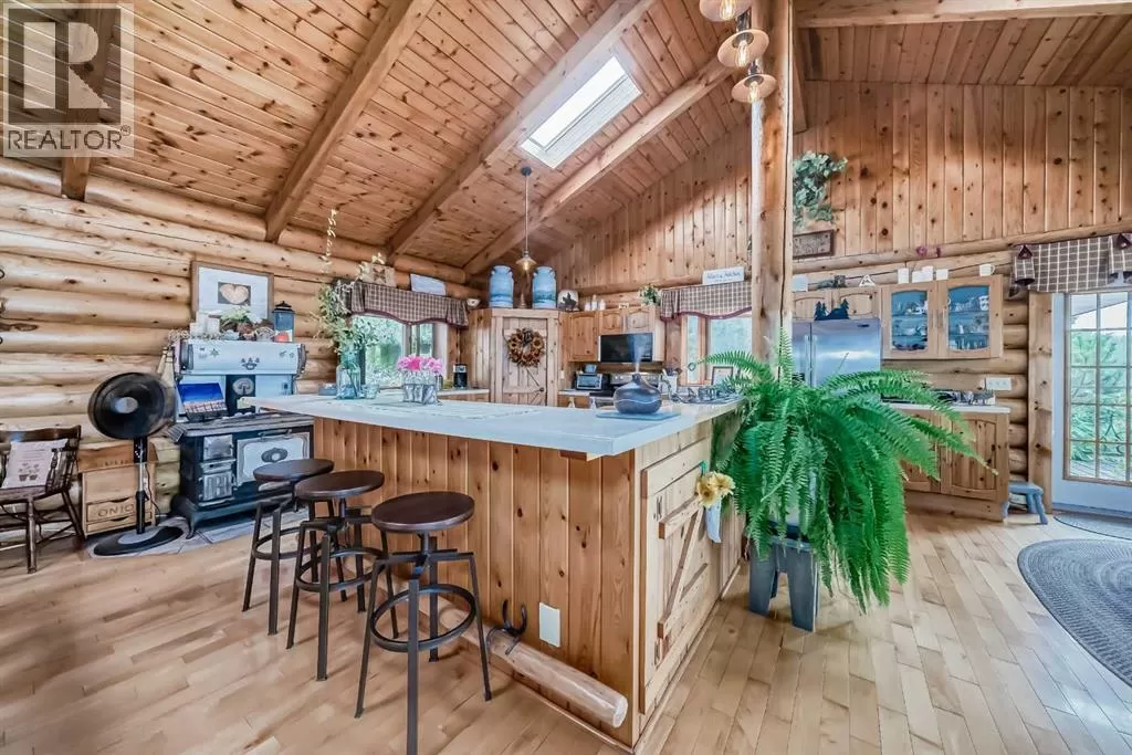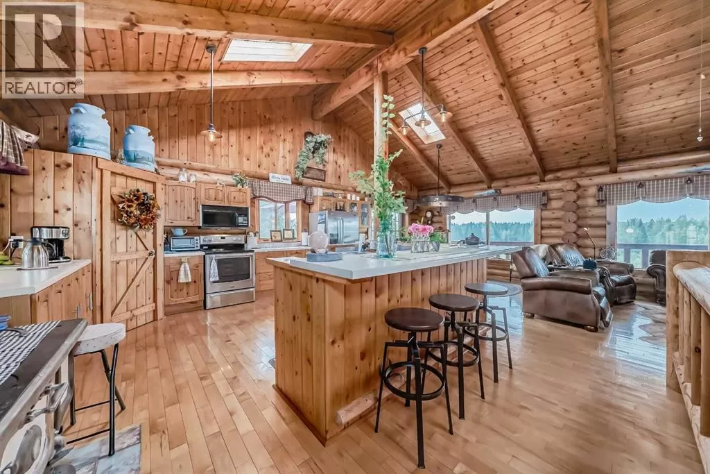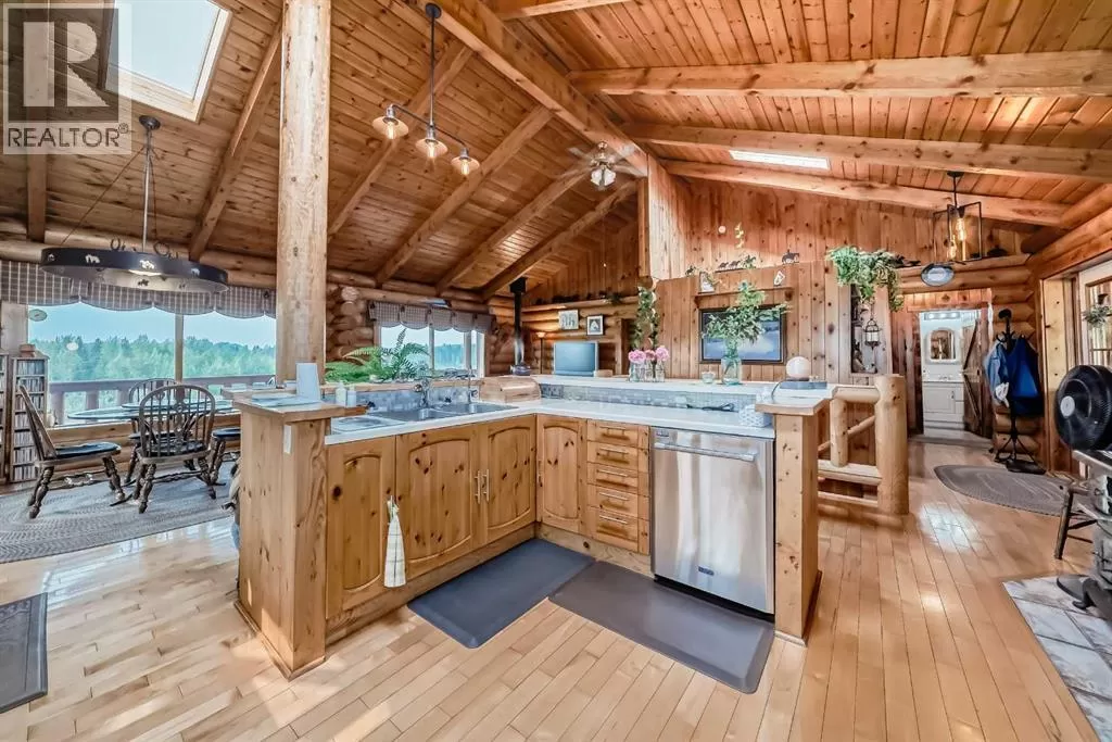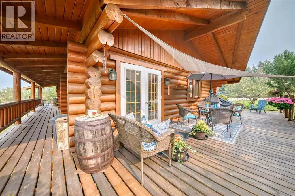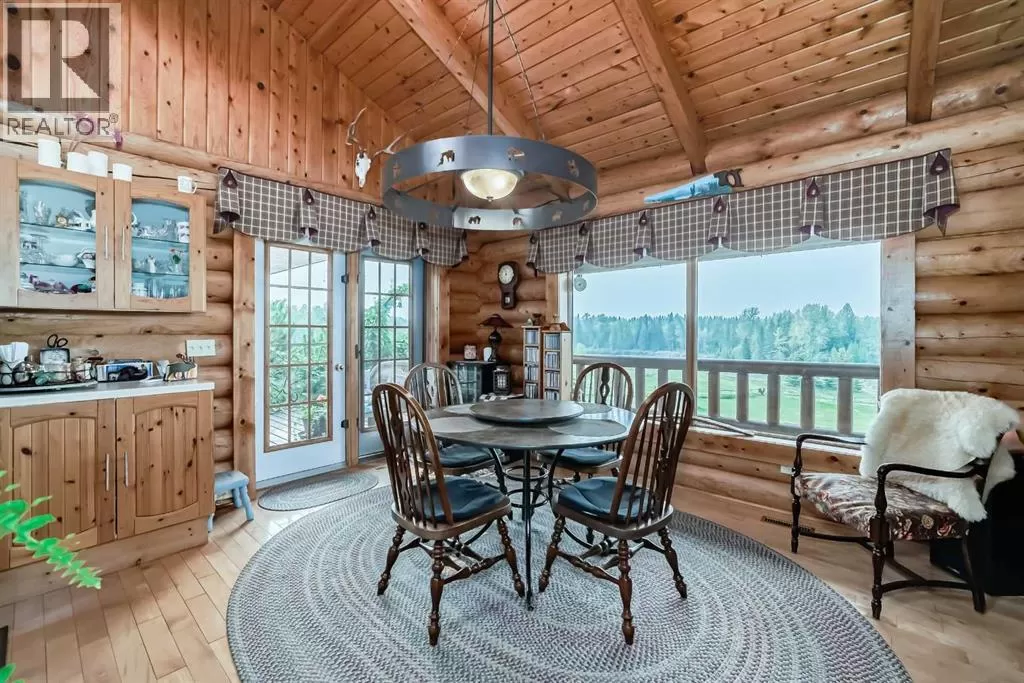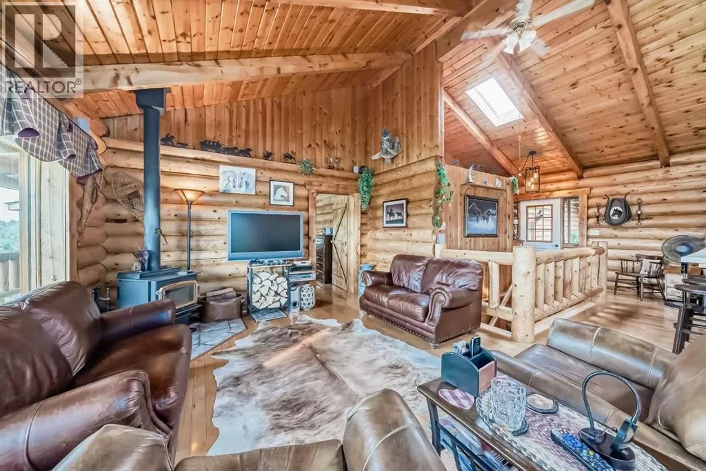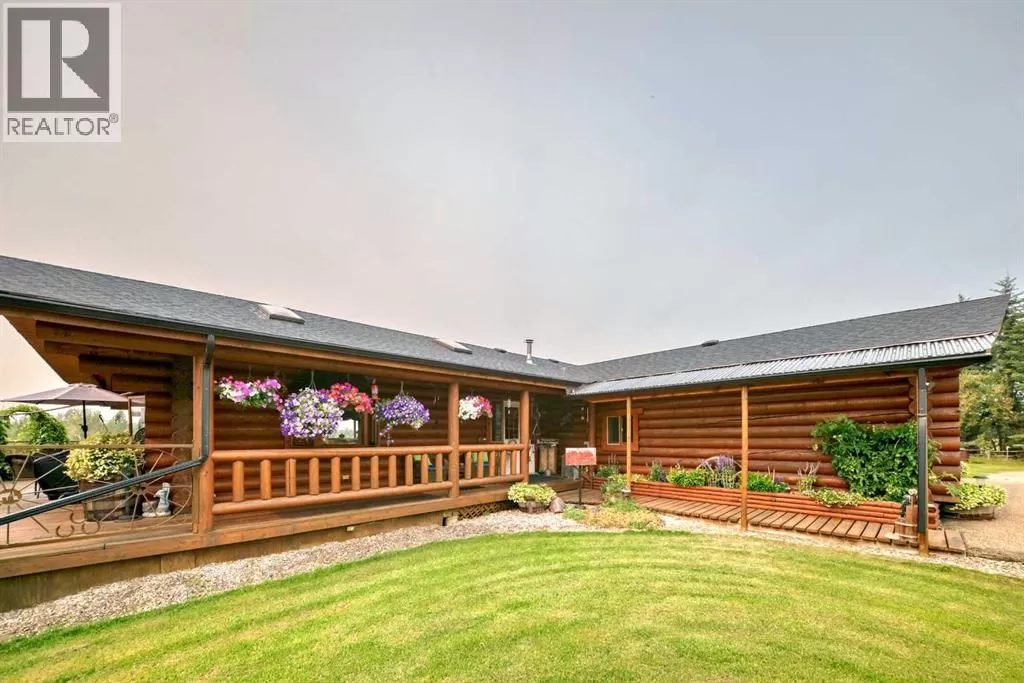 There won't be a moment that you won't say "wow" to this award winning acreage when you drive into this sensational property located on pavement at the end of a dead end road close to Rocky Mountain House and Caroline. Nestled within the trees, this beautiful log bungalow has "Welcome": written all over it. From the exceptional landscaping, to the outdoor amenities to the one in a million view of the Clearwater River, this hand crafted log home has been exceptionally built and maintained. The wrap around deck and covered porch leads you into the main living space with a central kitchen area complete with corner pantry and an eating bar for your family to gather for those special events. The living room with woodstove invites you to cozy up for the evening and the convenience of your primary bedroom on main floor shares a luxurious ensuite with a claw tub and heated floors. The sunroom/reading room is located directly off the primary bedroom. The downstairs walkout houses 3 bedrooms a large family room with wet bar and both storage and a cold room. Not enough can be said about the parking as there is a heated double attached garage along with a 16 x 48 motorhome garage, and a combination of shop areas which are 8x24,12x32,14x32,24x32 and 32x32 and 8x14. There is a hayshed, gazebo, fruit trees, grassed pastureland and access to the river. Animal friendly property that has been fenced complete with water bowl. This is one of those properties that needs to be seen to truly be appreciated. (id:27476)