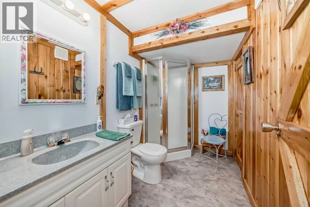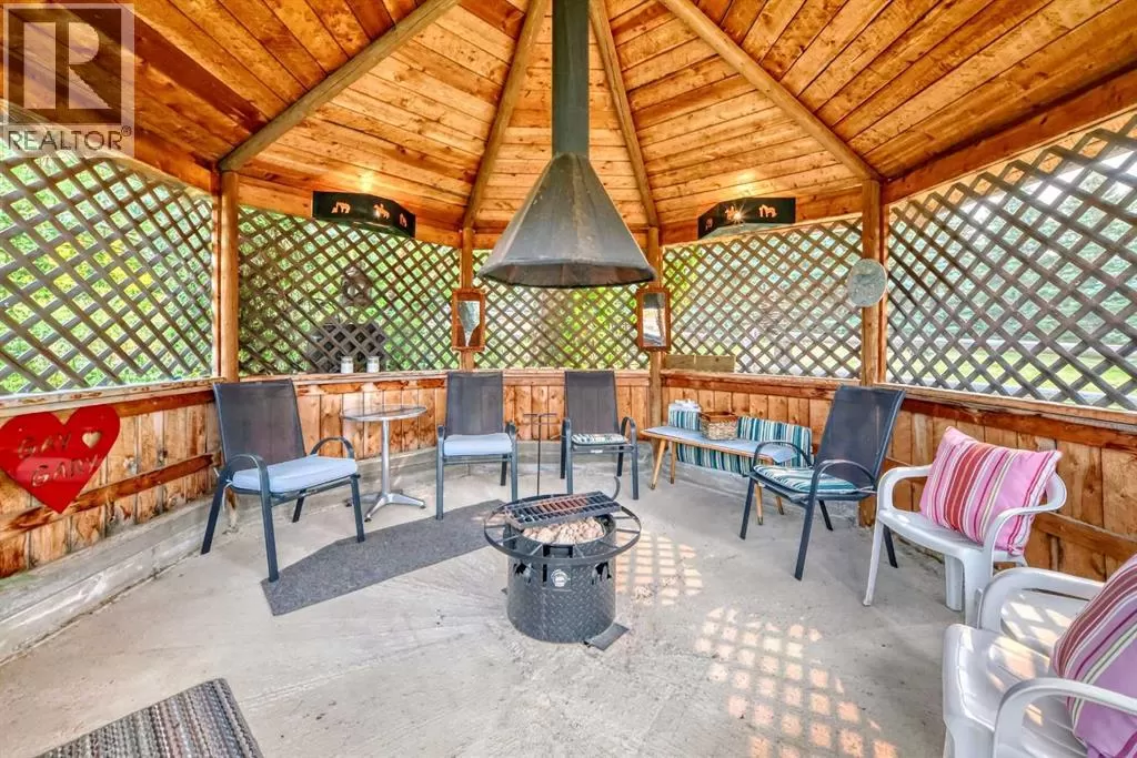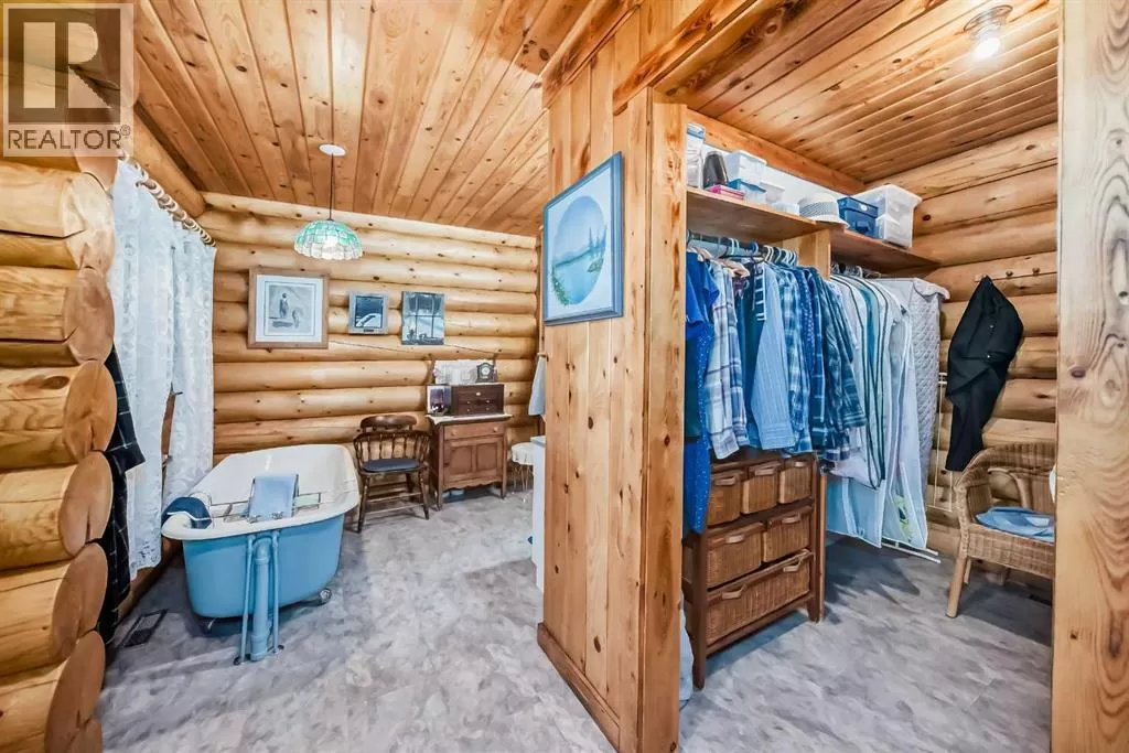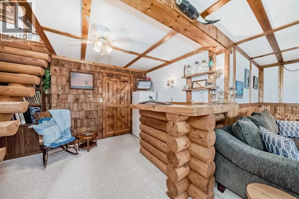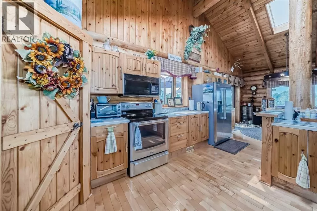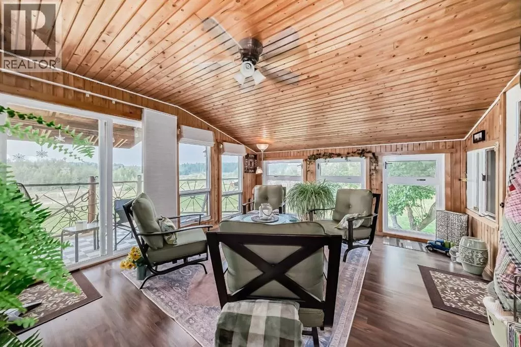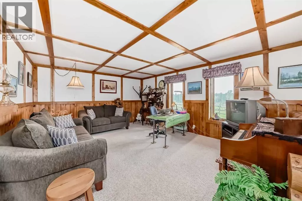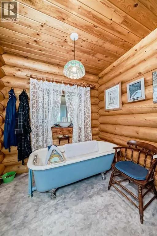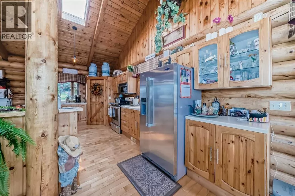There won't be a moment that you won't say "wow" to this award winning acreage when you drive into this sensational property located on pavement at the end of a dead end road close to Rocky Mountain House and Caroline. Nestled within the trees, this beautiful log bungalow has "Welcome": written all over it. From the exceptional landscaping, to the outdoor amenities to the one in a million view of the Clearwater River, this hand crafted log home has been exceptionally built and maintained. The wrap around deck and covered porch leads you into the main living space with a central kitchen area complete with corner pantry and an eating bar for your family to gather for those special events. The living room with woodstove invites you to cozy up for the evening and the convenience of your primary bedroom on main floor shares a luxurious ensuite with a claw tub and heated floors. The sunroom/reading room is located directly off the primary bedroom. The downstairs walkout houses 3 bedrooms a large family room with wet bar and both storage and a cold room. Not enough can be said about the parking as there is a heated double attached garage along with a 16 x 48 motorhome garage, and a combination of shop areas which are 8x24,12x32,14x32,24x32 and 32x32 and 8x14. There is a hayshed, gazebo, fruit trees, grassed pastureland and access to the river. Animal friendly property that has been fenced complete with water bowl. This is one of those properties that needs to be seen to truly be appreciated. (id:27476)