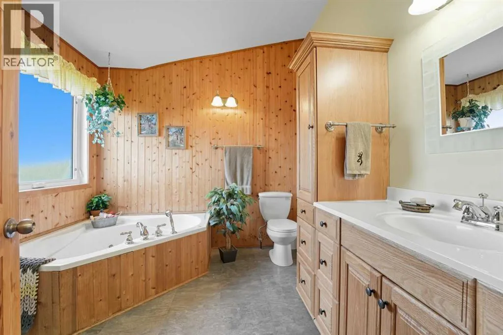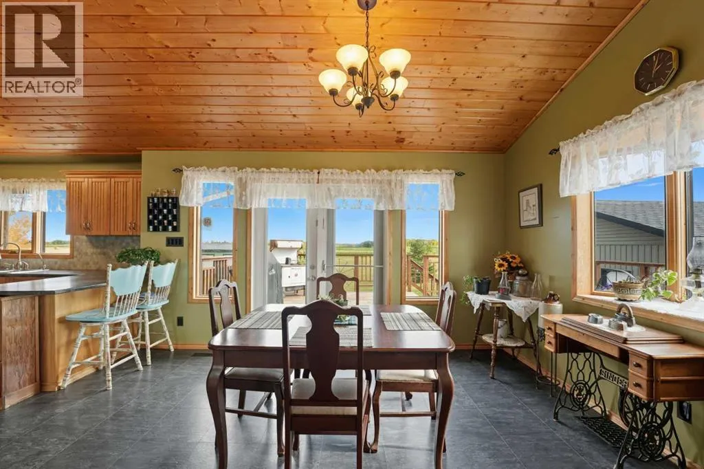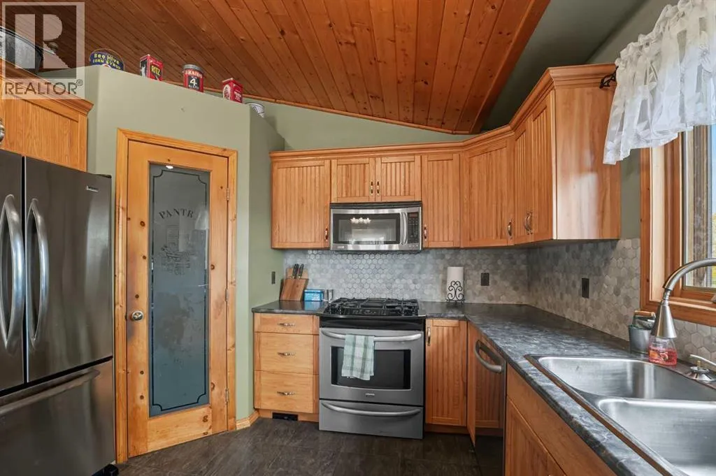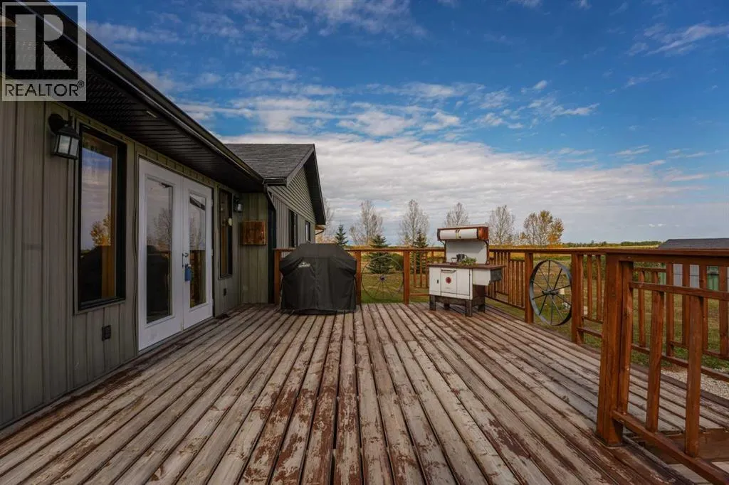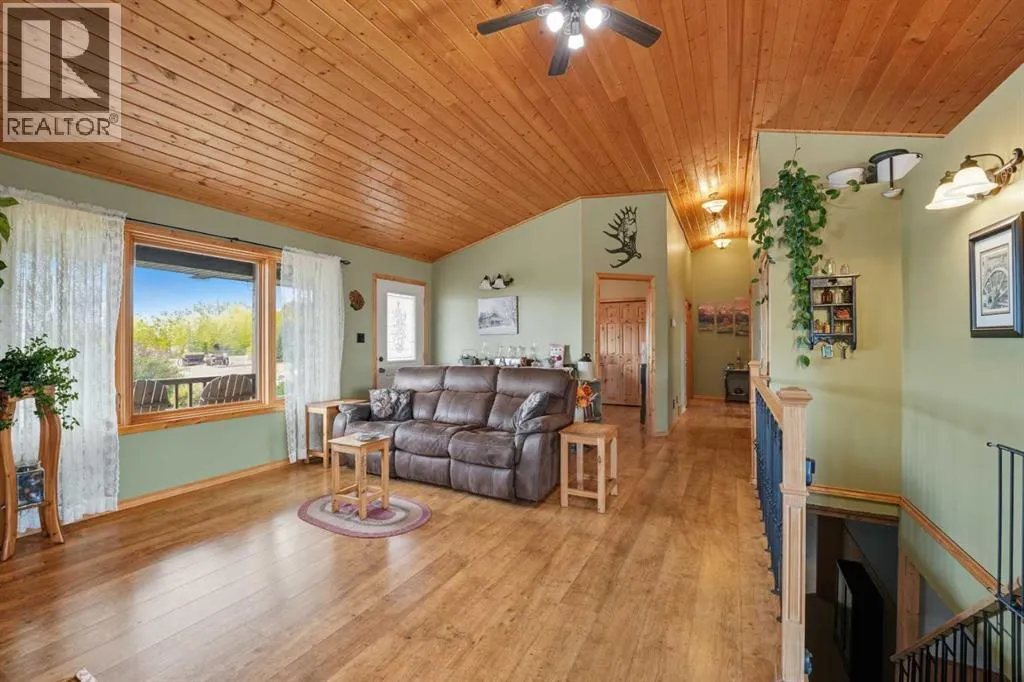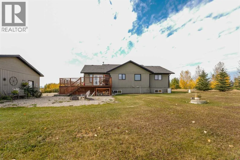 Welcome to 374037 Range Road 6-0 â a spacious country home seated on 4.98 acres. Offering 5 bedrooms and 3 bathrooms on a beautiful open property. Walk inside and youâll notice the stunning pine ceilings and open concept floorplan. The bright kitchen features hickory cabinets, stainless steel appliances, including a gas range, and a great L shaped peninsula with seating. The dining room opens through French doors onto the spacious deck. The main level is includes 3 bedrooms, 2 full baths, a convenient laundry room, and pantry. The partially finished basement adds 2 more bedrooms, a full bath, a large rec room, and plenty of storage space. Step outside to enjoy the expansive backyard with a deck perfect for relaxing or entertaining. The oversized detached double garage has 10 ft walls, electric doors, separate access to each side, and is heated on the workshop side. The property also includes a greenhouse, large shed, and ample RV parking. A perfect blend of rural living and functional space â donât miss this opportunity! (id:27476)
