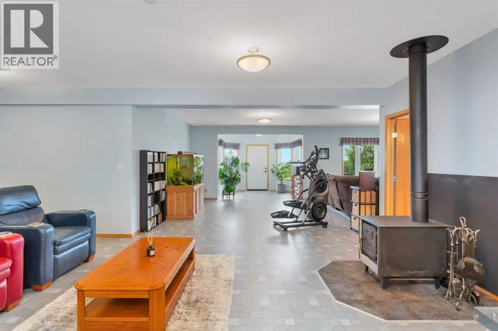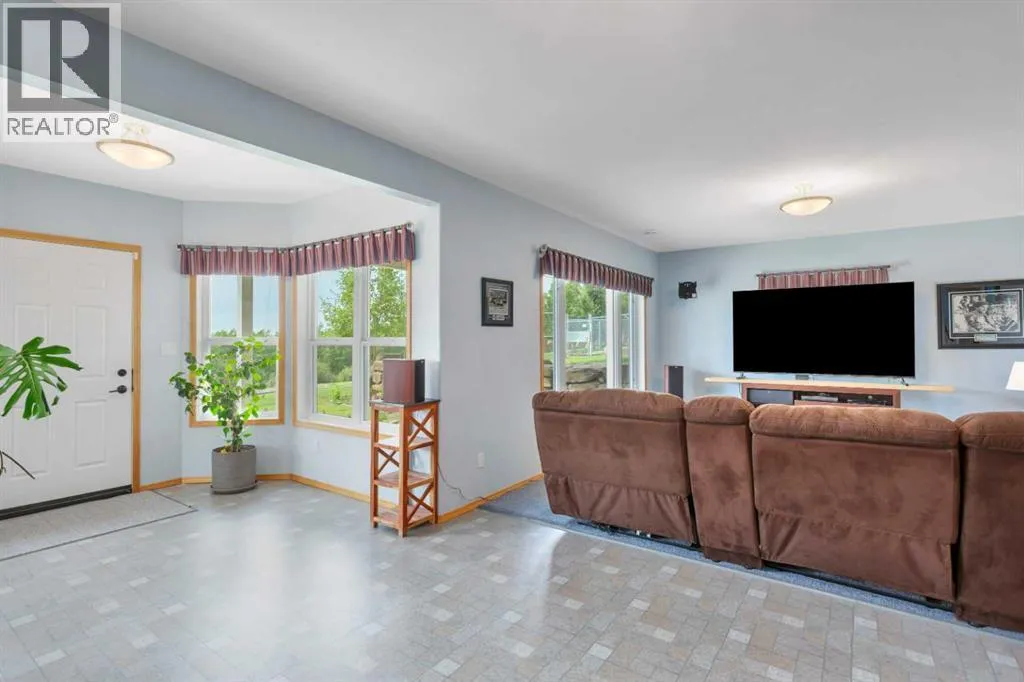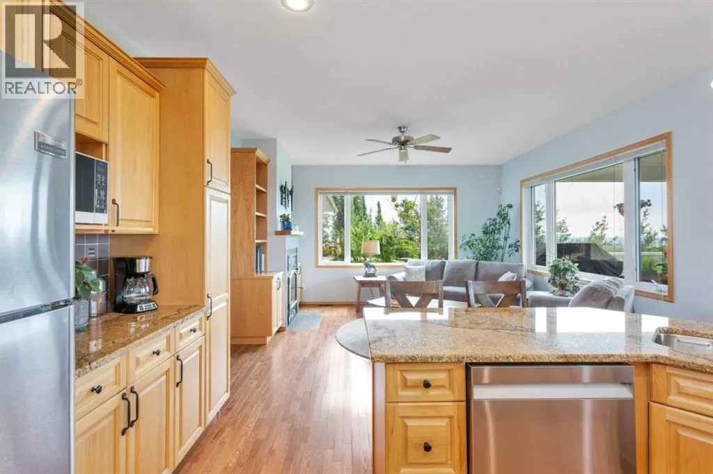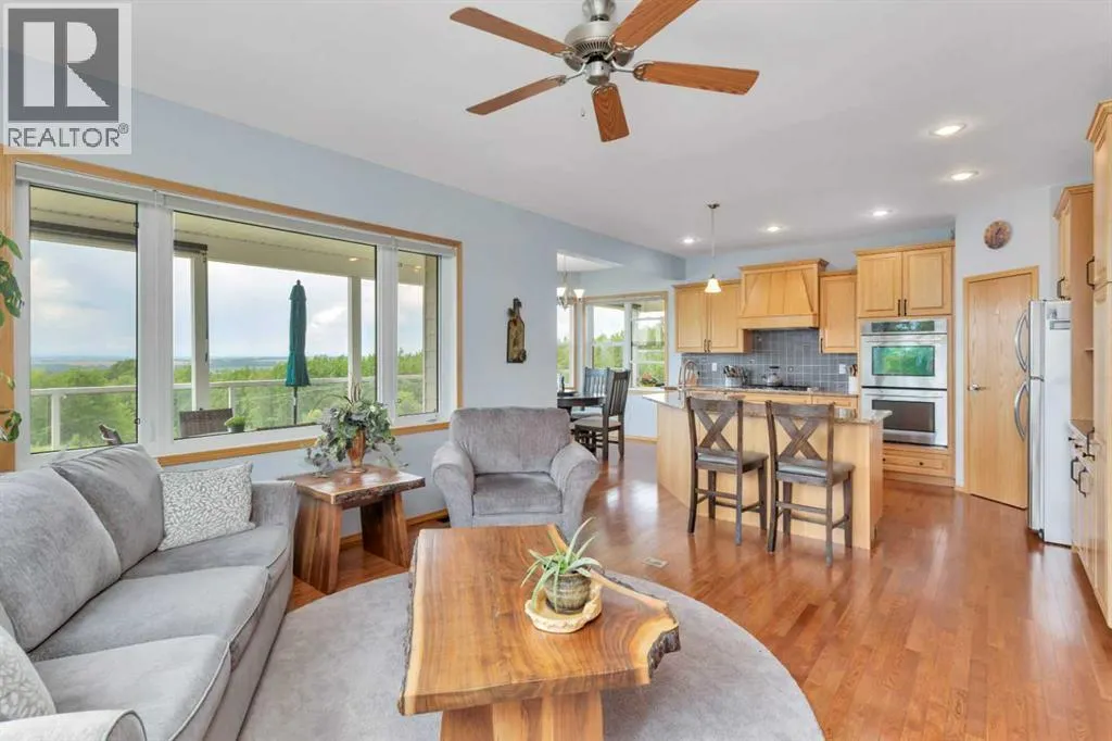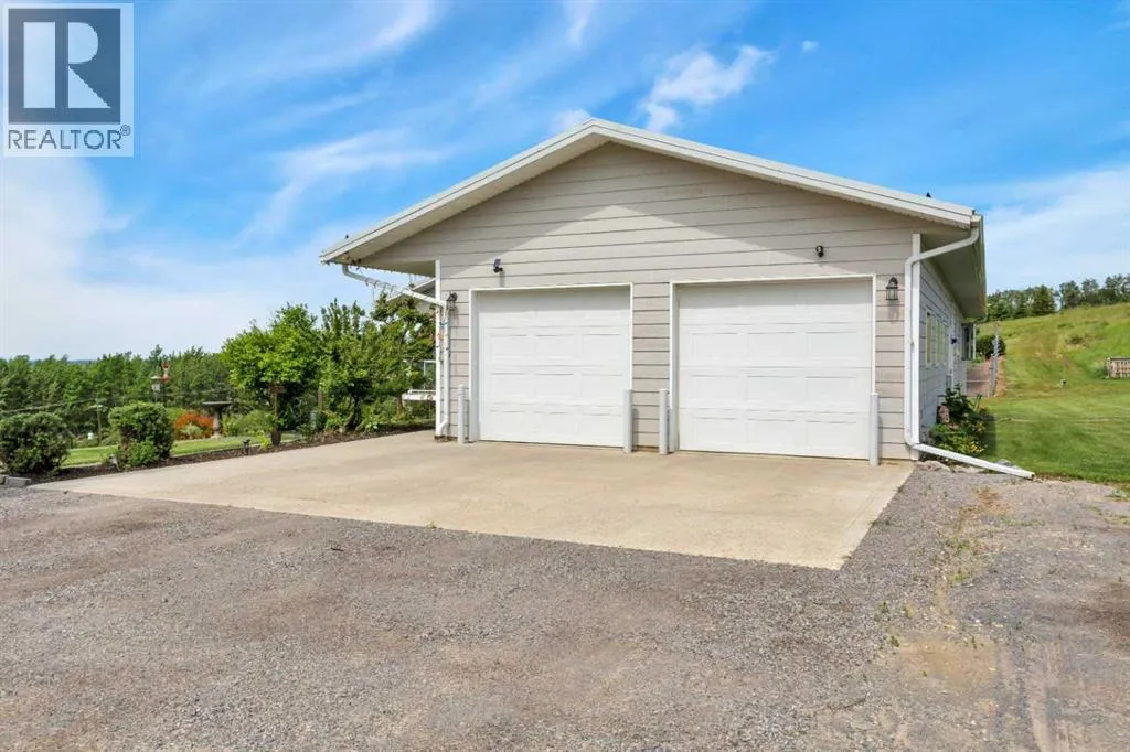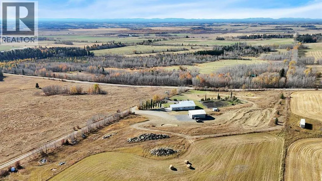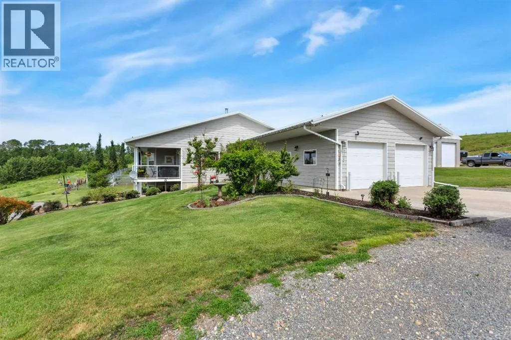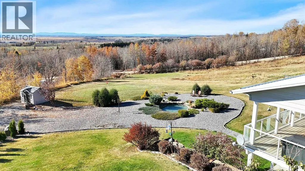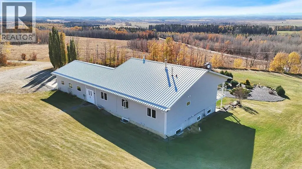 Welcome to rural Clearwater Countyâan unbeatable location just 20 minutes northeast of Rocky Mountain House, AB, and only 11.5 km northwest of Leslieville. This stunning property offers 7.09 acres of land, providing ample space to embrace peaceful country living, all with breathtaking mountain views that are hard to match.This spacious 1,950 sq ft walkout bungalow is thoughtfully designed to elevate your lifestyle. With five generously sized bedrooms and three bathrooms, it offers plenty of room for family and guests. The open-concept main living area features a warm and welcoming living room, a beautifully appointed kitchen, a casual dining nook, plus a formal dining areaâideal for both everyday living and entertaining.The home is built for convenience, offering main-floor living that includes a dedicated home office and laundry room, plus the potential to add an elevator, making it suitable for those with mobility needs or future accessibility planning.The kitchen is a dream for any home chef, featuring elegant granite countertops, a central island with a double sink and bar seating, and top-of-the-line stainless steel appliancesâincluding a double wall oven. Rich, solid wood cabinetry provides ample storage, while the open layout seamlessly connects the kitchen to the living and dining areas.Comfort is a priority with two woodstovesâone in the main family room on the main floor and a second in the basement. Additionally, the basement features in-floor heating, providing cozy warmth throughout the lower level.Retreat to the bright and airy primary bedroom, where large picture windows frame the rolling landscapeâperfect for waking up to stunning views every morning.Outdoors, the property continues to impress with a beautifully enclosed garden area featuring vegetables, flowers, and a small orchardâideal for those looking to enjoy homegrown produce and natural beauty throughout the seasons. For all your storage, workshop, or hobby needs, there are two detached garages: one measuring 24' x 30' and the other a spacious 32' x 42'.This move-in-ready home also features a low-maintenance exterior with durable Hardie board siding, a long-lasting metal roof, and aluminum deck railings, offering both peace of mind and timeless curb appeal. A rare blend of comfort, functionality, and breathtaking natural beauty awaits you in this exceptional Clearwater County home. (id:27476)