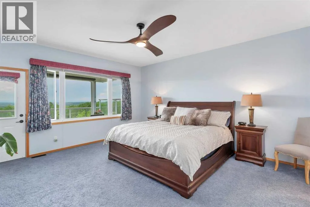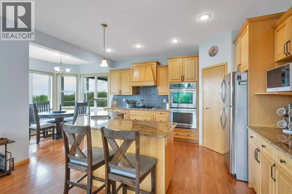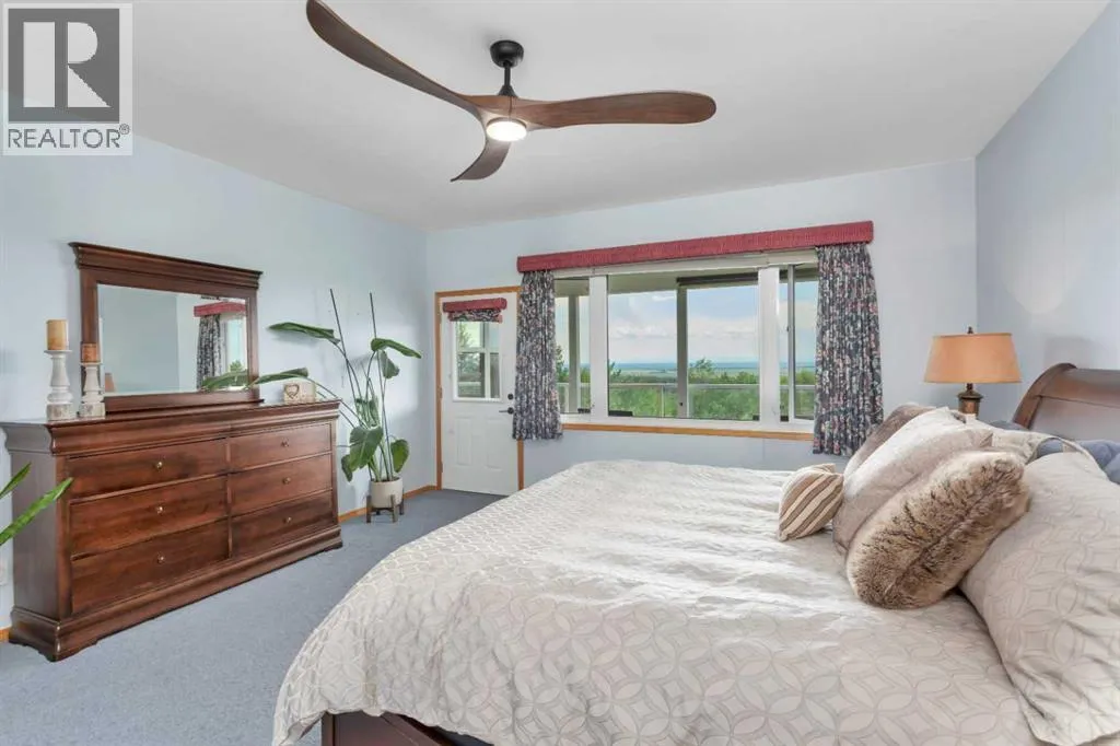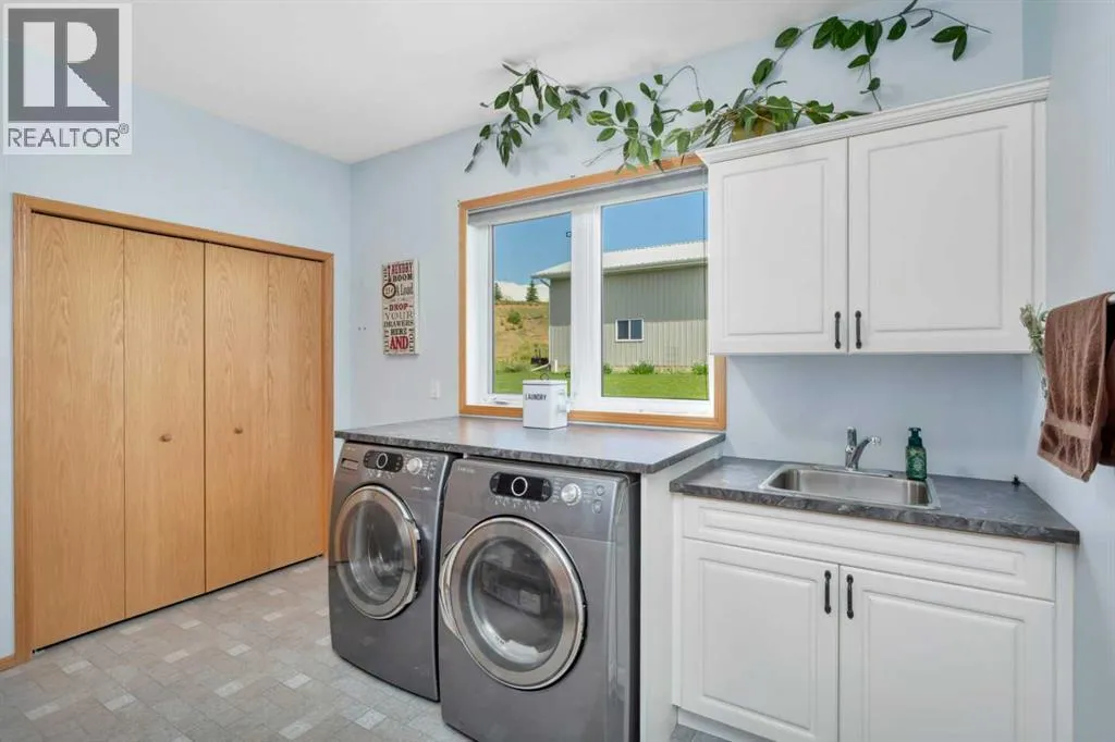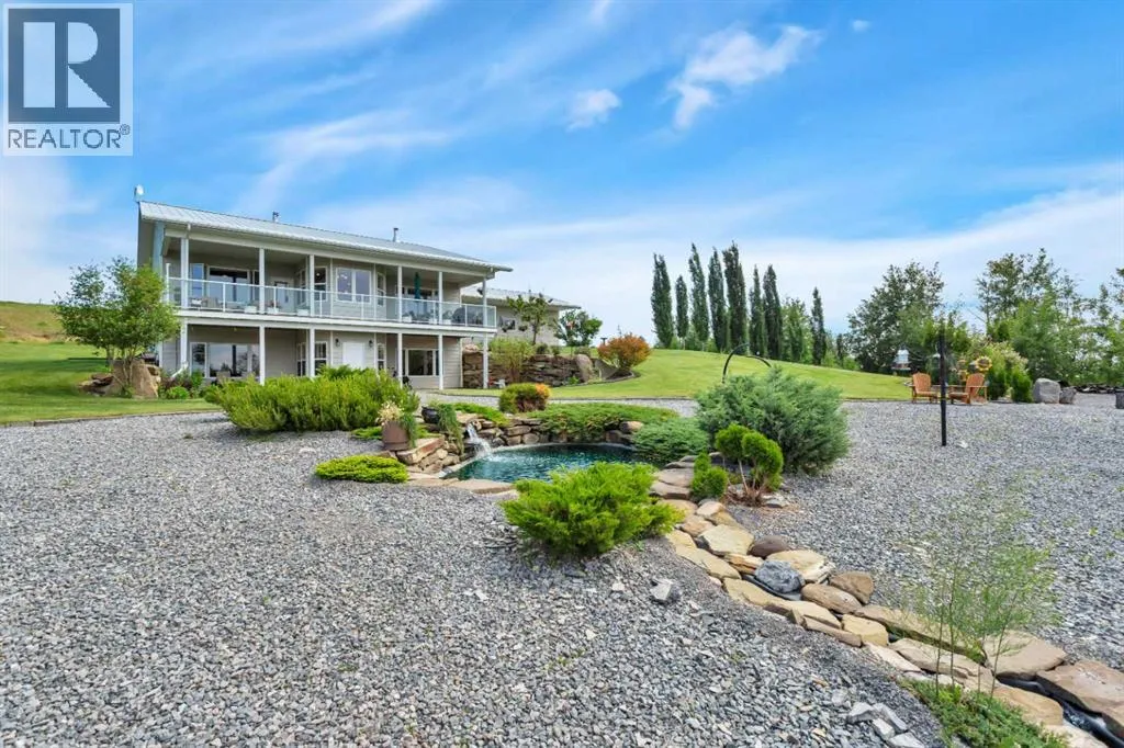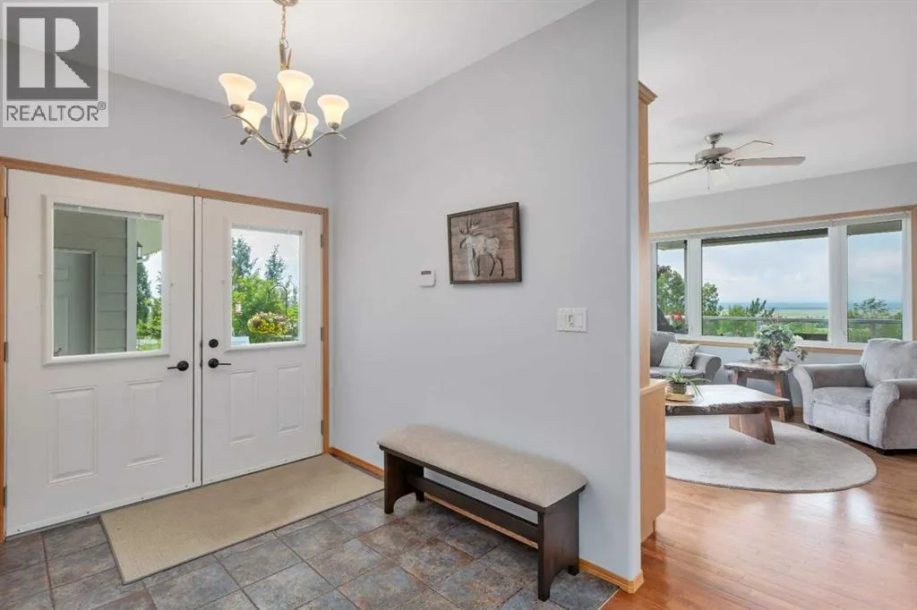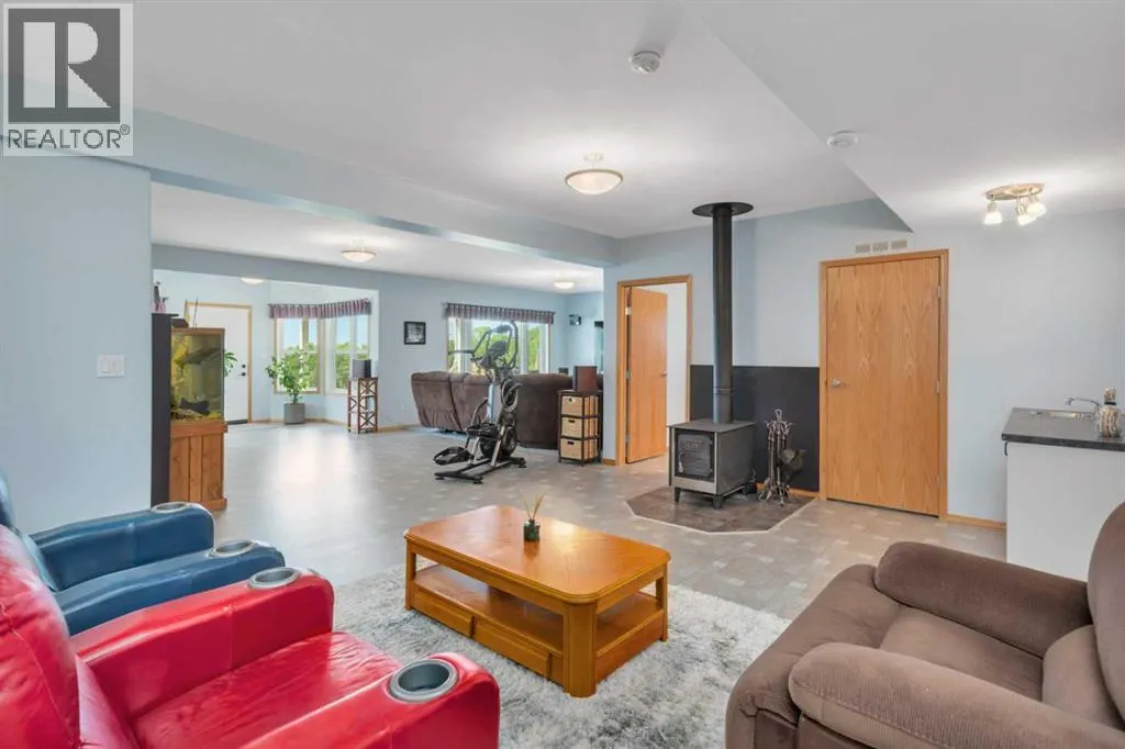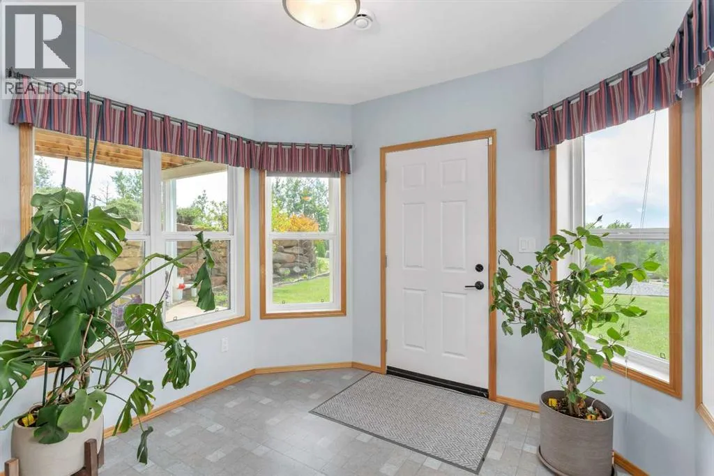 Welcome to rural Clearwater Countyâan unbeatable location just 20 minutes northeast of Rocky Mountain House, AB, and only 11.5 km northwest of Leslieville. This stunning property offers 7.09 acres of land, providing ample space to embrace peaceful country living, all with breathtaking mountain views that are hard to match.This spacious 1,950 sq ft walkout bungalow is thoughtfully designed to elevate your lifestyle. With five generously sized bedrooms and three bathrooms, it offers plenty of room for family and guests. The open-concept main living area features a warm and welcoming living room, a beautifully appointed kitchen, a casual dining nook, plus a formal dining areaâideal for both everyday living and entertaining.The home is built for convenience, offering main-floor living that includes a dedicated home office and laundry room, plus the potential to add an elevator, making it suitable for those with mobility needs or future accessibility planning.The kitchen is a dream for any home chef, featuring elegant granite countertops, a central island with a double sink and bar seating, and top-of-the-line stainless steel appliancesâincluding a double wall oven. Rich, solid wood cabinetry provides ample storage, while the open layout seamlessly connects the kitchen to the living and dining areas.Comfort is a priority with two woodstovesâone in the main family room on the main floor and a second in the basement. Additionally, the basement features in-floor heating, providing cozy warmth throughout the lower level.Retreat to the bright and airy primary bedroom, where large picture windows frame the rolling landscapeâperfect for waking up to stunning views every morning.Outdoors, the property continues to impress with a beautifully enclosed garden area featuring vegetables, flowers, and a small orchardâideal for those looking to enjoy homegrown produce and natural beauty throughout the seasons. For all your storage, workshop, or hobby needs, there are two detached garages: one measuring 24' x 30' and the other a spacious 32' x 42'.This move-in-ready home also features a low-maintenance exterior with durable Hardie board siding, a long-lasting metal roof, and aluminum deck railings, offering both peace of mind and timeless curb appeal. A rare blend of comfort, functionality, and breathtaking natural beauty awaits you in this exceptional Clearwater County home. (id:27476)