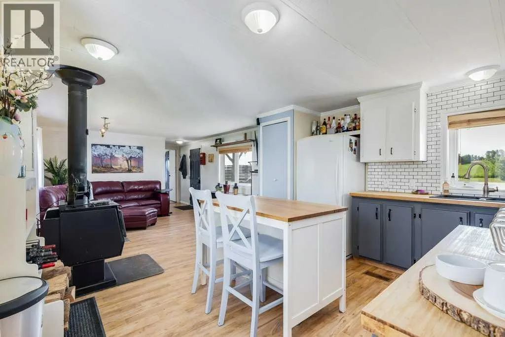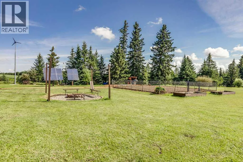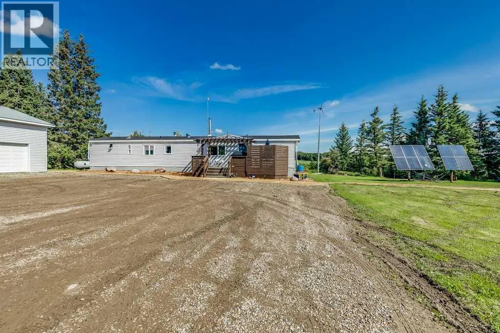 Welcome to your own off-grid haven, where self-sufficient living meets everyday comfort on nearly 7 acres of private, tree-lined land at the end of a quiet dead-end road. Perfectly positioned to embrace country living & sustainability, this unique property is powered by solar, wind & propane, with a new Generac generator & wiring for a backup portable generator. The solar system has been updated with remote access & automated to run only when the new agm batteries need recharging. Solar lighting is installed throughout the property & high-speed internet ensures youâre always connected, even in the heart of nature. The inviting 1,296 sq ft home is thoughtfully updated with a cozy farmhouse feel, including a wood-burning stove (chimney swept in 2025) & warm-toned flooring. Culinary adventures are inspired in the beautiful kitchen, featuring a gas stove, timeless subway tile, 2-toned cabinets & a center island ideal for casual meals or conversation. The living room is flooded with natural light & opens easily to the dining area for an open-concept flow. With 4 bedrooms & 2 full bathrooms, the layout offers excellent flexibility, one secondary bedroom even includes a private 3-piece ensuite, perfect for teens or overnight guests. The primary bedroom is a true retreat with dual closets, a sitting area & private deck access for tranquil morning coffee or sunset views. On-demand hot water, a new gravel sidewalk, mulched landscaping, septic servicing in November 2023 & free access to Clear Water County waste transfer stations provide practical peace of mind. Outdoor space is beyond compare, featuring a fenced garden, 3 distinct firepit areas, a chicken coop, dog run, childrenâs playground, solar-lit walking paths & a footbridge tucked into the trees. A fully developed private campsite with rustic outhouse makes hosting family & friends effortless. Enjoy a driving range with a tee box & full fairway, while wild rose bushes, wild raspberries, deer, moose, blue jays, hummingbi rds & eagles add to the everyday magic. A steel front gate welcomes you to the expansive yard with a 28â x 38â heated shop with concrete slab & both light- & heavy-duty overhead doors. The 3-bay carport is ideal for outdoor tools & toys, while the re-graveled & graded access road offers smooth year-round entry. With 3 of the 6.99 acres fully treed & offering future development potential, this property balances long-term opportunity with the freedom of off-grid living. Located less than 2 km off the highway & just 10 mins to Caroline, 35 mins to Rocky Mountain House, 30 mins to Sundre or Gleniffer Lake, 45 mins to Red Deer or Sylvan Lake & 35 mins to the mountainsâyouâre never far from amenities, yet youâll feel a world away. (id:27476)