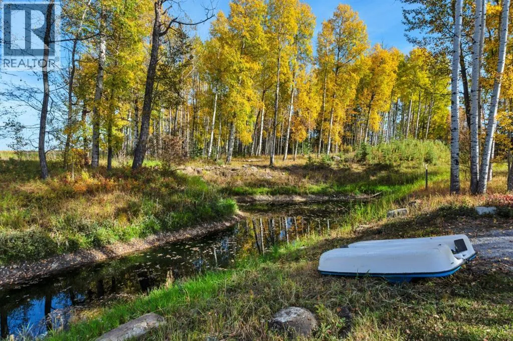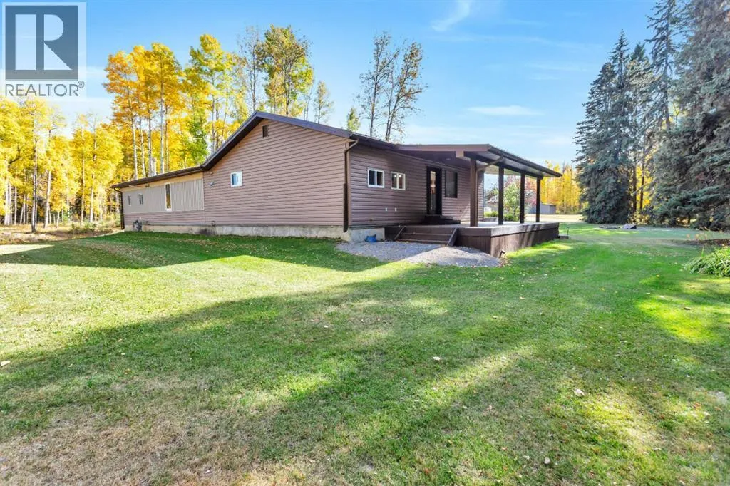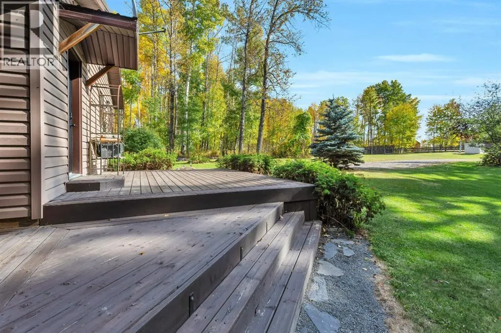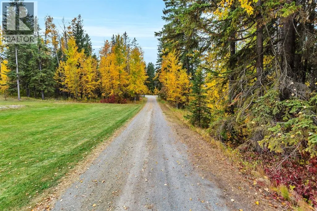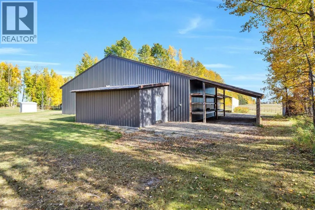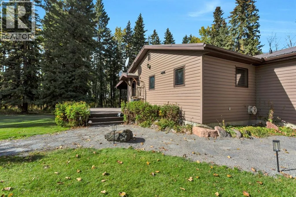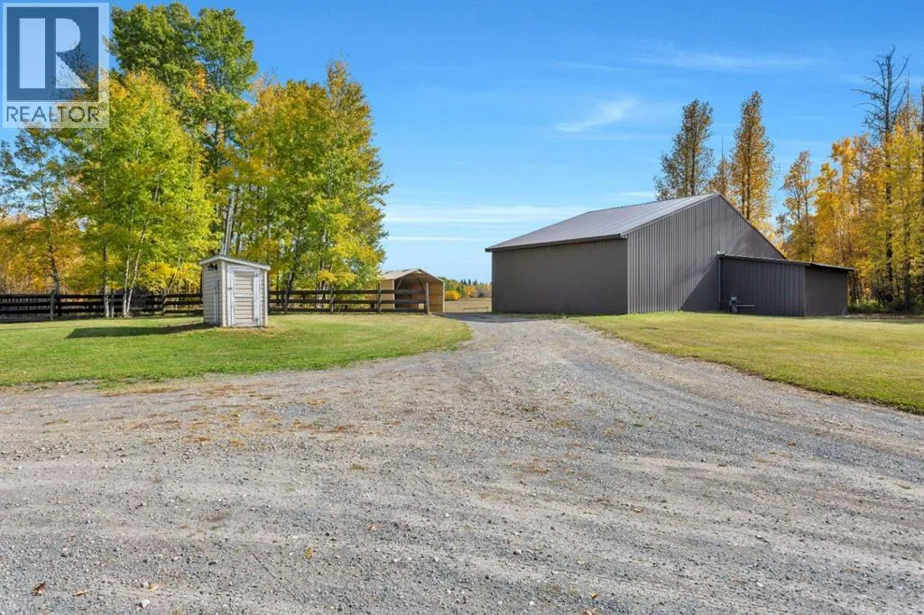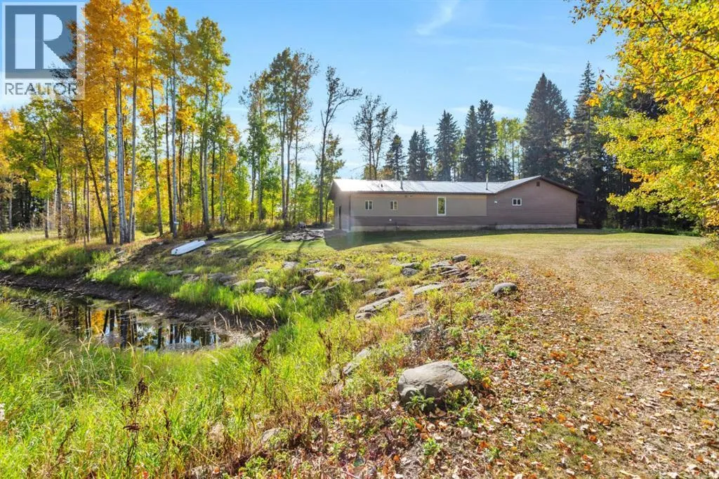 Only minutes from Rocky, located on a quiet no-exit road with easy access to Hwy 11, this 8 acres is private and beautifully landscaped. The property offers a peaceful rural lifestyle surrounded by mature trees and established perennial beds. The spacious 2,072 sq ft bungalow is all on one level and features a large entryway with excellent storage and a huge kitchen with a central island and walk-in pantry. Patio doors off the dining area lead to a covered deck overlooking the side yard. The living room is warm and inviting with cedar accents and a cozy wood stove. 3 bedrooms including the fully updated primary suite which features a 3-piece ensuite with a stunning custom tile shower, big walk-in closet and access to a private deck overlooking the pond. Recent upgrades include 2 new furnaces, a new hot water tank, fresh paint, and updated light fixtures throughout. The yard offers a picturesque fire pit area for gathering with family and friends and plenty of room for a large garden if you want to try out your green thumb. A second serviced site with gravel pad and concrete piles is ready for a mobile home if you are in need of a second residence. The property also boasts a 30x31' heated metal-clad shop with a new 12x16' overhead door, an attached 28x30' three-sided lean-to on one side, a 17x30' drive-through lean-to on the other side and a 16x23' heated storage area in the back. There's also a big 23x90' metal drive-through shelter, good for RVs or equipment storage. Small corrals complete the setup for hobby farming and livestock. This is the perfect combination of comfortable living, practical outbuildings, and tranquil country charm! (id:27476)