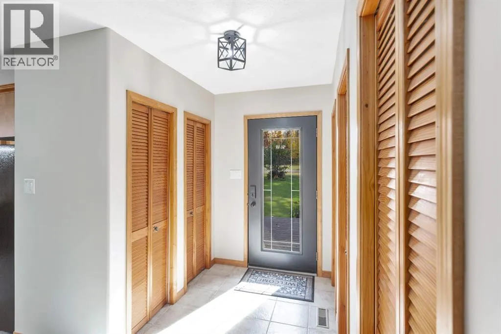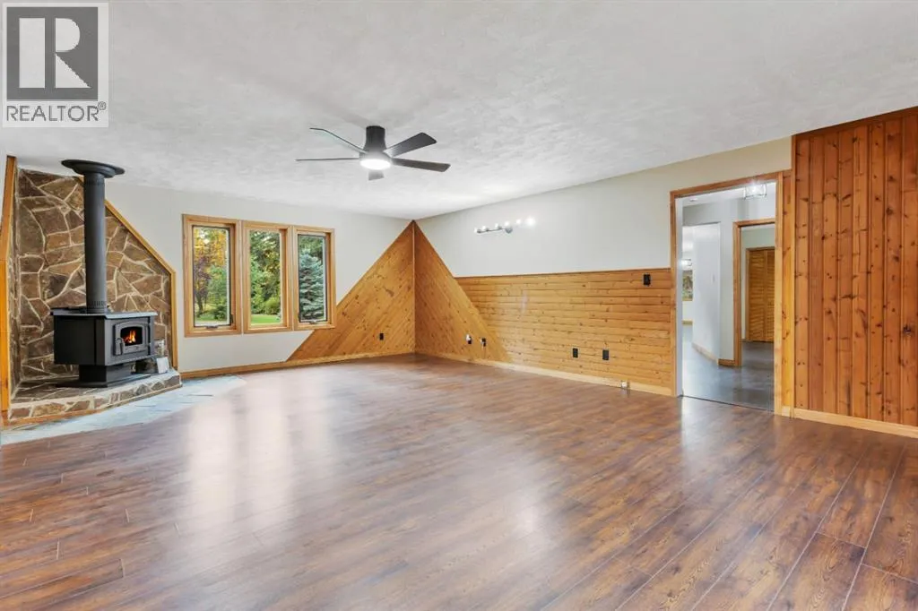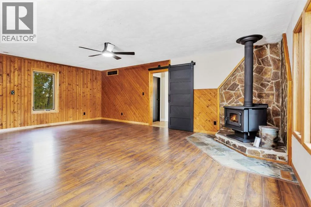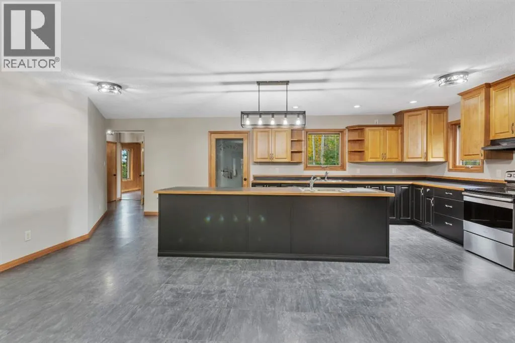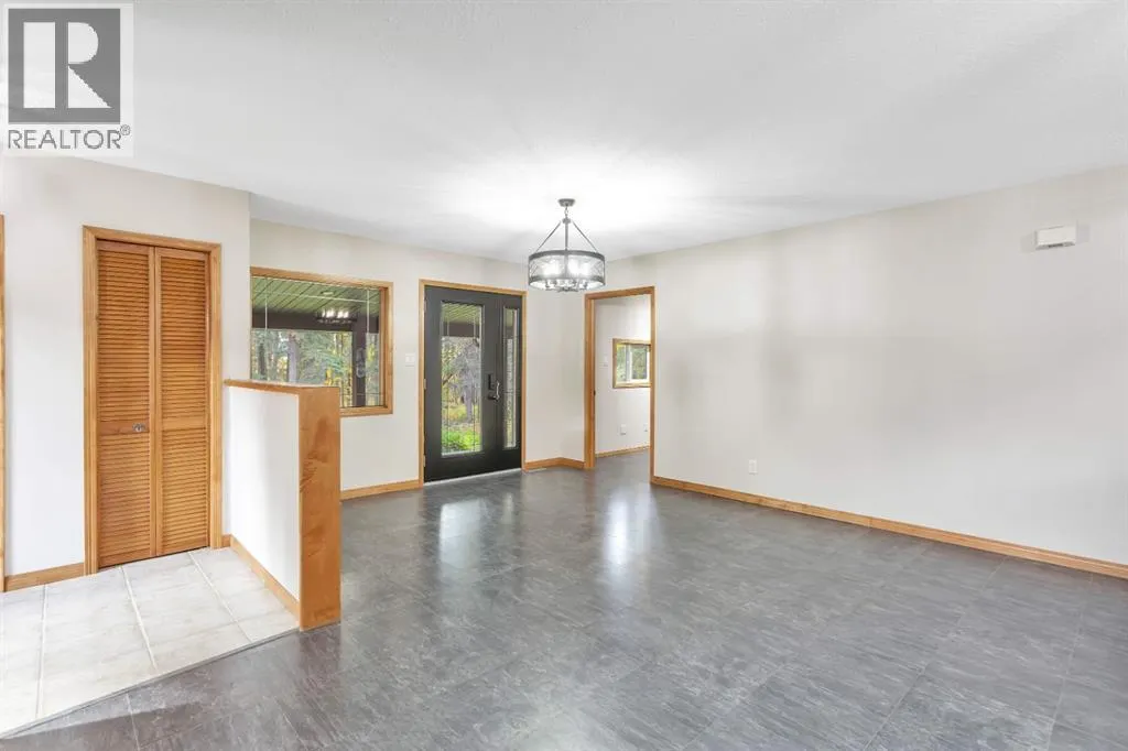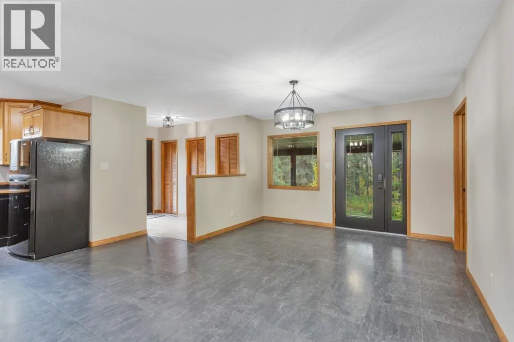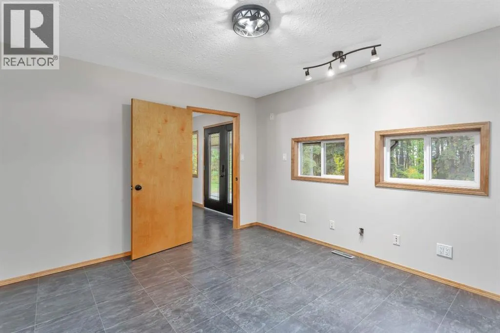 Only minutes from Rocky, located on a quiet no-exit road with easy access to Hwy 11, this 8 acres is private and beautifully landscaped. The property offers a peaceful rural lifestyle surrounded by mature trees and established perennial beds. The spacious 2,072 sq ft bungalow is all on one level and features a large entryway with excellent storage and a huge kitchen with a central island and walk-in pantry. Patio doors off the dining area lead to a covered deck overlooking the side yard. The living room is warm and inviting with cedar accents and a cozy wood stove. 3 bedrooms including the fully updated primary suite which features a 3-piece ensuite with a stunning custom tile shower, big walk-in closet and access to a private deck overlooking the pond. Recent upgrades include 2 new furnaces, a new hot water tank, fresh paint, and updated light fixtures throughout. The yard offers a picturesque fire pit area for gathering with family and friends and plenty of room for a large garden if you want to try out your green thumb. A second serviced site with gravel pad and concrete piles is ready for a mobile home if you are in need of a second residence. The property also boasts a 30x31' heated metal-clad shop with a new 12x16' overhead door, an attached 28x30' three-sided lean-to on one side, a 17x30' drive-through lean-to on the other side and a 16x23' heated storage area in the back. There's also a big 23x90' metal drive-through shelter, good for RVs or equipment storage. Small corrals complete the setup for hobby farming and livestock. This is the perfect combination of comfortable living, practical outbuildings, and tranquil country charm! (id:27476)