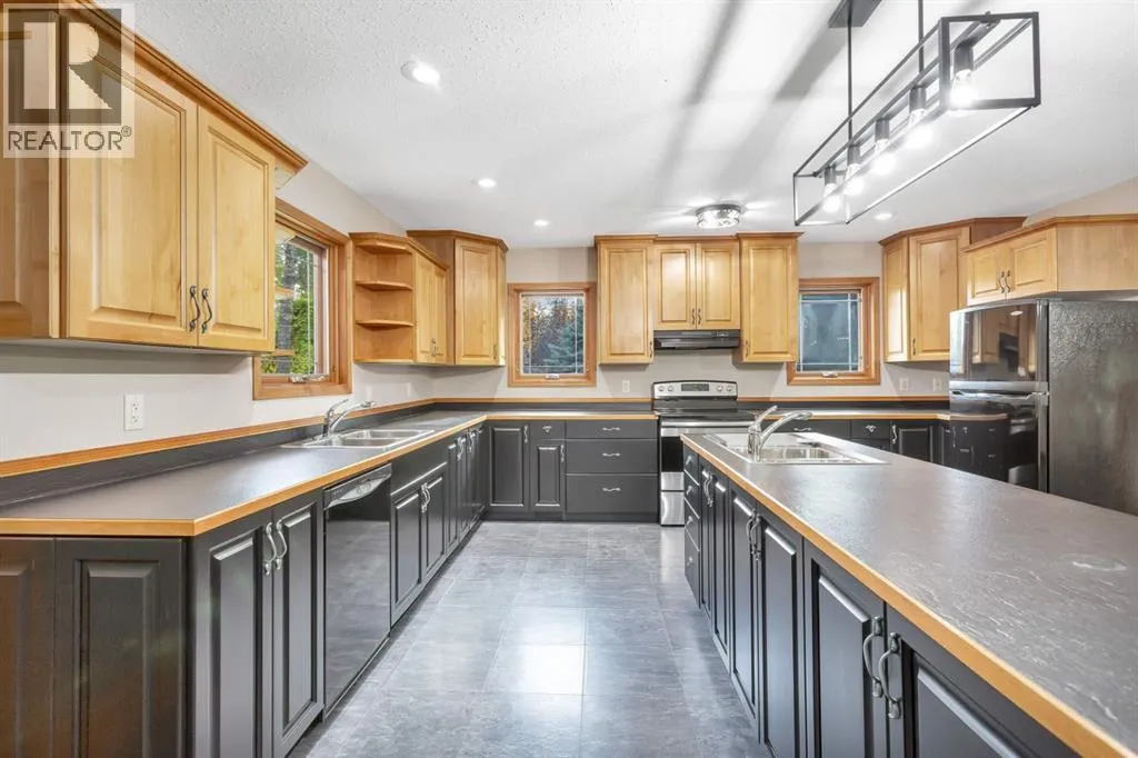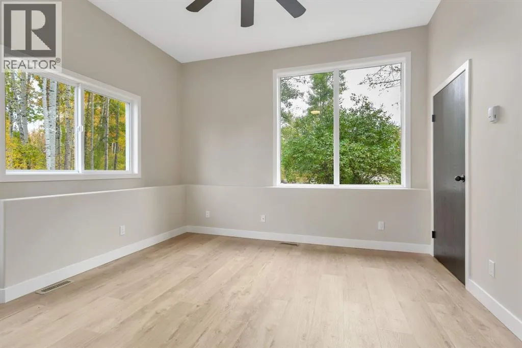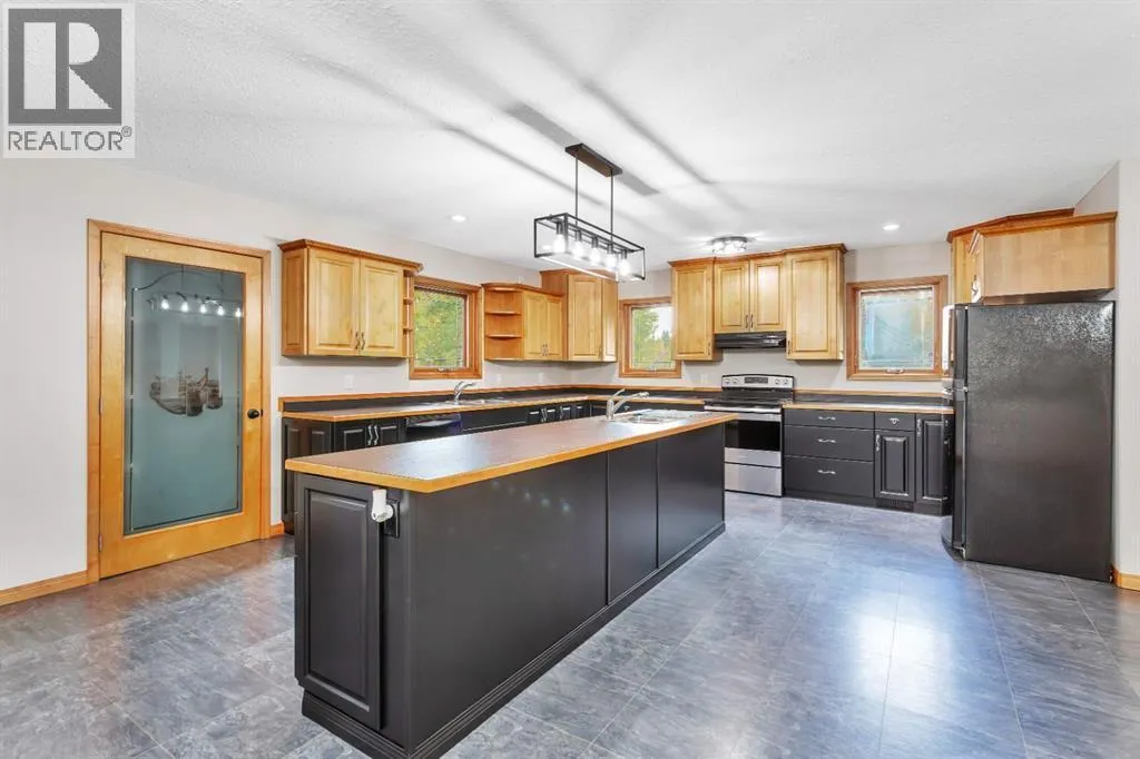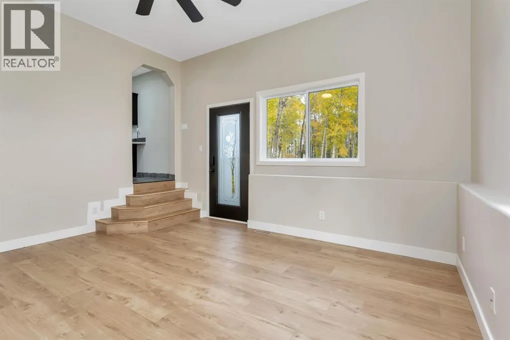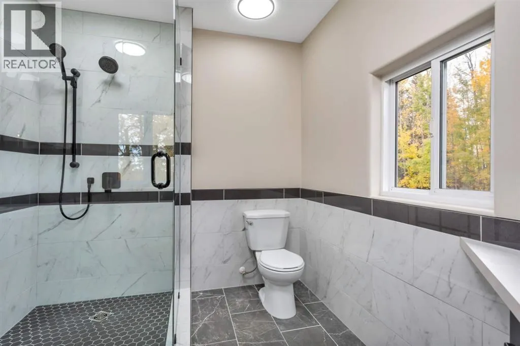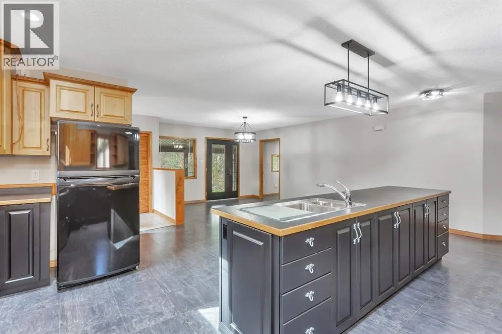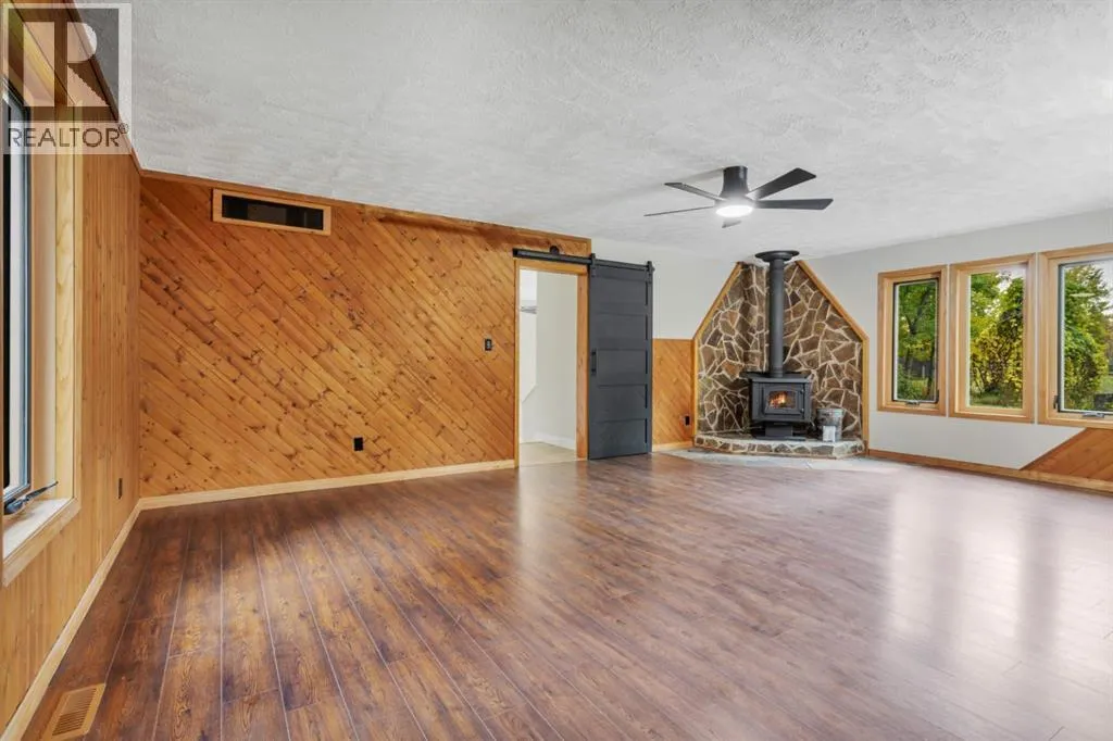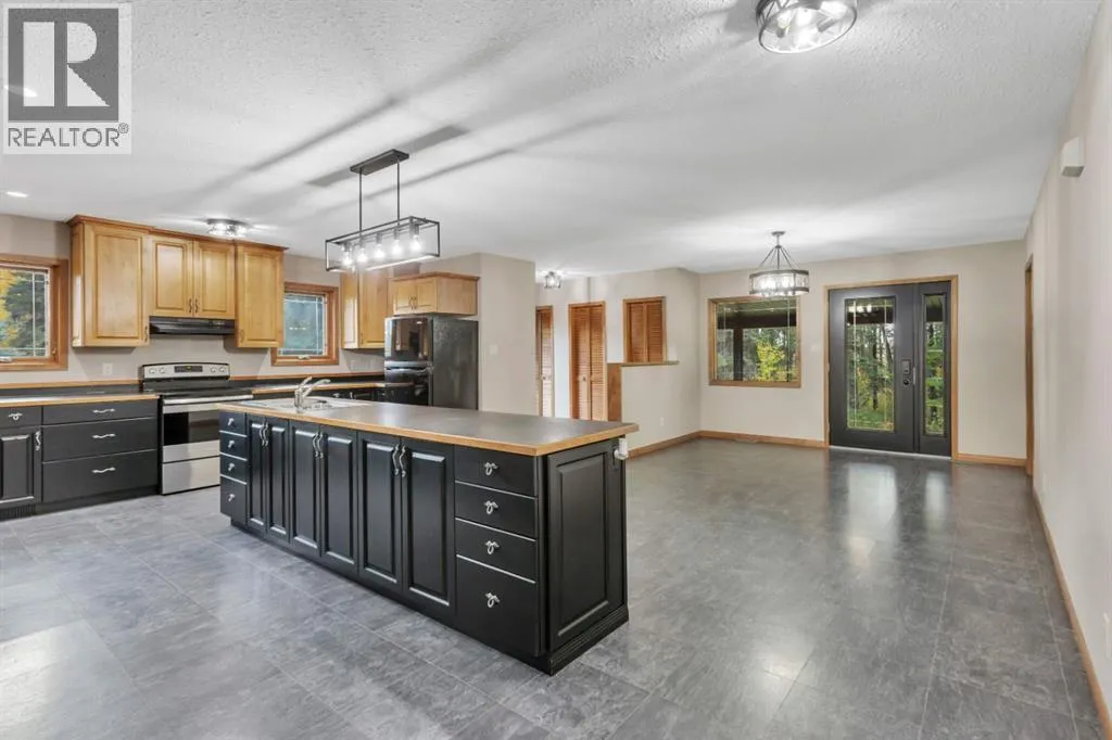 Only minutes from Rocky, located on a quiet no-exit road with easy access to Hwy 11, this 8 acres is private and beautifully landscaped. The property offers a peaceful rural lifestyle surrounded by mature trees and established perennial beds. The spacious 2,072 sq ft bungalow is all on one level and features a large entryway with excellent storage and a huge kitchen with a central island and walk-in pantry. Patio doors off the dining area lead to a covered deck overlooking the side yard. The living room is warm and inviting with cedar accents and a cozy wood stove. 3 bedrooms including the fully updated primary suite which features a 3-piece ensuite with a stunning custom tile shower, big walk-in closet and access to a private deck overlooking the pond. Recent upgrades include 2 new furnaces, a new hot water tank, fresh paint, and updated light fixtures throughout. The yard offers a picturesque fire pit area for gathering with family and friends and plenty of room for a large garden if you want to try out your green thumb. A second serviced site with gravel pad and concrete piles is ready for a mobile home if you are in need of a second residence. The property also boasts a 30x31' heated metal-clad shop with a new 12x16' overhead door, an attached 28x30' three-sided lean-to on one side, a 17x30' drive-through lean-to on the other side and a 16x23' heated storage area in the back. There's also a big 23x90' metal drive-through shelter, good for RVs or equipment storage. Small corrals complete the setup for hobby farming and livestock. This is the perfect combination of comfortable living, practical outbuildings, and tranquil country charm! (id:27476)