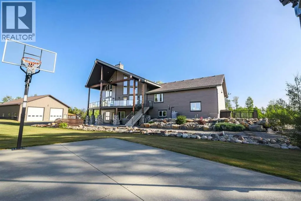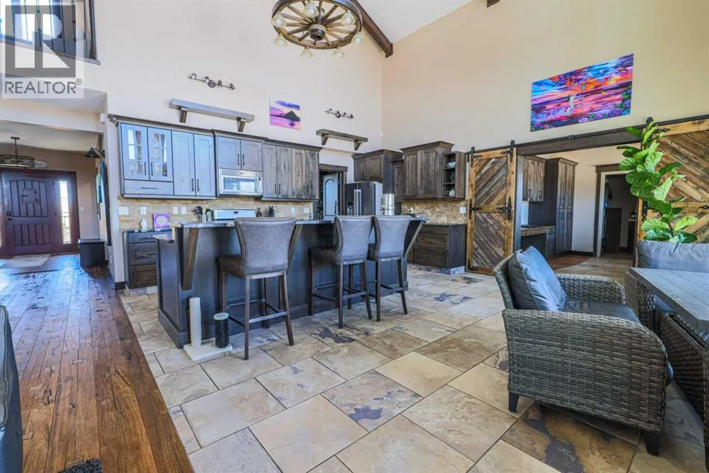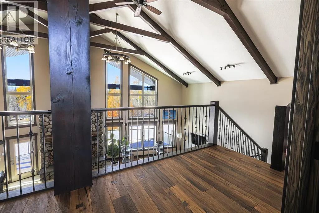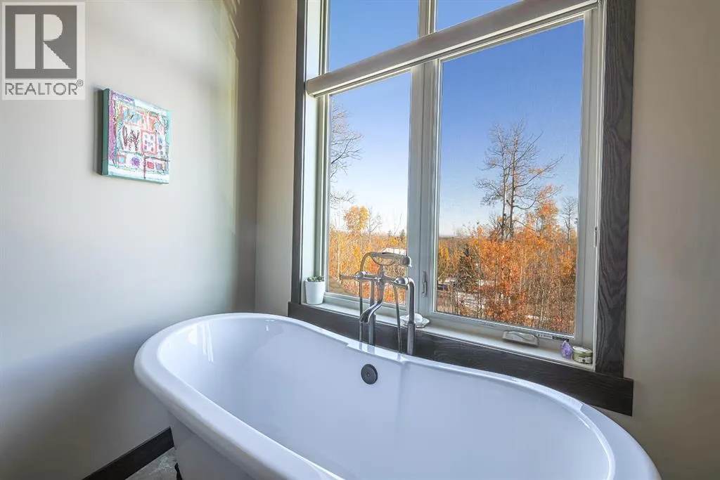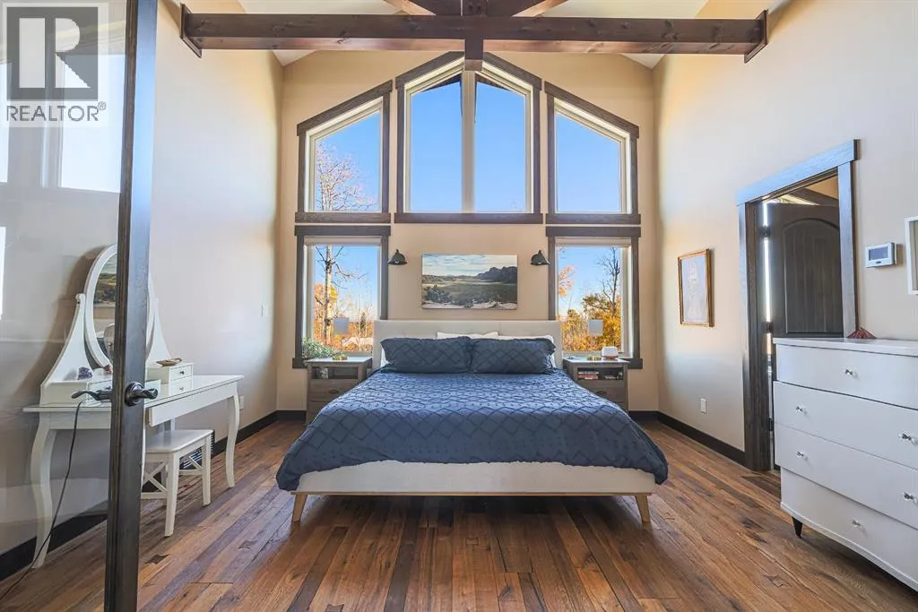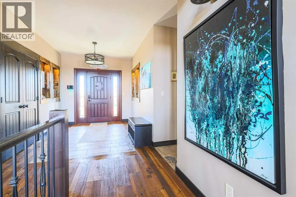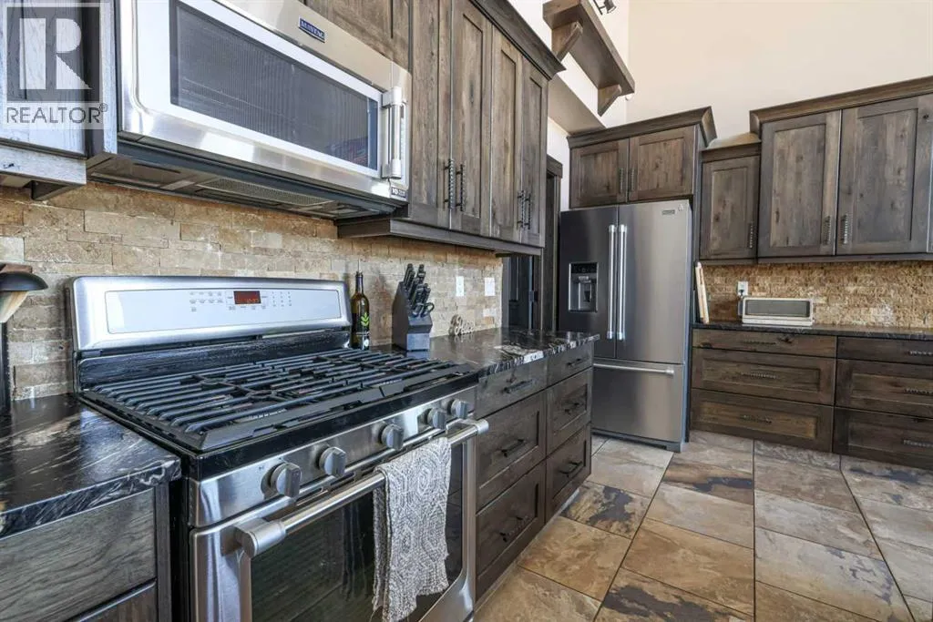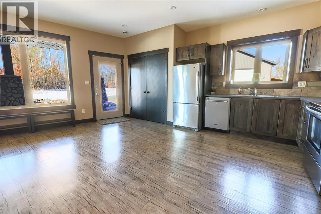 This custom built home offers acreage living at its finest. The moment you enter youâll see many unique features from the open floor plan, wooden beams and a floor to ceiling rustic stone fireplace that makes you feel warm, cozy and glad to be home. Natural light pours in from floor to ceiling windows where you can enjoy the sunsets in your living room or downstairs in the extra large hot tub. There's a self contained one bedroom legal suite with all appliances including washer and dryer and separate entry in the walk out basement. Quality abounds throughout this stylish home featuring leather granite counter tops, reclaimed hardwood and ceramic tiled flooring, interior walls insulated for sound barrier, in-floor heating, custom designed bar with wood detailing, Fir Timber Frame design and so much more. This home really needs to be seen to truly appreciate the craftsmanship throughout. The large workshop (46 x 54ft) has in-floor heating, a mezzanine for additional storage, 14' doors and a full 3 piece bath that includes a washer/dryer. This professionally landscaped property with a quiet parklike setting and beautiful view of the mountains has something to offer every family. (id:27476)