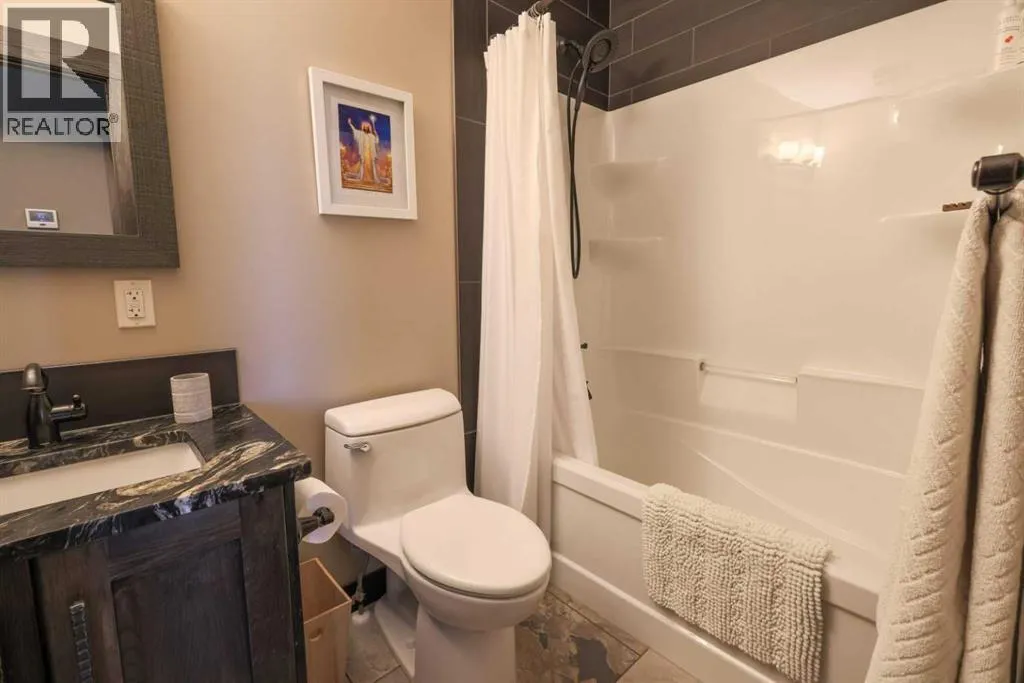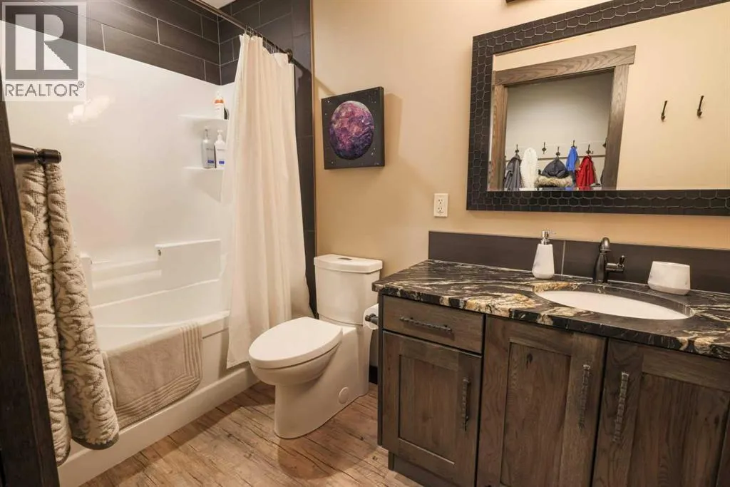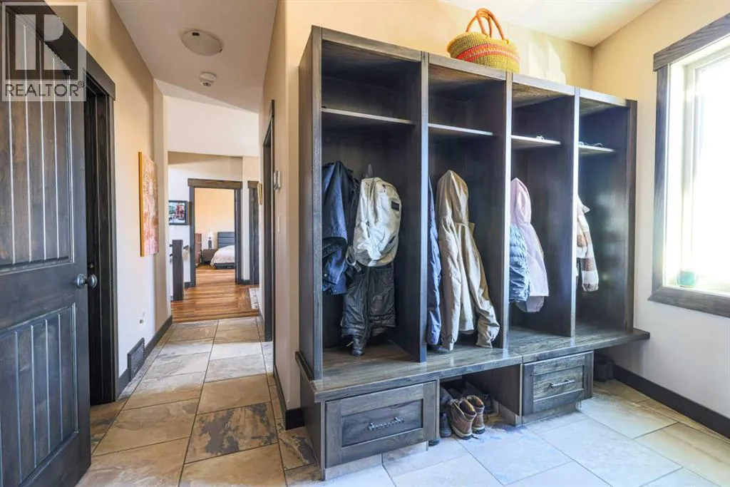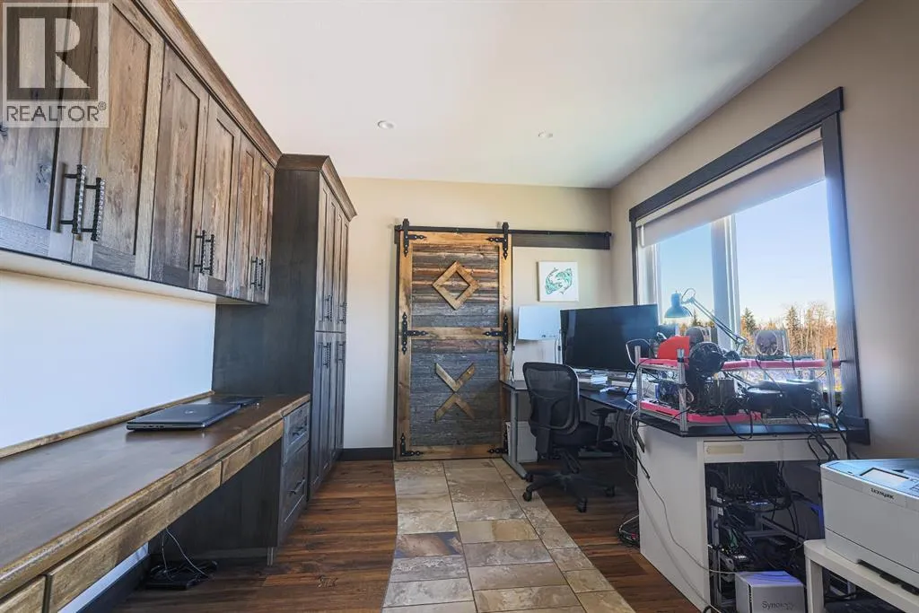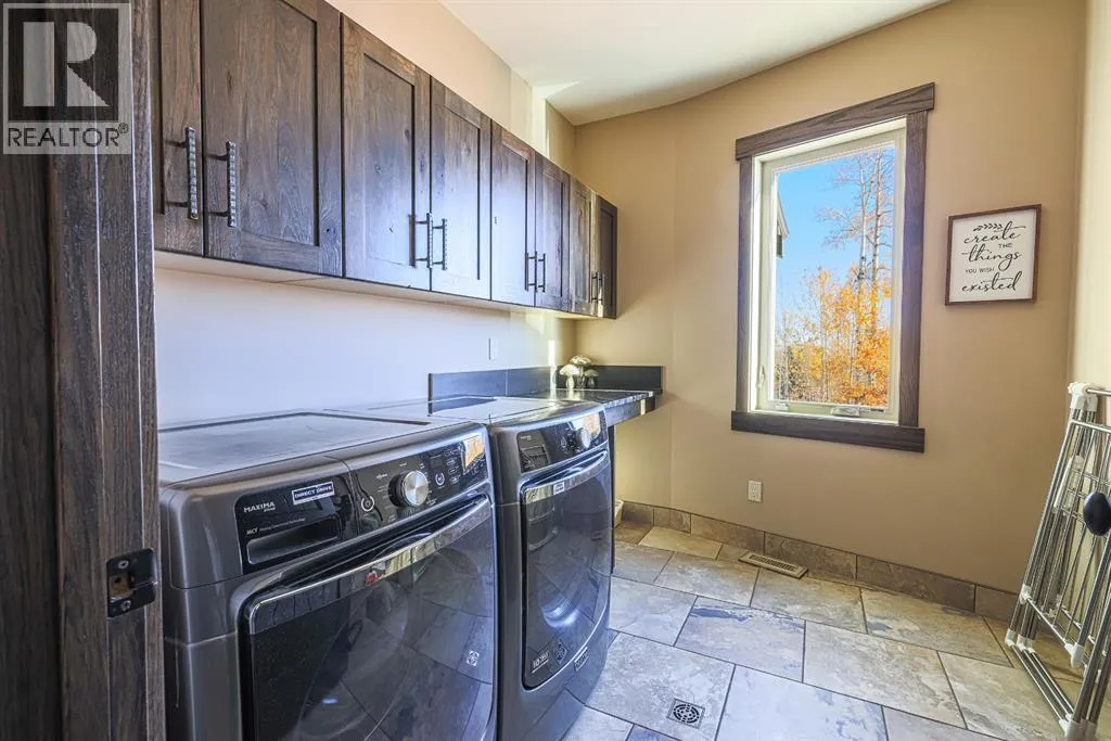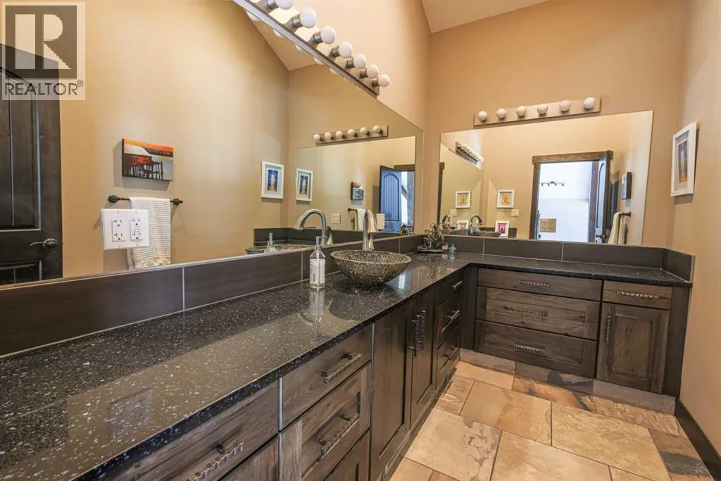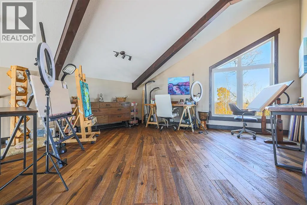 This custom built home offers acreage living at its finest. The moment you enter youâll see many unique features from the open floor plan, wooden beams and a floor to ceiling rustic stone fireplace that makes you feel warm, cozy and glad to be home. Natural light pours in from floor to ceiling windows where you can enjoy the sunsets in your living room or downstairs in the extra large hot tub. There's a self contained one bedroom legal suite with all appliances including washer and dryer and separate entry in the walk out basement. Quality abounds throughout this stylish home featuring leather granite counter tops, reclaimed hardwood and ceramic tiled flooring, interior walls insulated for sound barrier, in-floor heating, custom designed bar with wood detailing, Fir Timber Frame design and so much more. This home really needs to be seen to truly appreciate the craftsmanship throughout. The large workshop (46 x 54ft) has in-floor heating, a mezzanine for additional storage, 14' doors and a full 3 piece bath that includes a washer/dryer. This professionally landscaped property with a quiet parklike setting and beautiful view of the mountains has something to offer every family. (id:27476)