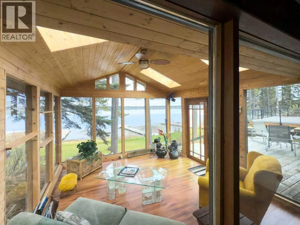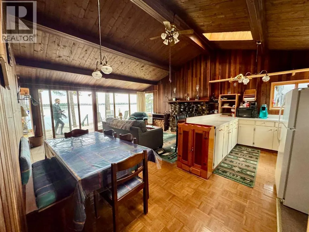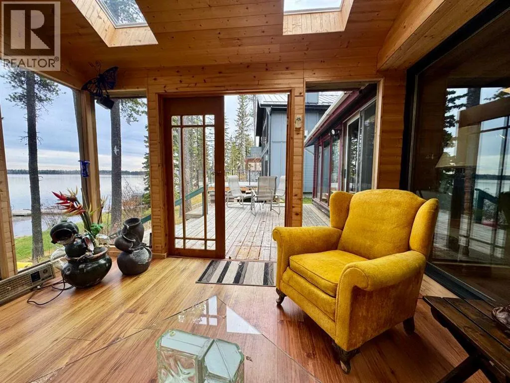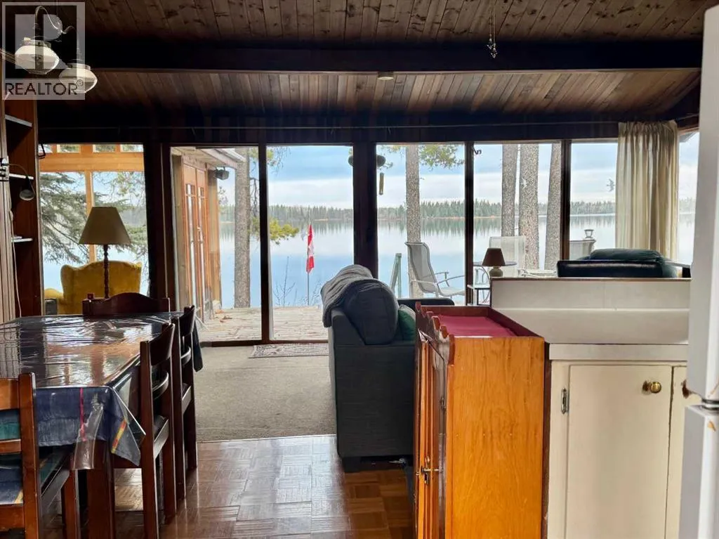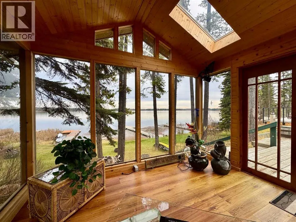 Has lake life been calling your name? Here's your opportunity to own a charming cabin on a lease lot in Crimson Lake Provincial Park with 40' of lake frontage. You'll feel the serenity of lake life as soon as you step through the front door and into the large great room where you can look out through the oversized windows to the beautiful lake vista. There's a small kitchen area that blends with the wide open living space and amazing rock surround fireplace. Patio doors open to the lake side deck and stunning sunroom. The one bedroom is large enough for multiple beds including custom built bunkbeds and also has a patio door that opens to a deck on the west side. An alcove is currently being used as another bedroom and has a lovely view of the lake (there is presently sleeping accommodations for 6 people). The three piece bathroom has a large closet (previous sauna?) and all furnishings in the cabin are included with the sale. The lot has just the right amount of landscaping with a set of stairs going to the lake front and fire pit as well as a brick patio and fire pit near the back deck. There's a feature rock garden and fountain at the front of the property and several storage sheds. This is a Provincial Lease which renews in January 2045, PML 820381. Annual lease payment of $1356.00 (due January 1, 2026) and the assignment fee is $3150,00 + GST. (id:27476)