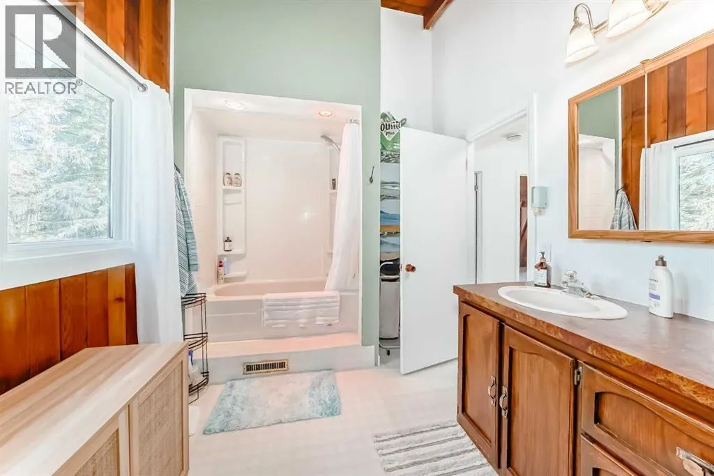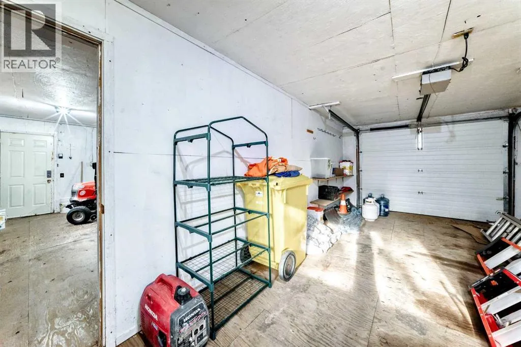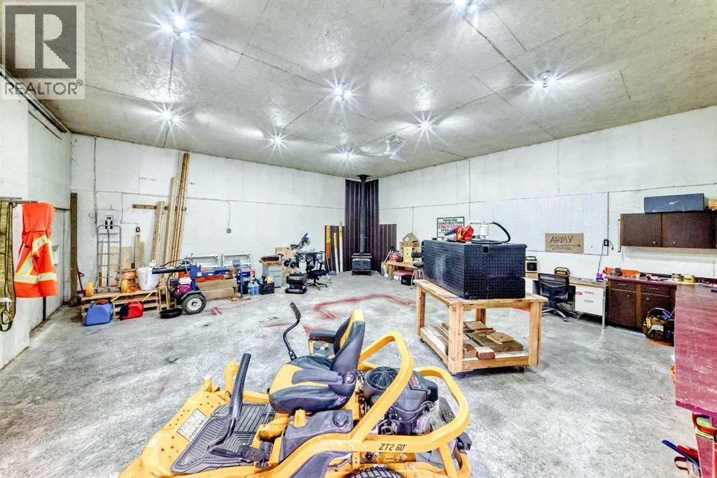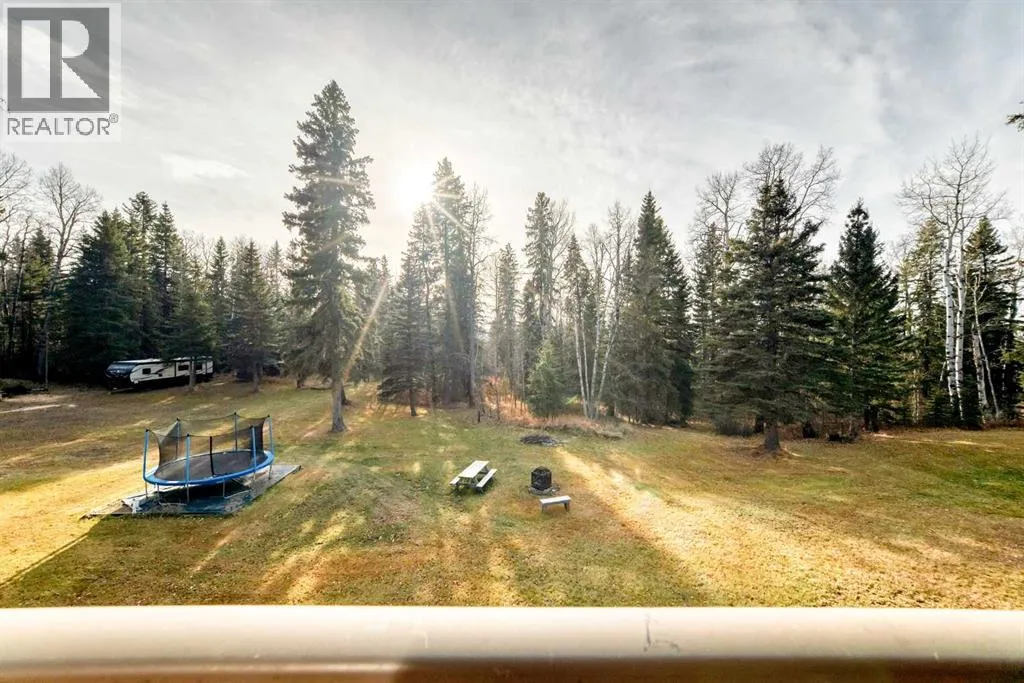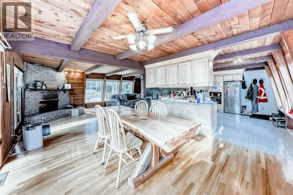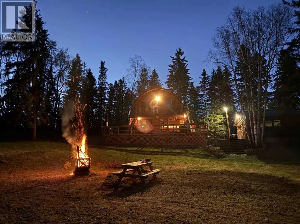 Just minutes west of Rocky, this charming arch-rib home is nestled among mature trees in a peaceful, park-like setting. Two levels of decking offer the perfect place to relax, unwind, and take in the beauty of the surrounding countryside. Inside, the main floor features a spacious kitchen that flows into the dining area and the cozy living room, complete with hardwood flooring and a wood-burning fireplace. A 3-piece bathroom, flex room, and laundry room add convenience to the main level. Upstairs, youâll find four comfortable bedrooms and a 5-piece bath. The primary bedroom is generously sized and includes a private balcony overlooking the acreageâideal for morning coffee or quiet evenings. The property also offers great utility with a double detached garage (31'5" x 23'7") and a well-sized shop with a wood stove (29'4" x 27'4"), perfect for projects, storage, or hobby space. A true country retreatâprivate, peaceful, and full of rustic charm. (id:27476)