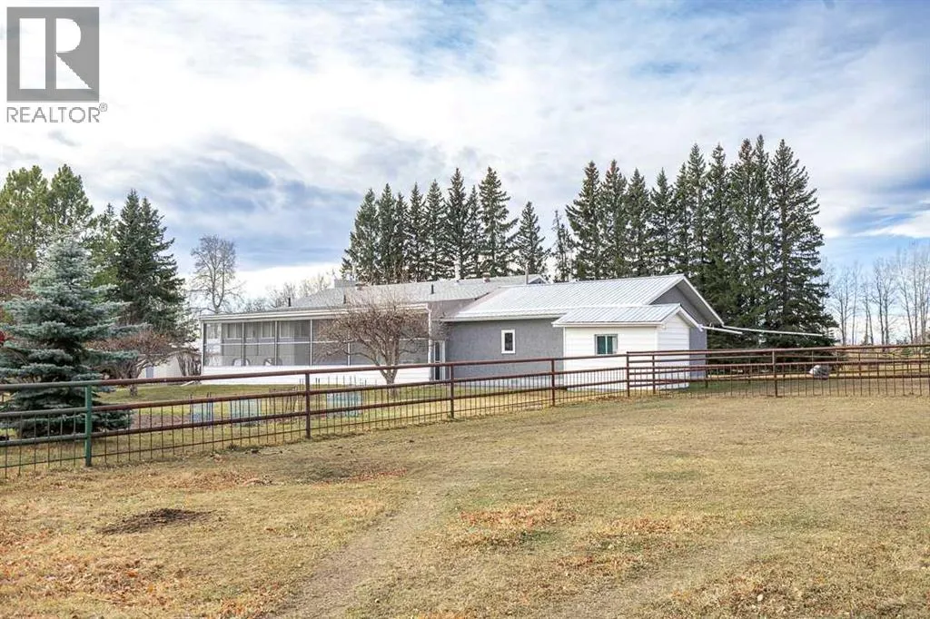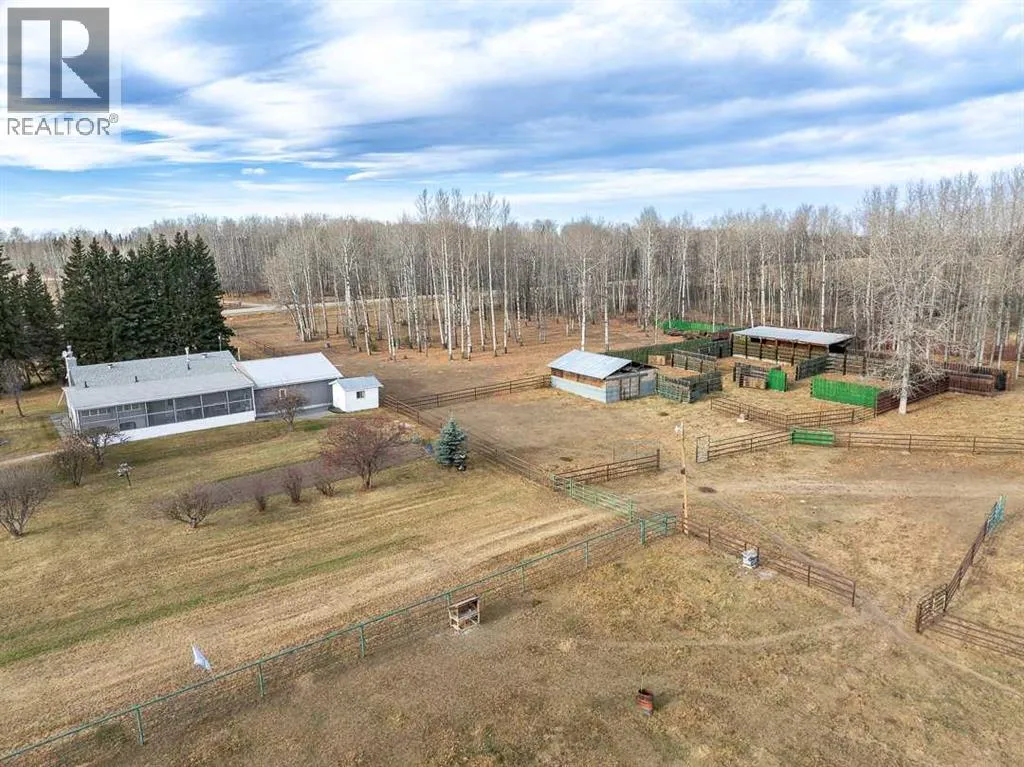 Meticulous 7.09 Acre Hobby Farm, Beautifully Maintained & Fully Set Up for livestock or horses.This lovingly cared-for 1978 4 Bdrm / 3 Bthrm Bi-level home tucked into 7.09 private, park-like acres. The home is warm, comfortable & move-in ready, offering many thoughtful upgrades over the years. A unique covered Courtyard offers so much protection from the weather as you go in & out of the home. Off the Kitchen/Dining Rm is a spacious comfortable enclosed Sun Room. Attached to the end of the home is a 30 Ã 32 ft (960 sq ft) heated studio shop with a 2-pc bathroomâpreviously used as a sewing & fabric business. With its separate entrance & generous workspace, itâs ideal for your home-based business, studio, or conversion into a second or additional living area.A 26 Ã 28 ft. DB garage, a 26 Ã 31 ft. 2 Bay Shop enjoying an upper mezzanine with two-16 Ã 31 ft lean-too's expand the Shop footprint to 1,922 sq ft., all provide excellent storage & work space, bragging concrete floors, big doors, 4 man doors & power.Horse lovers, cattle producers & hobby farmers will appreciate the 32 Ã 24 ft two-stall barn with tack room & feed storage, along with an extensive number of steel pens, windbreak fencing & cross-fenced paddocks, all in excellent condition. The property was formerly set up for bison, making it exceptionally strong & secureâideal for cattle, horses, or whatever critters you love. A covered livestock working area & two automatic waterers, complete this turnkey setup.For added versatility, the property also includes a 16 Ã 32 Ã 14 ft RV shop, 12 Ã 8 ft well house, 10 Ã 12 ft storage shed & a 12 Ã 16 ft cabin with Bunk bed for guests or kidsâ adventuresOutside, the yard is a true retreatâbeautifully landscaped with mature spruce, fruit trees, a tranquil pond & a cool little bridge. Peaceful, private & designed with pride.Conveniently located just mins N. of Caroline, or an easy hop S. of Hwy 11 from Rocky Mountain House, right off paved Arbutus Road & just a half mile to the 18 Hole Caroline Golf Course, soon to be renovated. So much value, infrastructure & thoughtful careâthis acreage is truly a rare find. (id:27476)