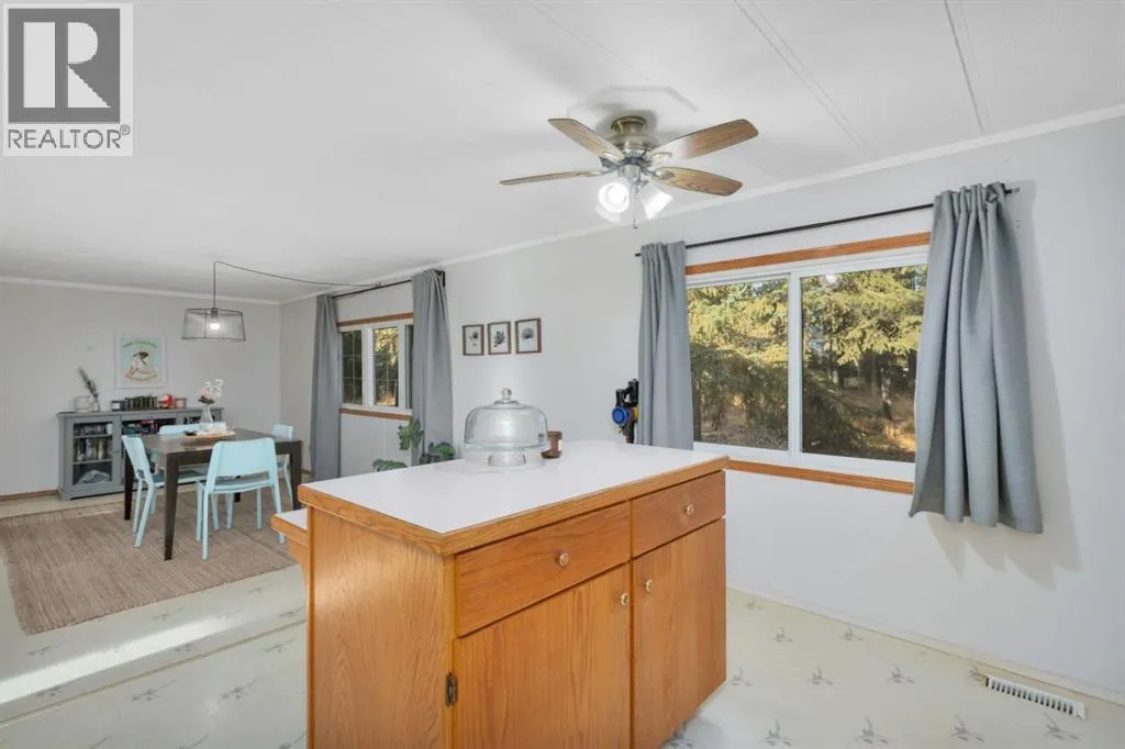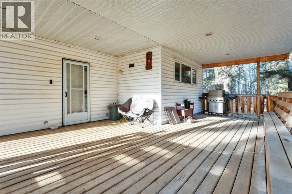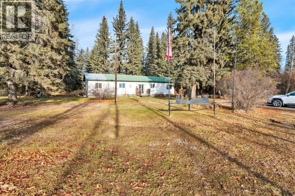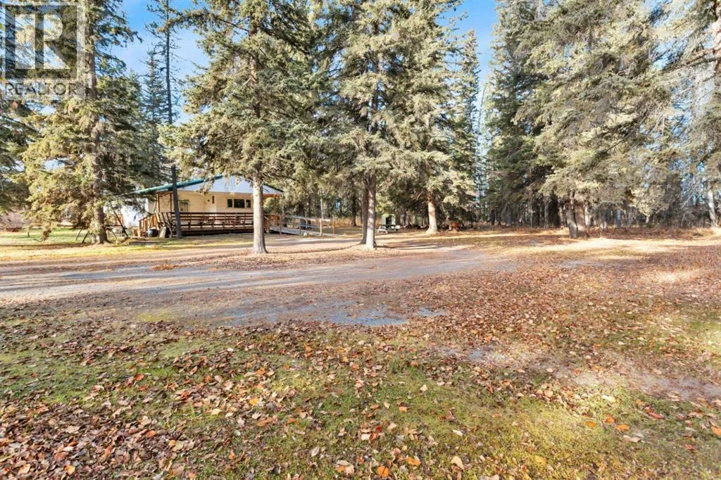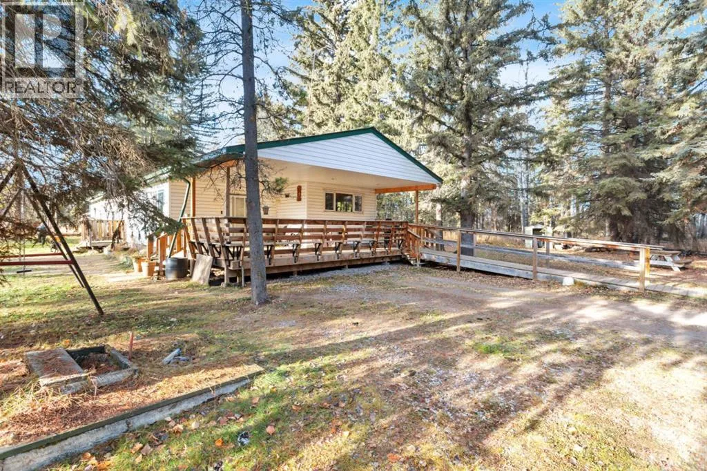 Discover a great blend of privacy and convenience nestled among mature trees yet only 3 km from Rocky. Set on just under 3 acres, this well-maintained mobile with a generous addition welcomes you with a spacious entryway leading into an open kitchen/dining area and a big, bright living room with a freestanding gas stove. This home offers 4 bedrooms, including a large primary with walk-in closet and 4-piece ensuite, plus a second 4-piece bathroom. Enjoy the outdoors on the covered deck with built-in seating and wheelchair access. Recent improvements include a new furnace and septic (2023), fresh paint and carpet, and a durable metal roof (2010). There's an older metal clad building for additional storage and the property is partially fenced providing plenty of cleared space for a future garage or shop, RV parking, and a garden. (id:27476)