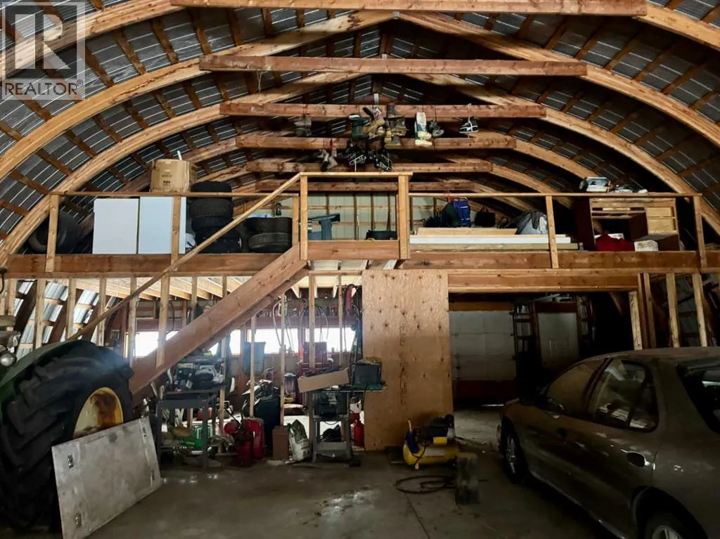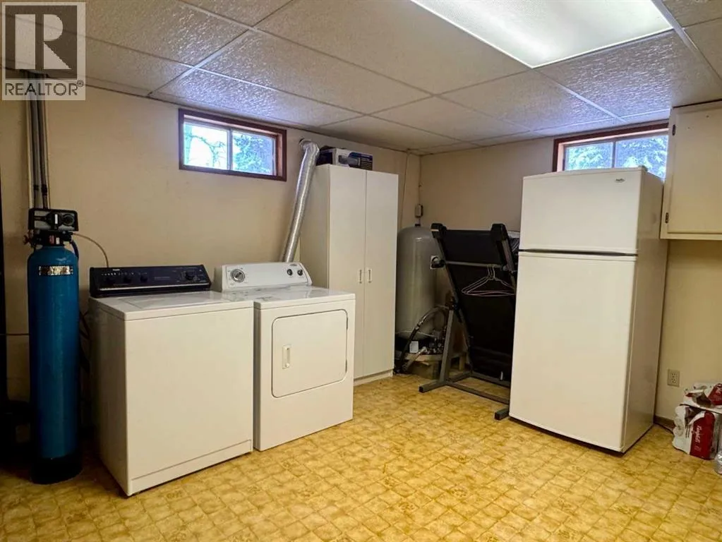 154 acres located on a private, no exit road north east of Rocky Mtn. House. Approximately 100 acres of arable land that has been used for pasture the past few years. The residence is a 16 x 66' manufactured home that was custom built in 1984 and moved onto the existing preserved wood foundation. The main floor features a front end living room with a central kitchen/dining room (note the dishwasher was new in November), small bedroom, four piece bathroom and main bedroom at the far end. Downstairs is a rec room with a walk out on the north side, bedroom, office or storage room, and a large laundry room. The 40 x 60' Quonset has a concrete floor and a 16' mezzanine at the south end. There is an older set of corrals, stock waterer, and a wood boiler that services the house but has not been used in several years. Two surface leases on the property with annual incomes of $2100 and $2800. (id:27476)