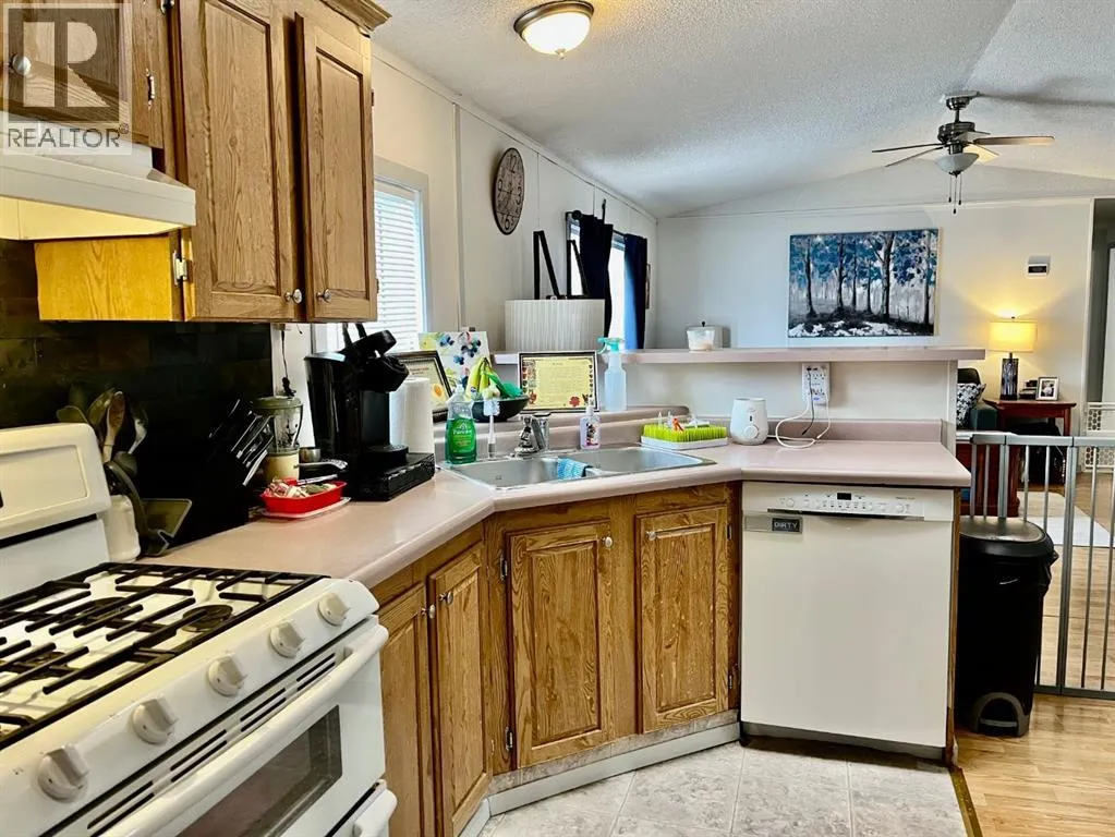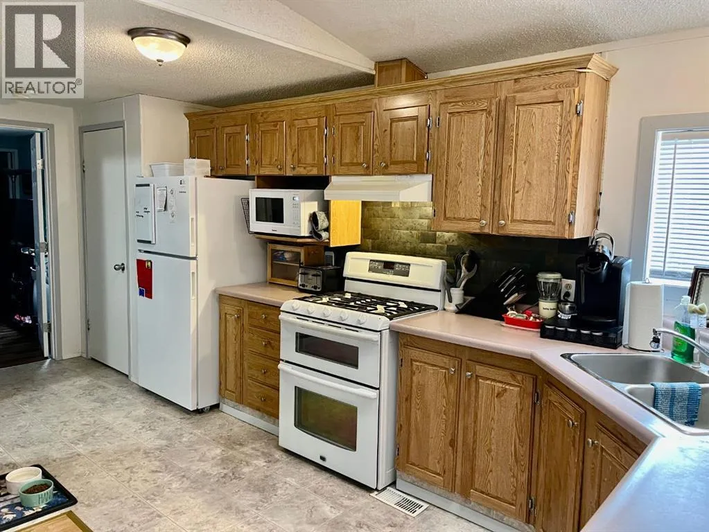 Minutes west of Rocky on 11A to West Country Community backing onto trees and enjoy the country living at an affordable price. This mobile is in good condition with 3 beds and 2 full baths. There is a newer 12X14 addition; perfect for a coat/boot room. The 12X32 enclosed covered deck is a nice addition offering a great area for summer BBQ'ing. The 2 sheds are included. The yard is fenced. There is free internet on this lot. The monthly rent is $500.00 inc. sewer, water and garbage. There is also gated RV parking for a small fee as well as a picnic area and playground. The mobile has been recently painted, new roof on mobile & addition, new hot water tank, newer appliances, newer fence, garden box in the front, 2014 furnace. Mobile is anchored for financing. Mobile home park approval is required/no large dogs allowed in park. (id:27476)