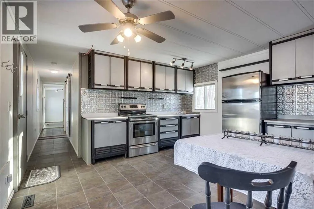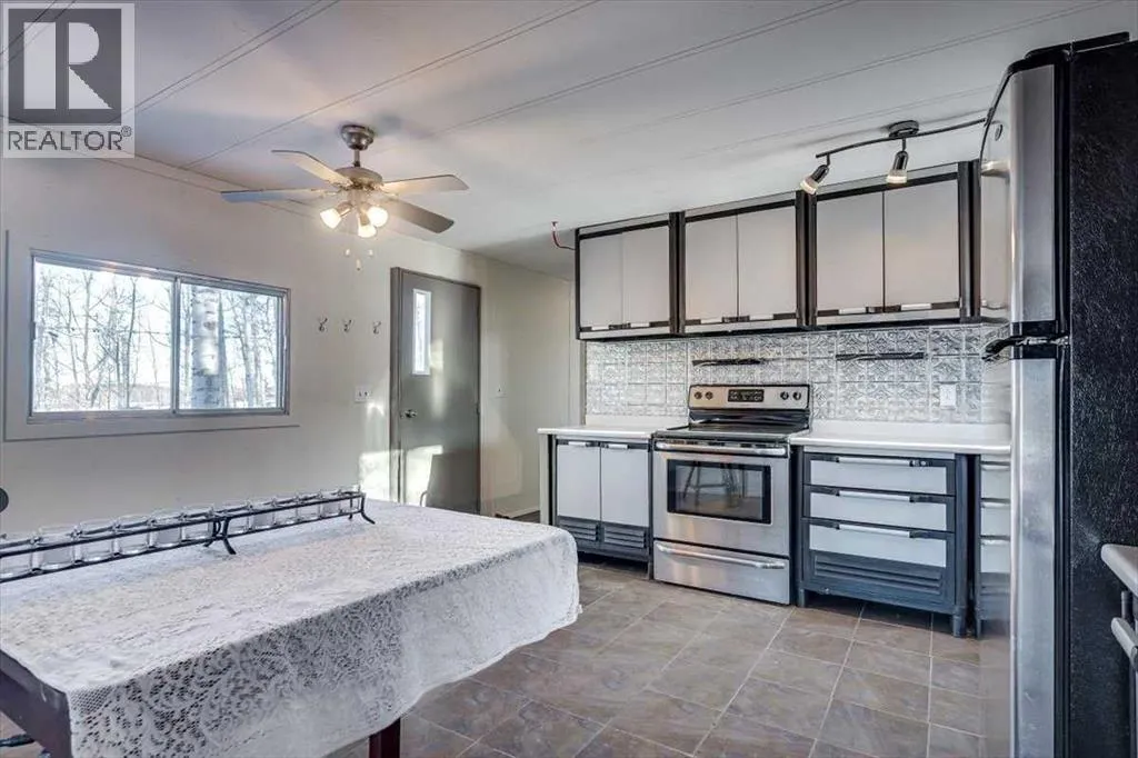 Affordable acreage living with stunning mountain views in James River, Alberta! Set on 7.66 fully fenced acres, this treed property with open pasture offers privacy, functionality, and endless opportunity while remaining conveniently located north of Sundre - just 45 minutes to Red Deer and 75 minutes to Calgary, with easy highway access.The 1974 mobile home features 2 bedrooms and a 3-piece bathroom, an open-concept kitchen and dining area, and a large living room with a west-facing window that captures beautiful mountain views and natural light. Mature trees surrounding the home provide excellent privacy, while the open pasture offers potential for livestock, extra yard space, or a home based business. Serviced by a drilled well and propane tank. New furnace installed in 2025. The detached 24x22 garage with metal roof includes an additional 20x12 workshop/storage addition at the rearâideal for projects, tools, or equipment.Zoning allows for minor agricultural pursuits making this an excellent option for those seeking a hobby acreage. An affordable way to get onto an acreage - this property offers space, views, and opportunity in a desirable rural setting. The land is predominantly flat with multiple potential building sites and flexibility for future development. The existing mobile offers immediate use and/or the option to live in the mobile while you build your dream home or replace it with a new mobile in the future! (id:27476)
