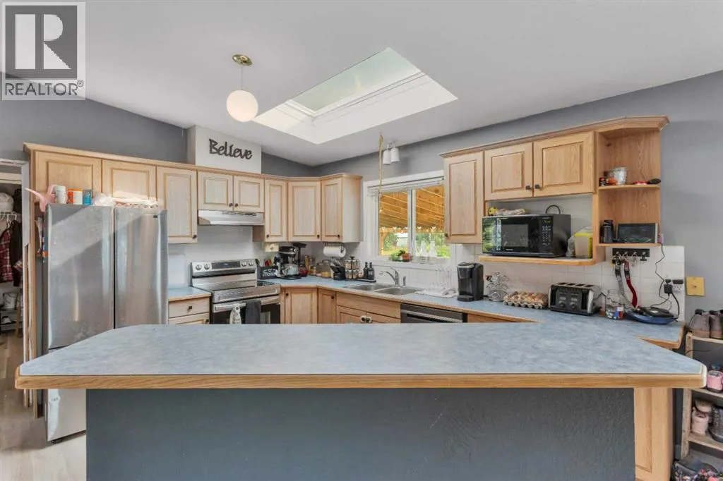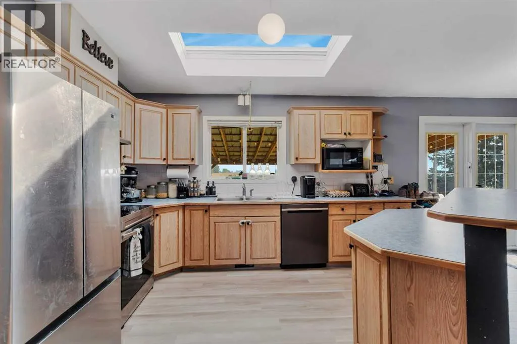 Welcome to your 5.73 oasis, where you have all the privacy you could hope for, no gravel driving, CRA zoning for animals and a beautiful home with both a gas fireplace & wood stove in addition to a detached 30x28 finished and heated garage to tinker in and park your toys. This 1996 modular home has a wonderful, functional layout which is sure to impress! Boasting 3 very spacious bedrooms, and 2 4pc bathrooms. On one end of the home you have your family room with a woodstove, access to your primary bedroom which gives you access to one of the 4pc bathrooms, which also leads you to another entrance to the home and laundry area. Off of the kitchen you have your dining room, living room with gas fireplace ,the last two large bedrooms and the other 4pc bathroom. There are many large windows throughout, and the kitchen access takes you to your huge covered deck! Outside the home we have the fencing and cross fencing complete, there is a clay pad for a shop which is just shy of 40x60 in size, two chick coop homes, a shed, and even a rabbit house. Numerous improvements have been done here lately including, new furnace, new roof on the garage, new skirting around the home, new skylight in the kitchen, some new light fixtures, all new vinyl plank flooring throughout and the list goes on. If you're looking for a move in ready home with loads to offer this is the place or you! (id:27476)