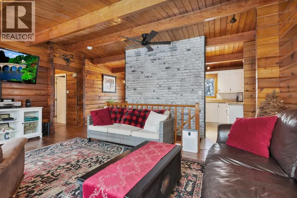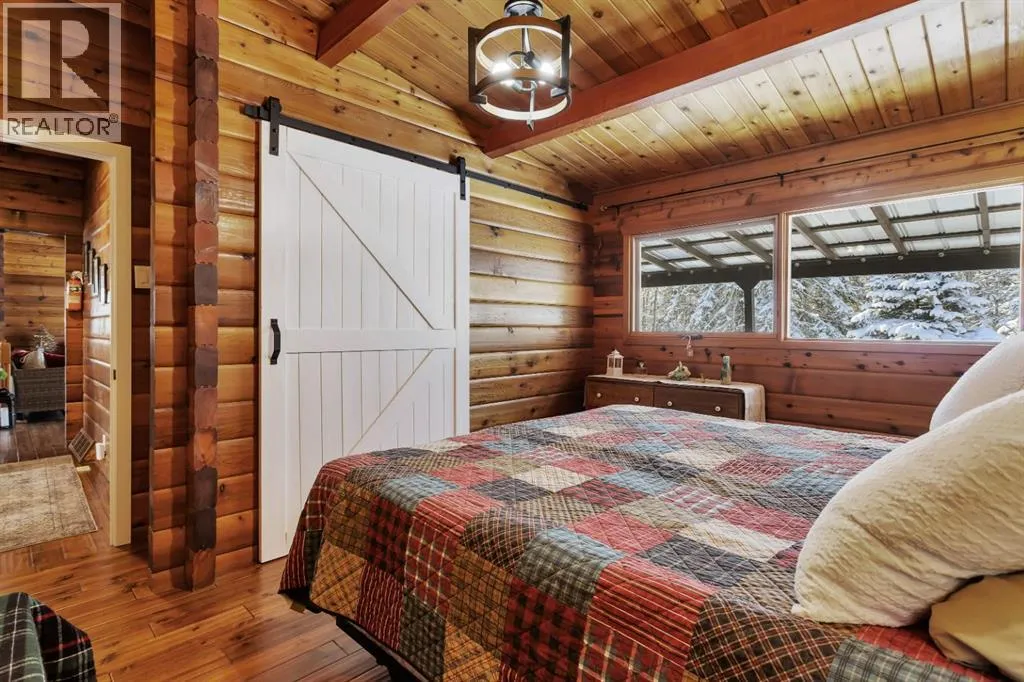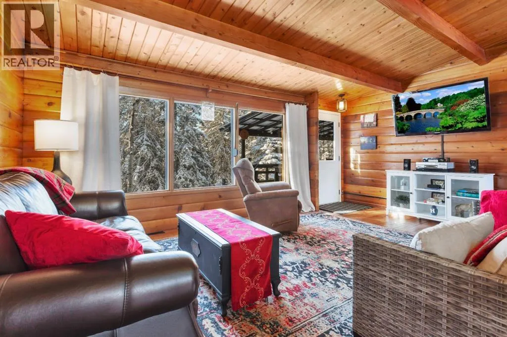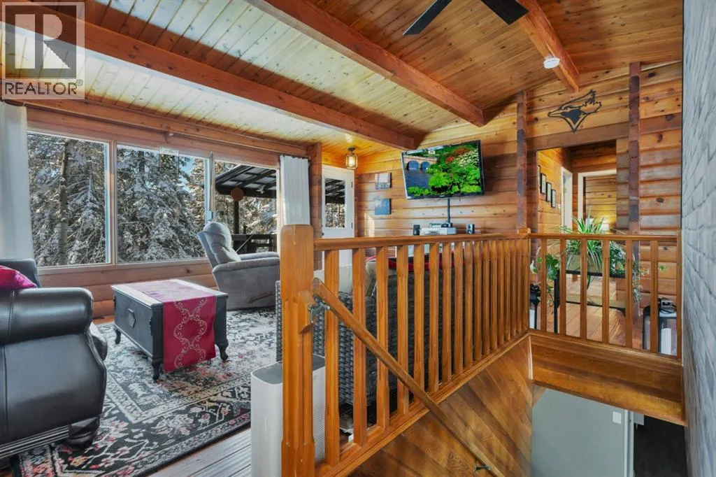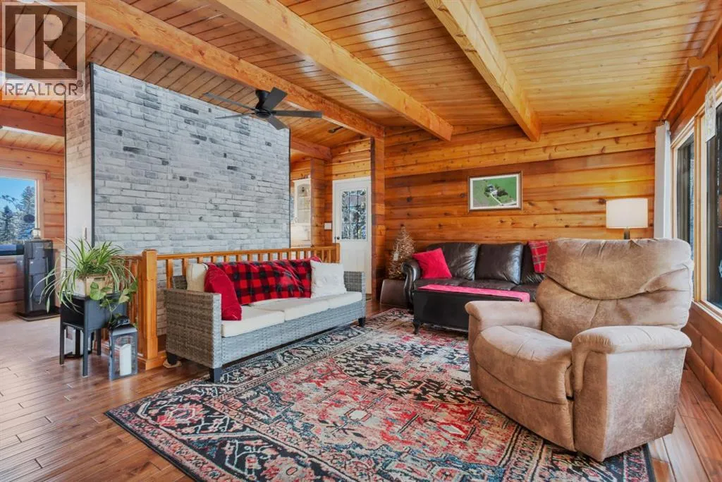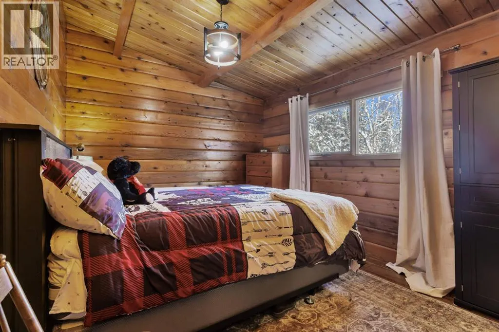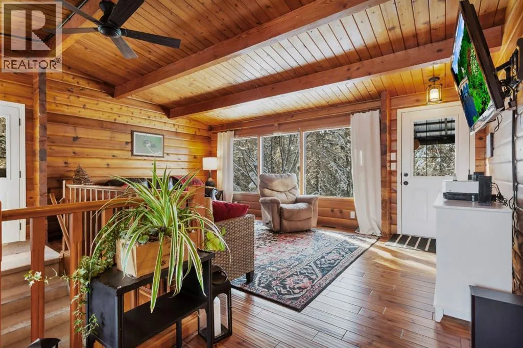 If youâre looking to call the West Country home, you wonât want to miss this private and beautifully treed 5.5 acre property located just 10 km west of Rocky. The main level features cedar log construction with vaulted ceilings, the kitchen flows into the dining area and the cozy living room offers beautiful views to the back yard. Three bedrooms, a fully renovated bathroom complete with a spacious custom tile shower and newly added main floor laundry. The walkout basement offers a versatile family living space, flex room for guests, crafts, home office or hobbies, optional downstairs laundry, a 3-piece bathroom, and ample storage/workshop space. A large, partially covered wrap-around deck is the perfect place to enjoy your morning coffee, watch the wildlife and relax while soaking in the peaceful surroundings. Recent upgrades ensure effortless living, including new shingles, furnace, central air, exterior and interior doors, basement windows, and a new septic tank and lines. The 24' x 26' double detached garage is fully finished and heated, and there is also an RV site further down the driveway. The beautifully landscaped yard features mature trees and trails. Fibre high-speed internet has been installed, making it easy to work from home while enjoying the peaceful country setting. (id:27476)