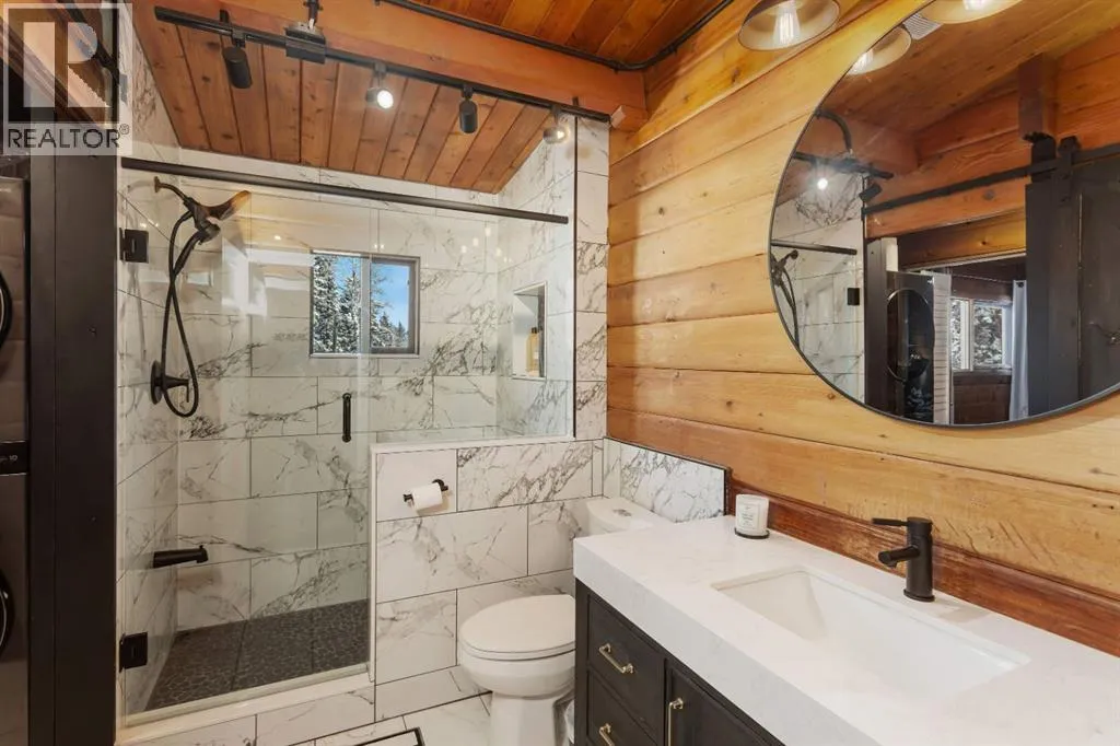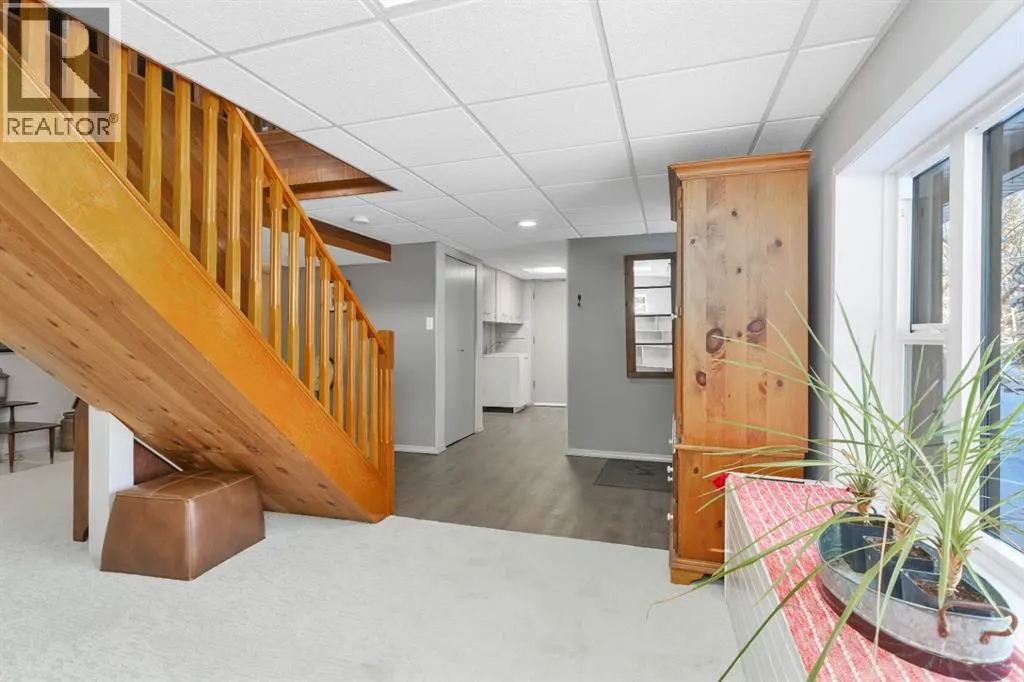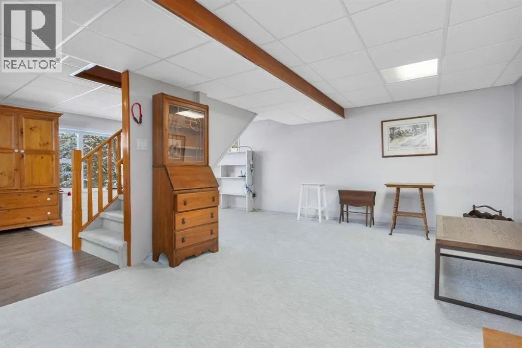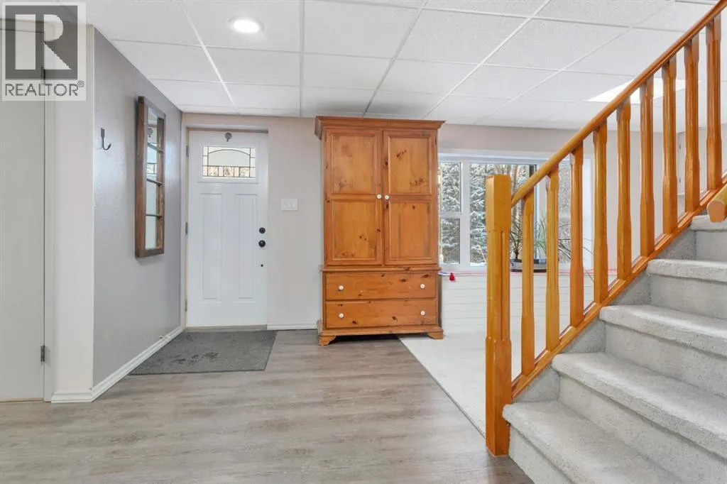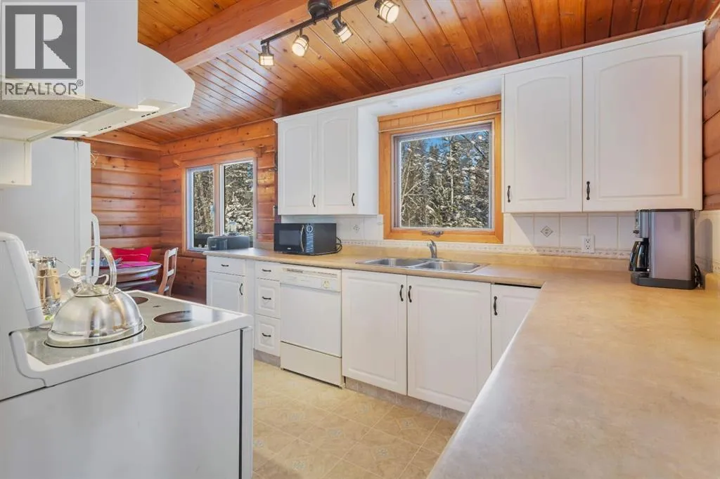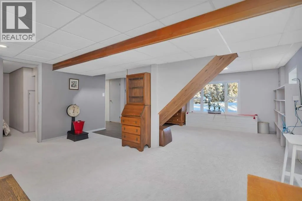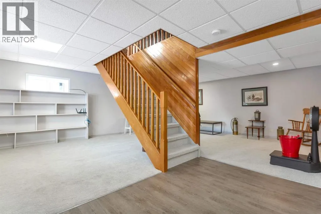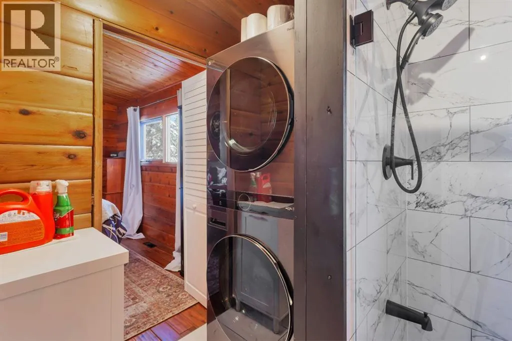 If youâre looking to call the West Country home, you wonât want to miss this private and beautifully treed 5.5 acre property located just 10 km west of Rocky. The main level features cedar log construction with vaulted ceilings, the kitchen flows into the dining area and the cozy living room offers beautiful views to the back yard. Three bedrooms, a fully renovated bathroom complete with a spacious custom tile shower and newly added main floor laundry. The walkout basement offers a versatile family living space, flex room for guests, crafts, home office or hobbies, optional downstairs laundry, a 3-piece bathroom, and ample storage/workshop space. A large, partially covered wrap-around deck is the perfect place to enjoy your morning coffee, watch the wildlife and relax while soaking in the peaceful surroundings. Recent upgrades ensure effortless living, including new shingles, furnace, central air, exterior and interior doors, basement windows, and a new septic tank and lines. The 24' x 26' double detached garage is fully finished and heated, and there is also an RV site further down the driveway. The beautifully landscaped yard features mature trees and trails. Fibre high-speed internet has been installed, making it easy to work from home while enjoying the peaceful country setting. (id:27476)