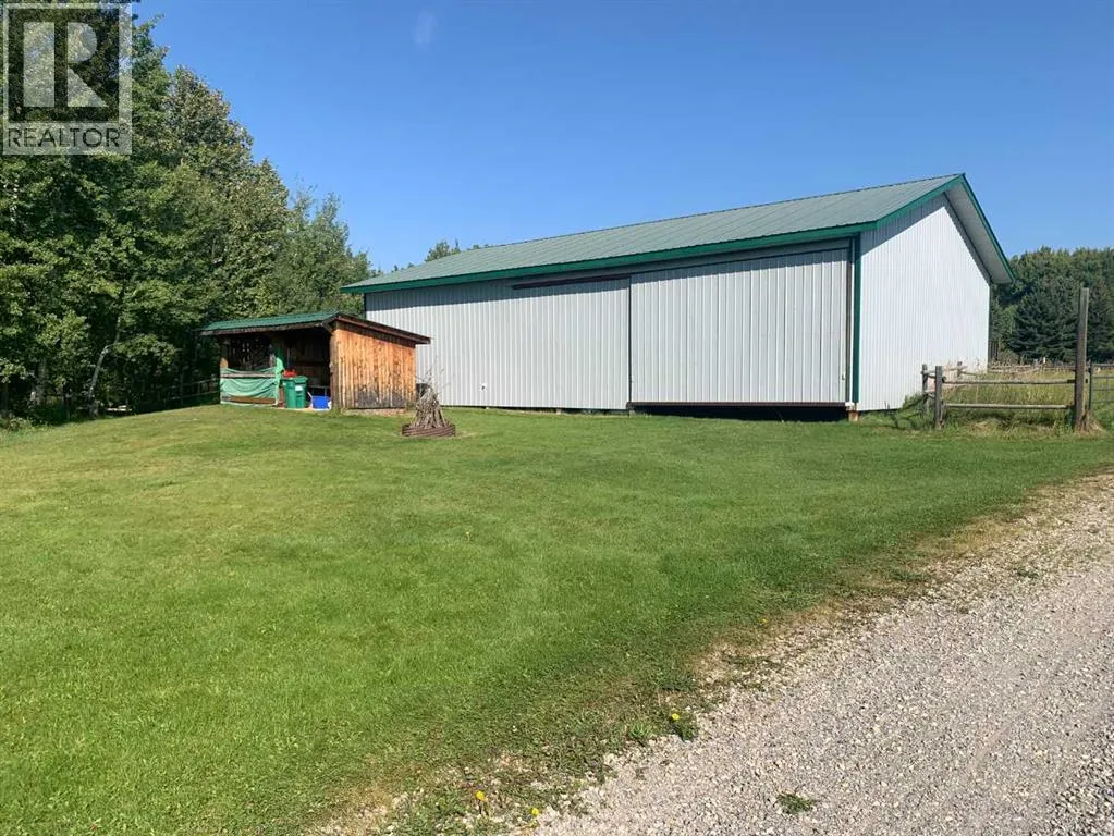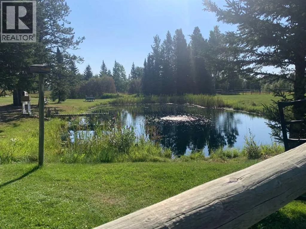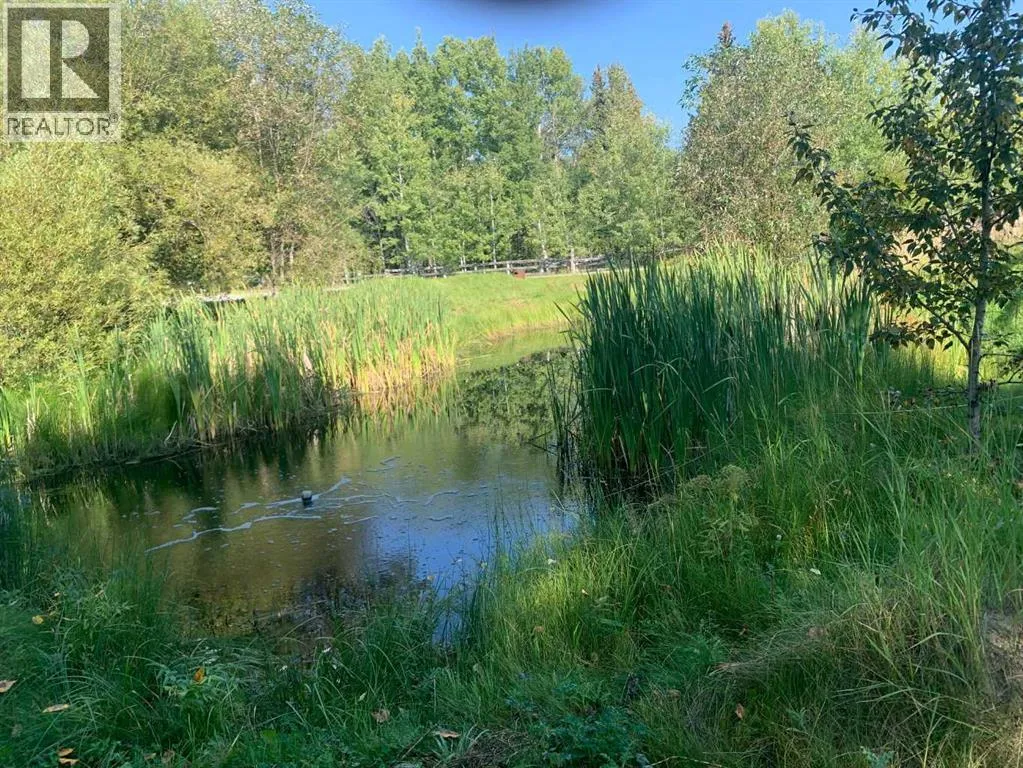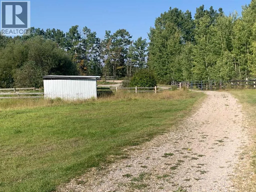 7.12 Acres | West of Rocky Mountain HousePrivate, treed and beautifully landscaped, this 7.12-acre acreage is set up for horses, family living, and true country lifestyle. The well-maintained home offers 5 bedrooms and 3 bathrooms, with a warm, inviting living room featuring a cozy Gas stove, and a spacious family room, that may be ready to enjoy your updates, is complete with a second gas stove, wet bar, and abundant storage.The kitchen is functional and bright with oak cabinetry, generous counter space, a plant window, and a convenient pass-through to the living room. The dining area opens to a screened porch with hot tubâperfect for relaxing in every season and home to the Hot Tub, that is included.Outside and youâll feel itâthis place is special. Mature trees, stunning landscaping, greenhouses, firepit area, fenced play space, and multiple camping spots create a private, park-like setting. Two aerated ponds, including a stocked fish pond, add to the peaceful atmosphere.Set up for horses with fenced areas, and room to expand, this property is ready for your four-legged crew.Outbuildings include a heated oversized double attached garage (overhead heater with in-floor heat rough-in), a 40â x 60â heated arch rib shop with boiler and in-floor heat, and a 40â x 60â pole shed ideal for storage or even potential as an indoor arena, plus a horse shelter.A versatile, turn-key acreage offering privacy, beauty, and functionalityâjust minutes west of Rocky Mountain House. (id:27476)