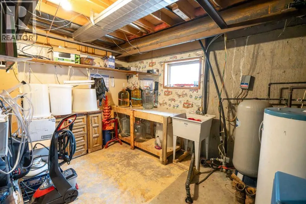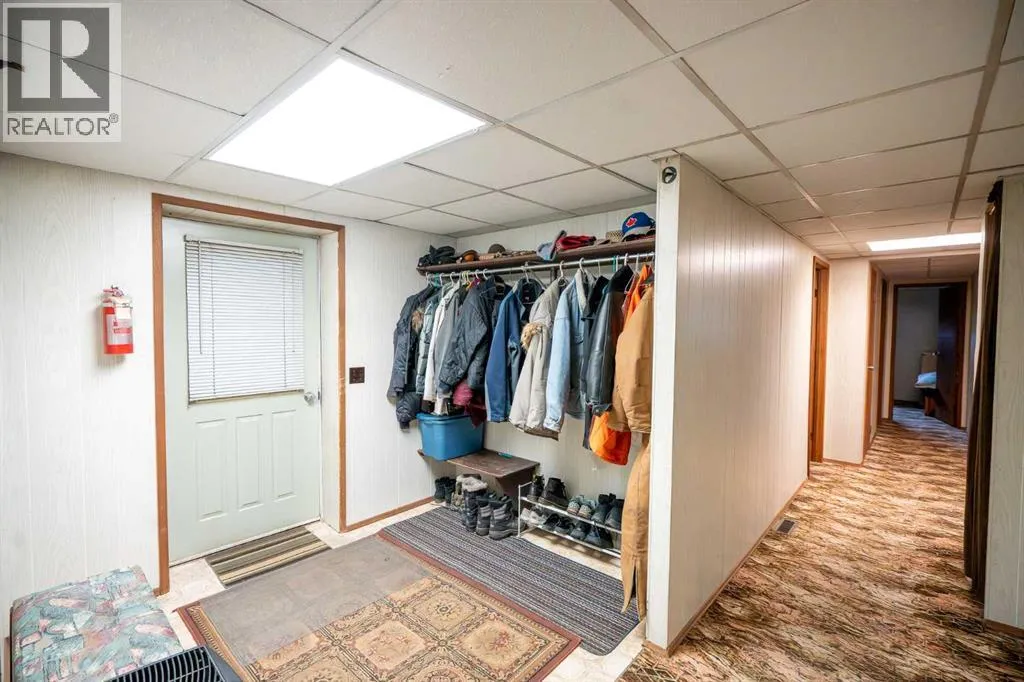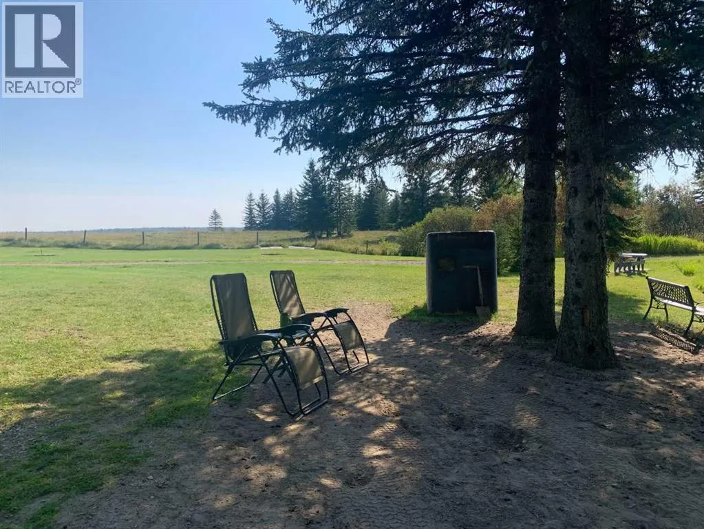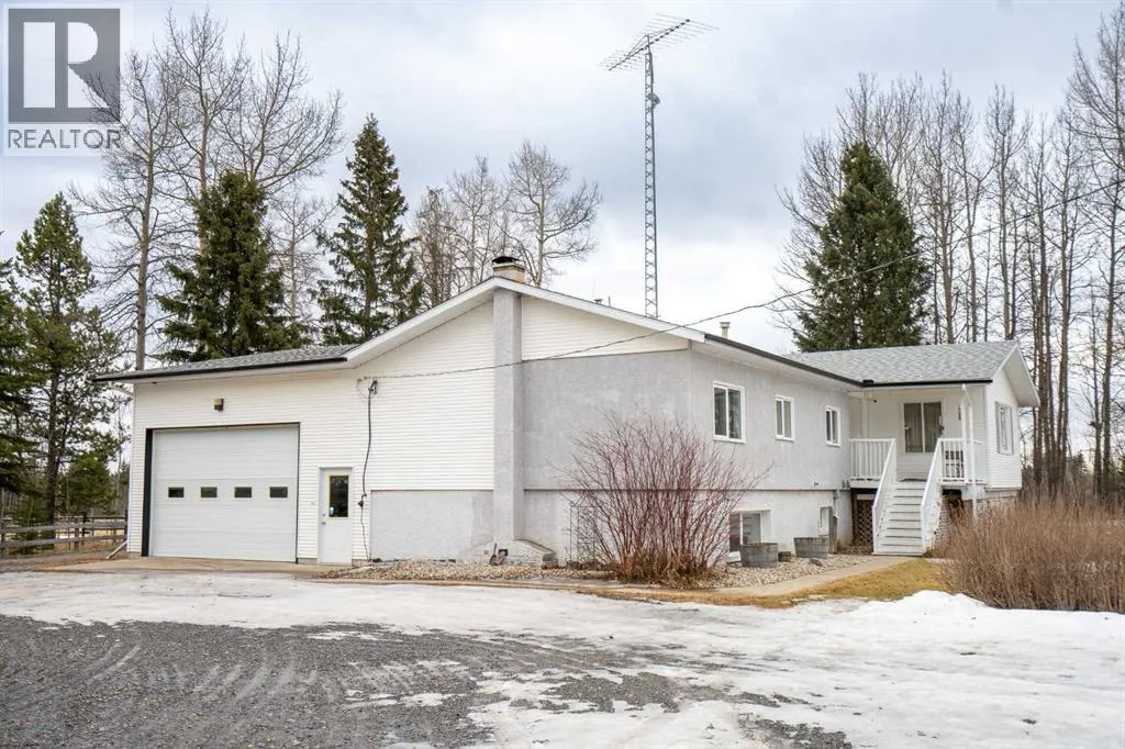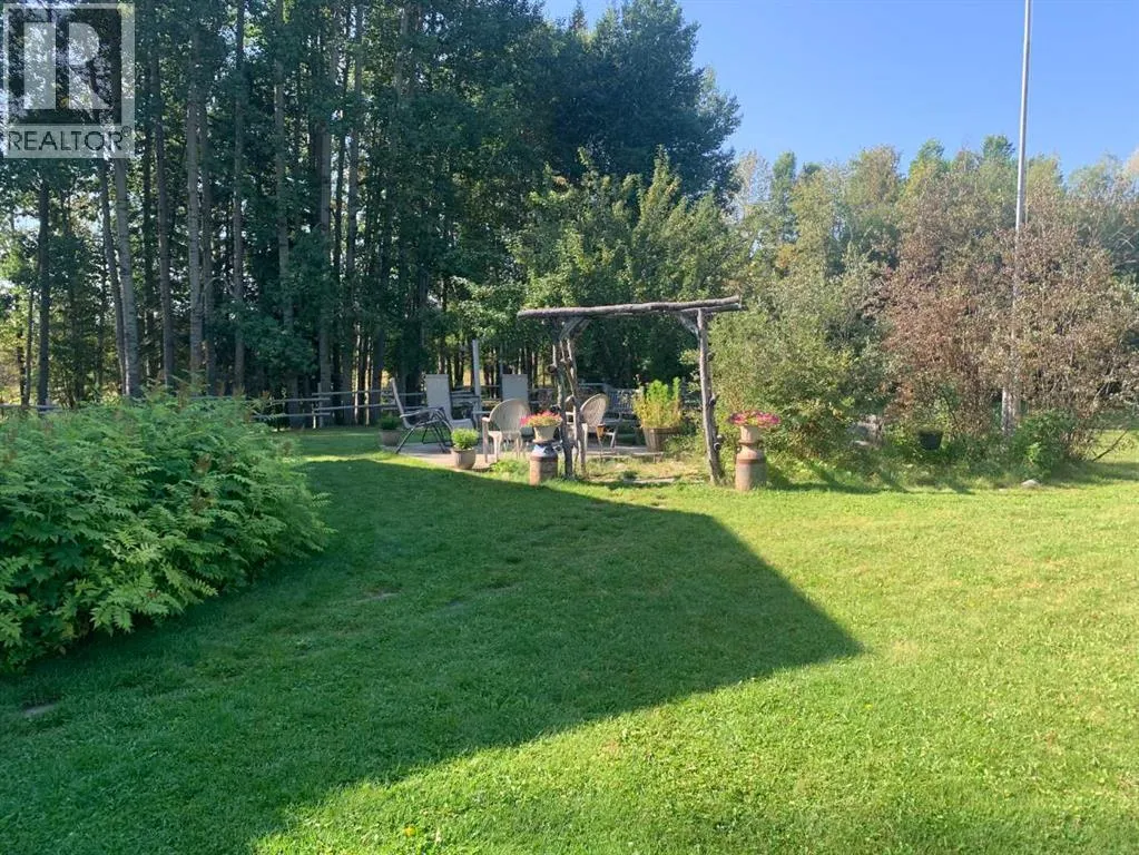 7.12 Acres | West of Rocky Mountain HousePrivate, treed and beautifully landscaped, this 7.12-acre acreage is set up for horses, family living, and true country lifestyle. The well-maintained home offers 5 bedrooms and 3 bathrooms, with a warm, inviting living room featuring a cozy Gas stove, and a spacious family room, that may be ready to enjoy your updates, is complete with a second gas stove, wet bar, and abundant storage.The kitchen is functional and bright with oak cabinetry, generous counter space, a plant window, and a convenient pass-through to the living room. The dining area opens to a screened porch with hot tubâperfect for relaxing in every season and home to the Hot Tub, that is included.Outside and youâll feel itâthis place is special. Mature trees, stunning landscaping, greenhouses, firepit area, fenced play space, and multiple camping spots create a private, park-like setting. Two aerated ponds, including a stocked fish pond, add to the peaceful atmosphere.Set up for horses with fenced areas, and room to expand, this property is ready for your four-legged crew.Outbuildings include a heated oversized double attached garage (overhead heater with in-floor heat rough-in), a 40â x 60â heated arch rib shop with boiler and in-floor heat, and a 40â x 60â pole shed ideal for storage or even potential as an indoor arena, plus a horse shelter.A versatile, turn-key acreage offering privacy, beauty, and functionalityâjust minutes west of Rocky Mountain House. (id:27476)