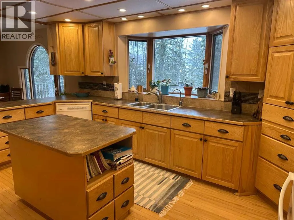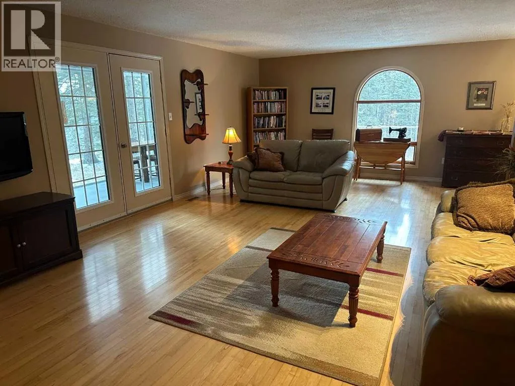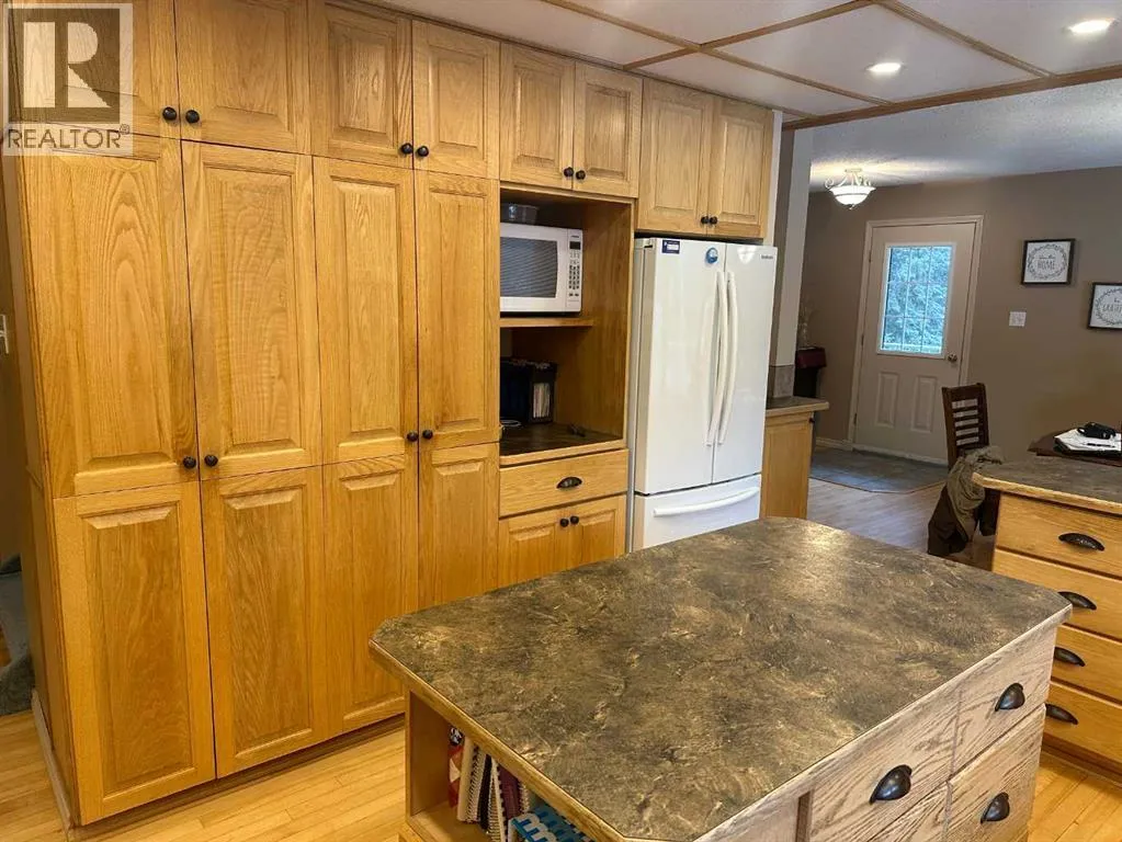 The perfect combinationâ¦.. is the best description of this acreage that is nestled amongst the trees, on pavement and bordering Prairie Creek. You are immediately greeted with an open foyer and 3-piece bath/laundry facility for your convenience. This family friendly home boasts an exceptional kitchen with plenty of countertop preparation space and kitchen cabinetry. The dining room shares an area in which you can entertain large family gatherings along with the spacious main floor living room with a corner pellet stove. Off the living room you can enjoy a 3 season room that houses a gas stove for heat and large windows to take in the creek views. The upper level primary bedroom has an exceptionally large living space with a full ensuite and also a deck that you can enjoy your mornings taking in the breath-taking views of the creek. 2 additional bedrooms with their own access to decks are also available on this level. Downstairs you will discover a large family room, bathroom and bedroom along with a storage room and a secondary room that can easily be transformed to an additional bedroom. Outside offers a heated, drywalled shop with lean to. It is separately metered and facilitates a welder. A large concrete pad is also available for your RV. Garden beds, green house and so much more that can only be appreciated once you are on the property. On pavement and close to Rocky Mountain House! (id:27476)