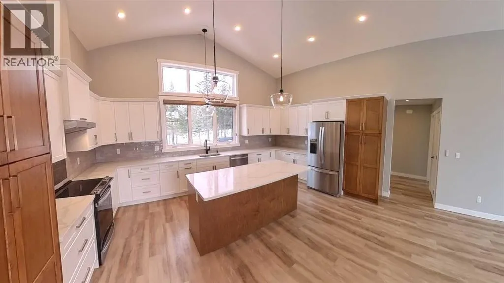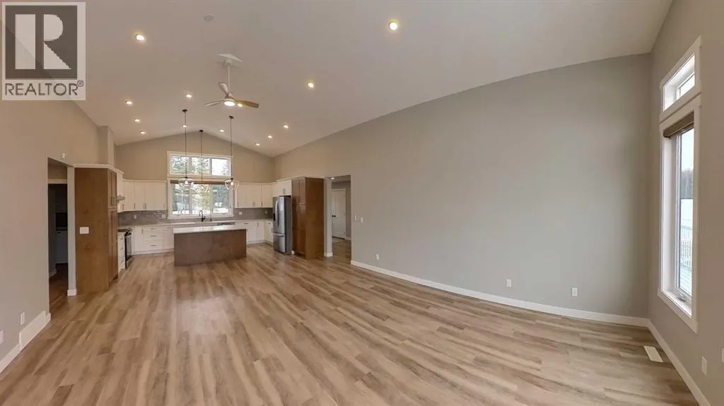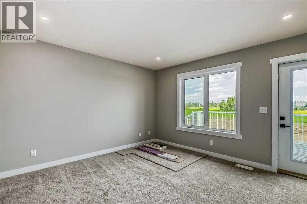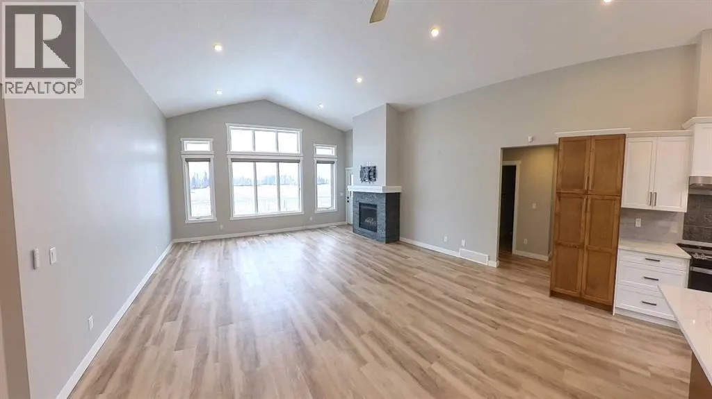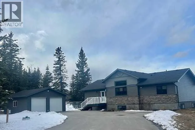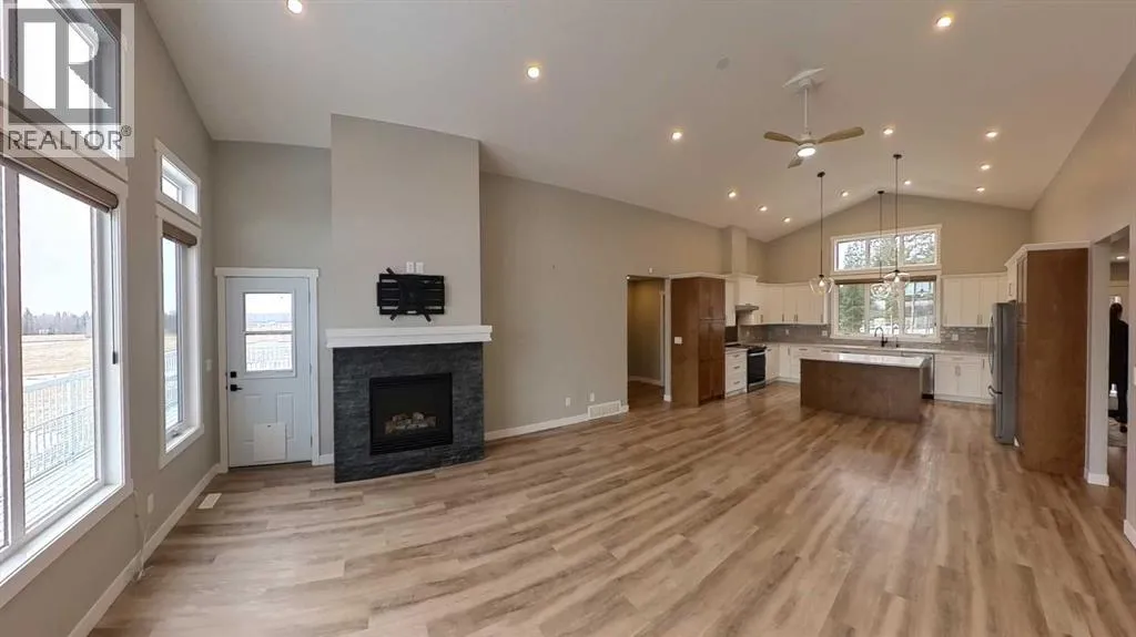 Welcome to the perfect blend of country serenity and urban convenience in the quaint community of Diamond Willow Estates. Located just minutes from Rocky Mountain House, this beautiful three-bedroom, two-bathroom home offers a lifestyle of comfort and style. The heart of the home features an expansive open floor plan where every corner of the great room captures your attention, from the statement gas fireplace to the oversized kitchen island. Large windows throughout the modern kitchen and living area flood the space with natural light, creating a warm and inviting atmosphere for daily living. Entertaining is effortless with seamless access from the living room to a large deck and a fully fenced yard, providing an ideal setting for family gatherings. The main floor is thoughtfully designed with two spacious secondary bedrooms, a convenient laundry room, and a five-piece bathroom featuring a large vanity. Tucked away as a private sanctuary, the master suite is a true dream, boasting a walk-in closet and an ensuite with a double vanity and a sleek glass-door shower. You can even enjoy your morning coffee on the deck directly from your bedroom while taking in the peaceful views of the meadow located right behind the property. Additional highlights include a two-car garage, a dedicated dog run, and a storage shed to keep your outdoor tools organized. Gardening enthusiasts will fall in love with the showstopping greenhouse that sits on the property. With a partially finished basement that is already plumbed for an additional bathroom, there is plenty of room to grow and customize this home to your needs. This property is a rare find that combines modern interior finishes with the tranquility of a meadow-side retreat. (id:27476)